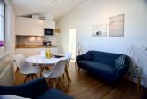 Bereits beim Eintreten empfängt Sie ein freundlicher, offen gestalteter Wohnbereich, der mit warmen Holzelementen und einer behaglichen Atmosphäre überzeugt. Eine gemütliche Sitzecke mit TV lädt zu entspannten Abenden ein, während die angrenzende Essecke Raum für gemeinsame Mahlzeiten bietet.