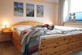 Das Schlafzimmer, mit Blick in den Garten, ist eingerichtet mit einem 1,80 x 2,00 m Doppelbett und einem großen Kleiderschrank. Der Raum kann mit einem Verdunklungsrollo abgedunkelt werden. Die Betten sind bei Ihrer Anreise bereits bezogen.