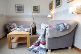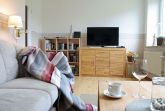 Im behaglichen Wohnzimmer können Sie in der Sitzecke ausruhen. Smart-TV, Telefon und WLAN vertreiben die Zeit. Eine Auswahl an Büchern sorgt bei Leseratten für Vergnügen.