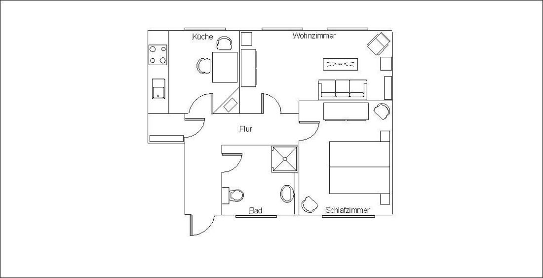 Liebevoll eingerichtete und privat gepflegte Zwei-Zimmer-Wohnung im Erdgeschoss für zwei Personen in ruhiger Lage.