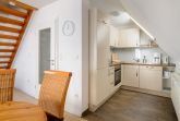 Ankommen, durchatmen, wohlfühlen: Das gemütlich eingerichtete Ferienapartment bietet den idealen Rückzugsort für bis zu 3 Personen. Neben dem Schlafzimmer mit Doppelbett im Obergeschoss steht ein Alkoven-Bett für die dritte Person im Wohnzimmer bereit. Die voll ausgestattete Einbauküche mit Geschirrspüler und der SAT-TV im Wohnzimmer sorgen für entspannte Urlaubstage. Ein überdachter Fahrradstellplatz sowie ein Parkplatz direkt am Haus runden das Angebot ab. Bettwäsche, Handtücher, Endreinigung und viele nützliche Kleinigkeiten für Küche und Bad sind bereits im Preis enthalten. Auf Wunsch können Sie Ihr Frühstück ganz bequem im benachbarten Nordsee-Hotel Hinrichsen genießen (nur durch den Hotelparkplatz getrennt). Nach nur ca. 300 Metern zu Fuß erreichen Sie den charmanten Husumer Innenstadtbereich mit Cafés, kleinen Boutiquen, dem malerischen Hafen und dem Husumer Schloss.
