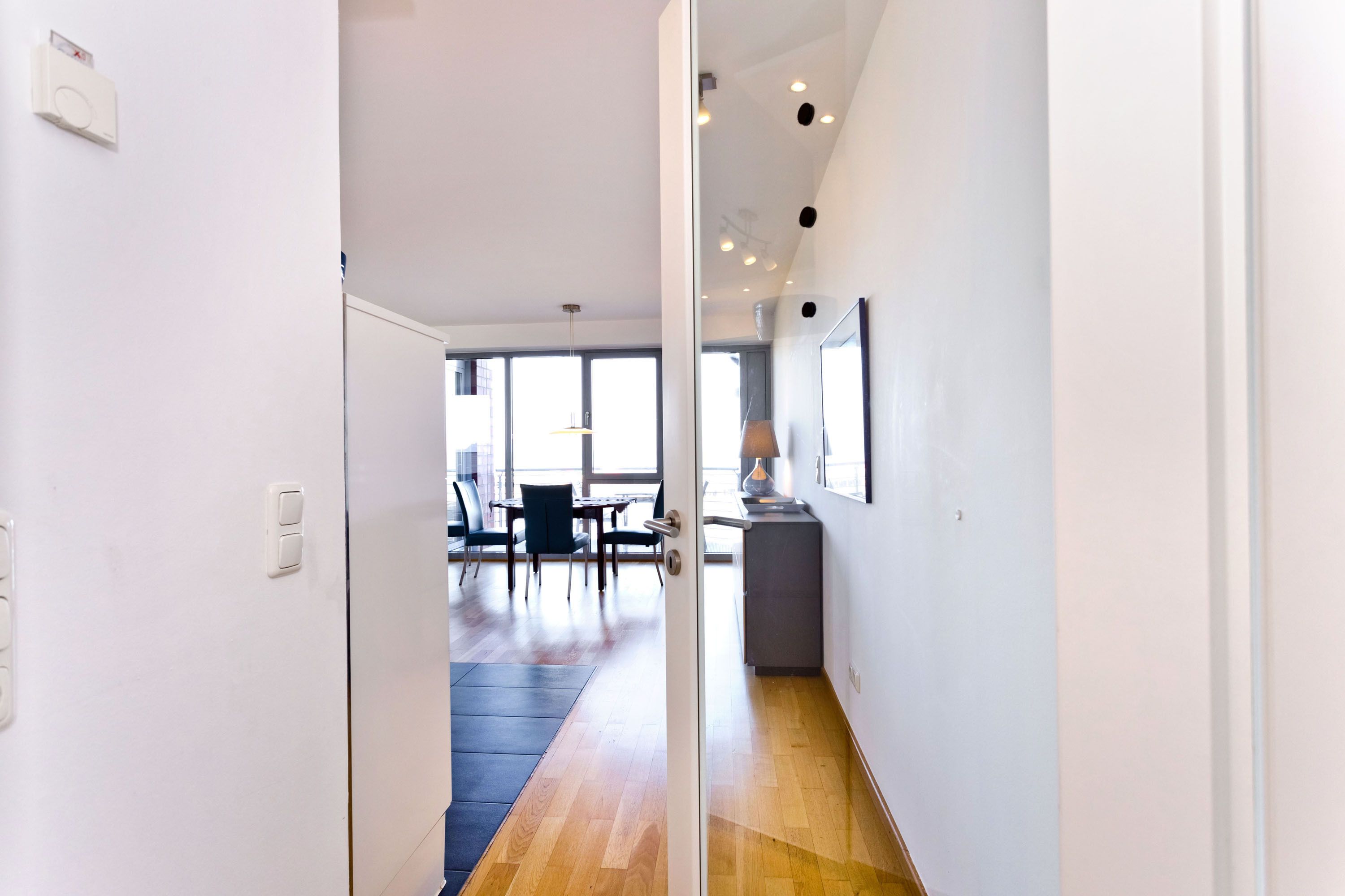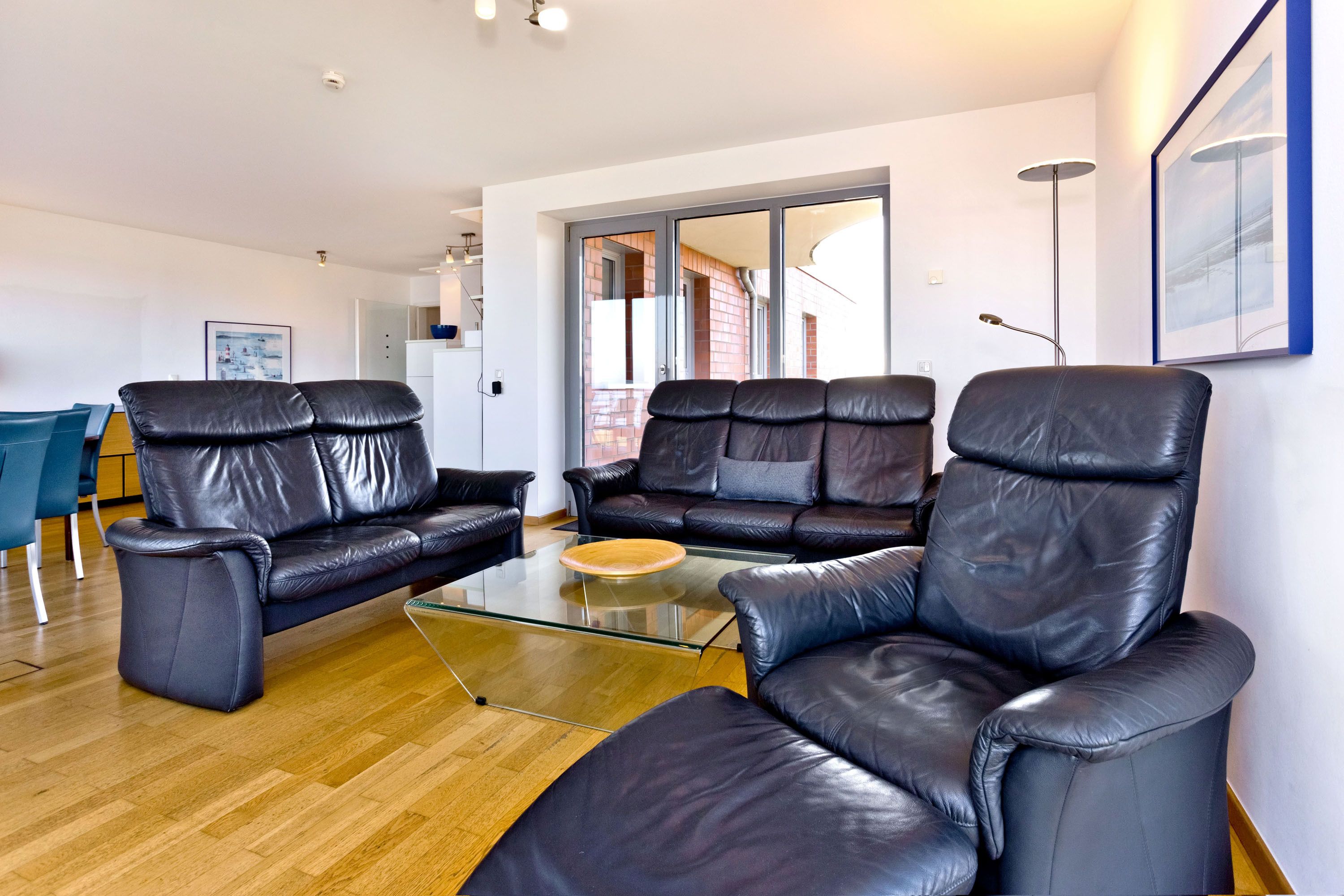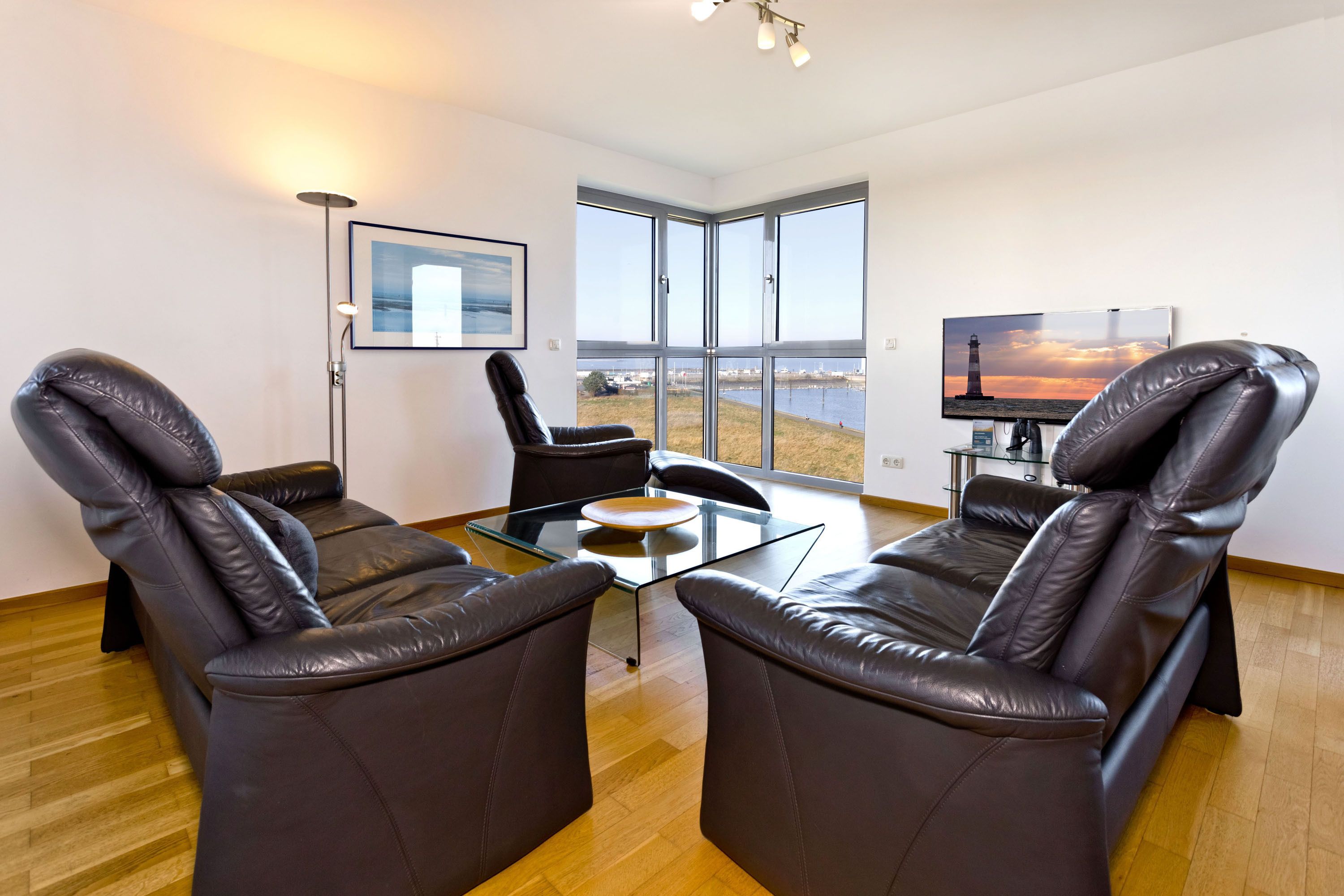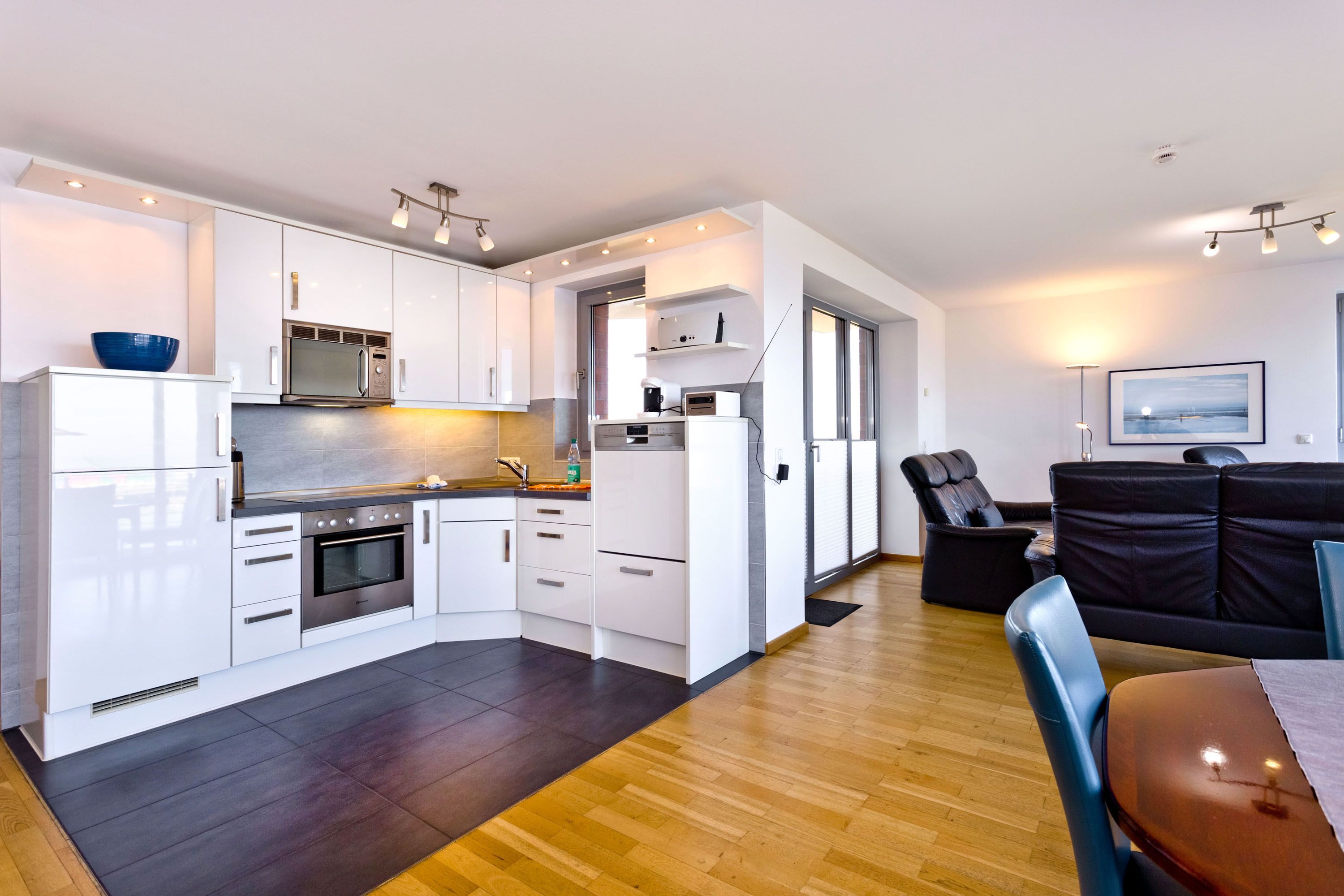 Traumwohnung! Aus allen drei Räumen dieser 105m² Wohnung in der 4.Etage haben Sie die Traumseesicht auf den Weltschifffahrtsweg. 1 Schlafzimmer mit Doppelbett, 1 Schlafzimmer mit Einzelbetten, Du/Wc, Föhn, Gäste-WC, begehbarer Kleiderschrank, großes Wohnzimmer mit komplett ausgestatteter Küchenzeile, 2 Balkone (nord+süd). Alle Räume sind hochwertig mit Parkett gestaltet und verfügen über Rollladen. Zur Wohnung gehört ein reservierter Stellplatz in der Tiefgarage (schmal, zur Wand). Nichtraucher, keine Haustiere erlaubt.