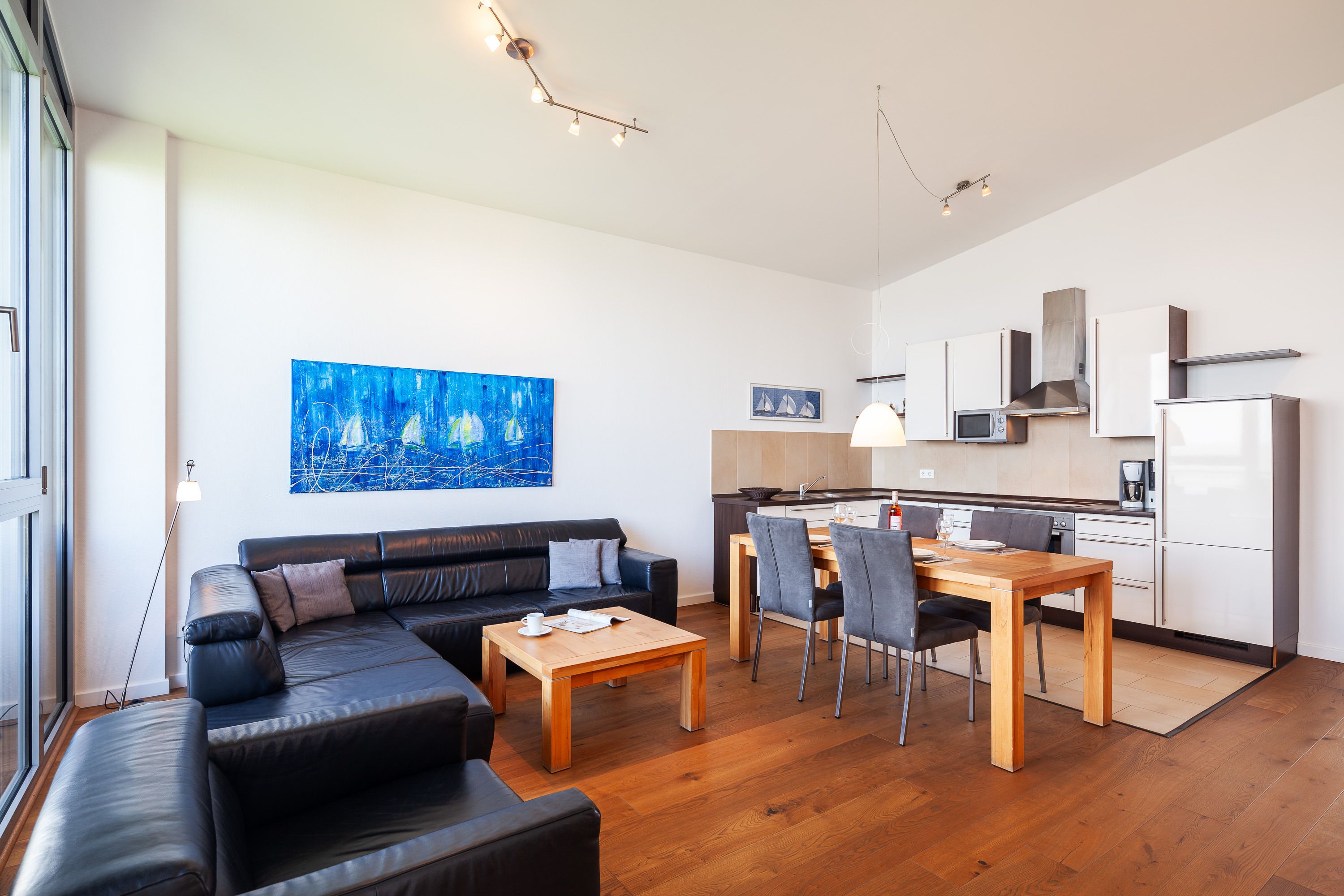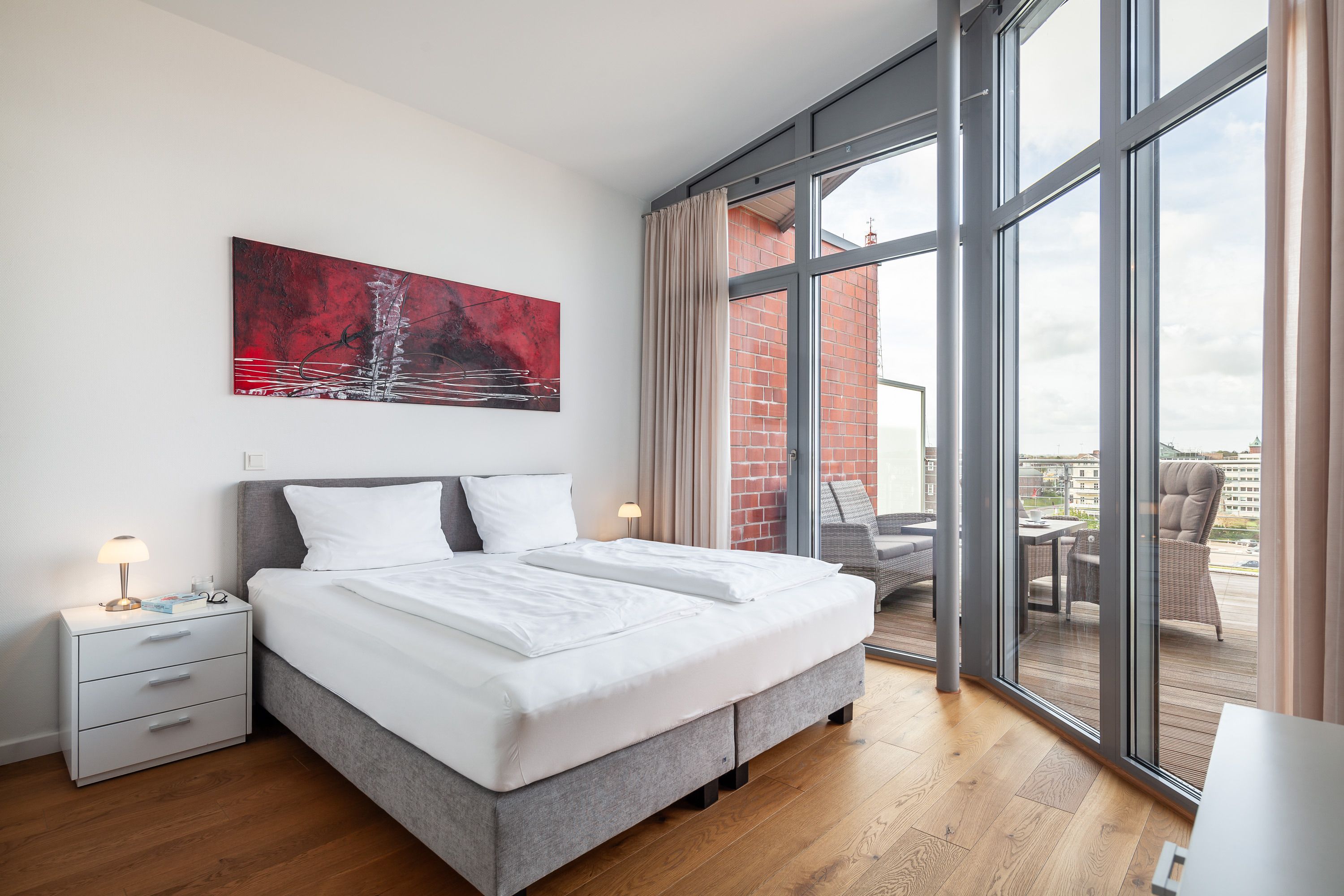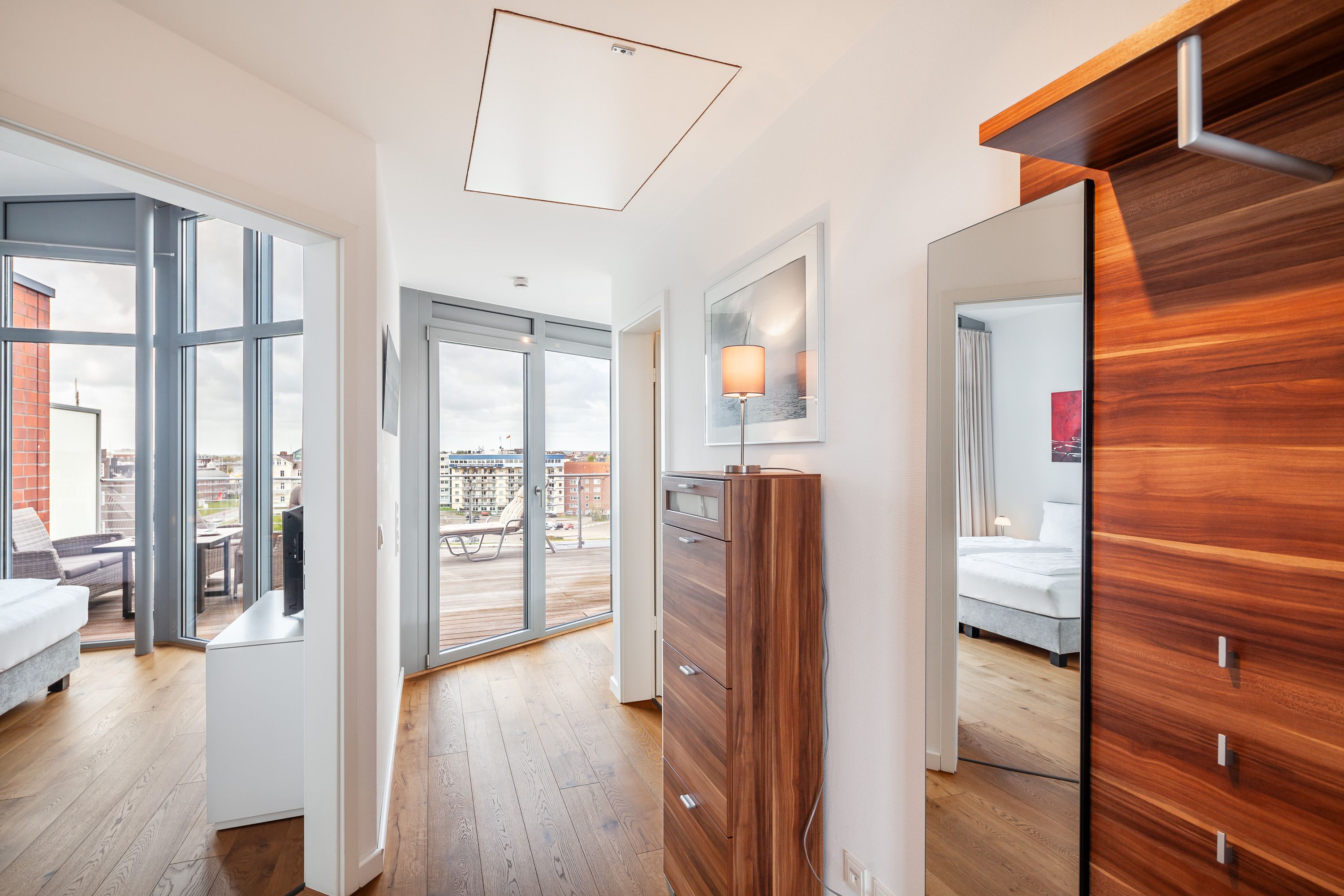 Die Penthousewohnung! 5.Etage mit dem absoluten Blick auf den Elbstrom. (Die Webcam befindet sich an dieser Whg) Wohnzimmer mit Esstisch und geschmackvoller Sitzecke, 2xKabel/TV/Bluray, Stereoanlage, Balkon zur Seeseite, riesige Terrasse zur Südseite mit Blick auf den Hafen, vollständig ausgestattete Küchenzeile, Schlafzimmer mit Doppelbett (Boxspringbett) und elektr. Rollläden, Bad/Du/Wc mit Fön, die gesamte Wohnung ist hochwertig mit Parkett bzw. Fliesen ausgestattet, Fußbodenheizung, je ein reservierter Pkw-Stellplatz außen u. i. der Tiefgarage, keine Haustiere und natürlich Nichtraucher und keine Haustiere.