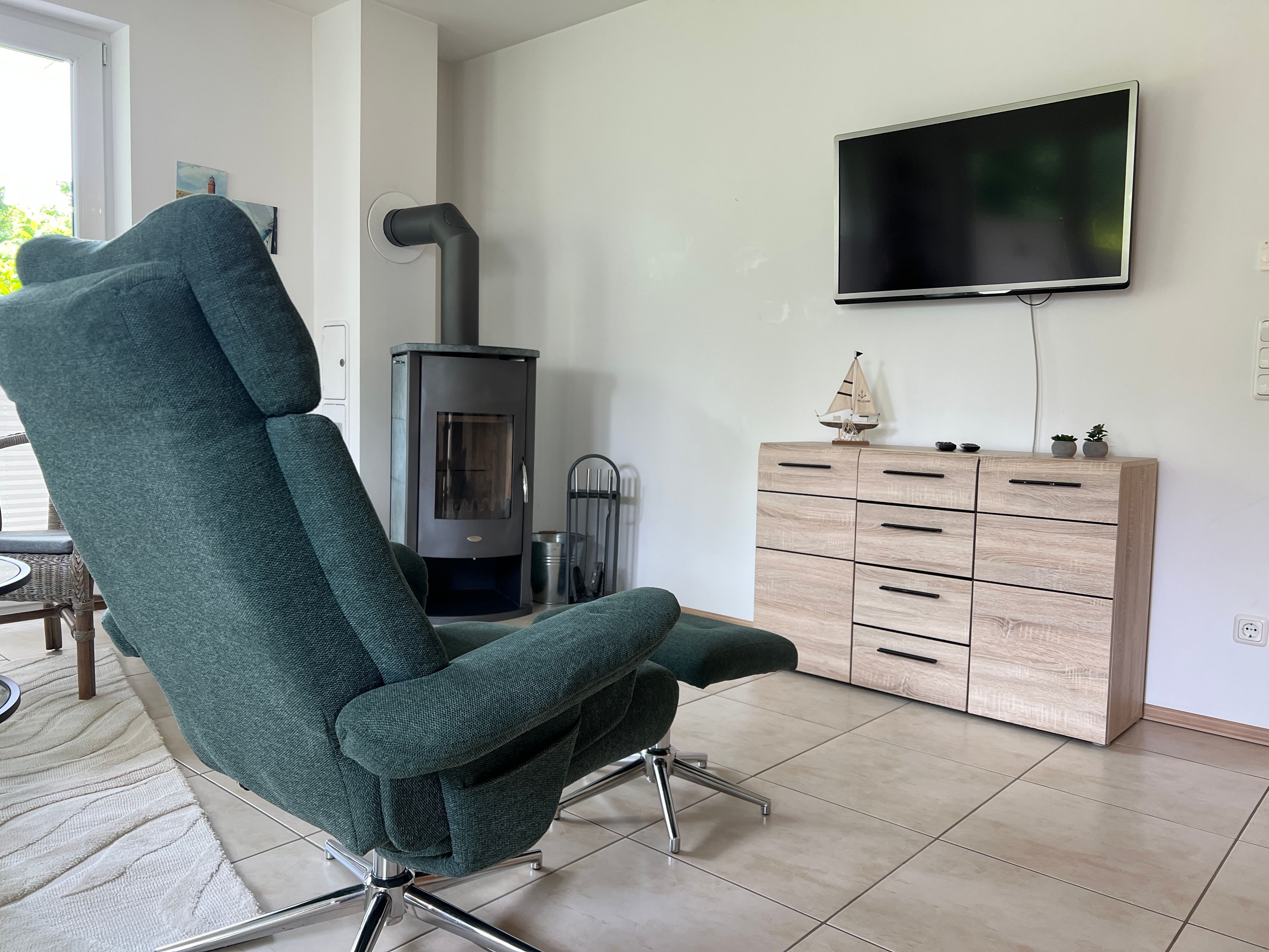 • gemütliches Wohnzimmer mit Schlafcouch, Stereoanlage, Flat-Screen, Sat-TV