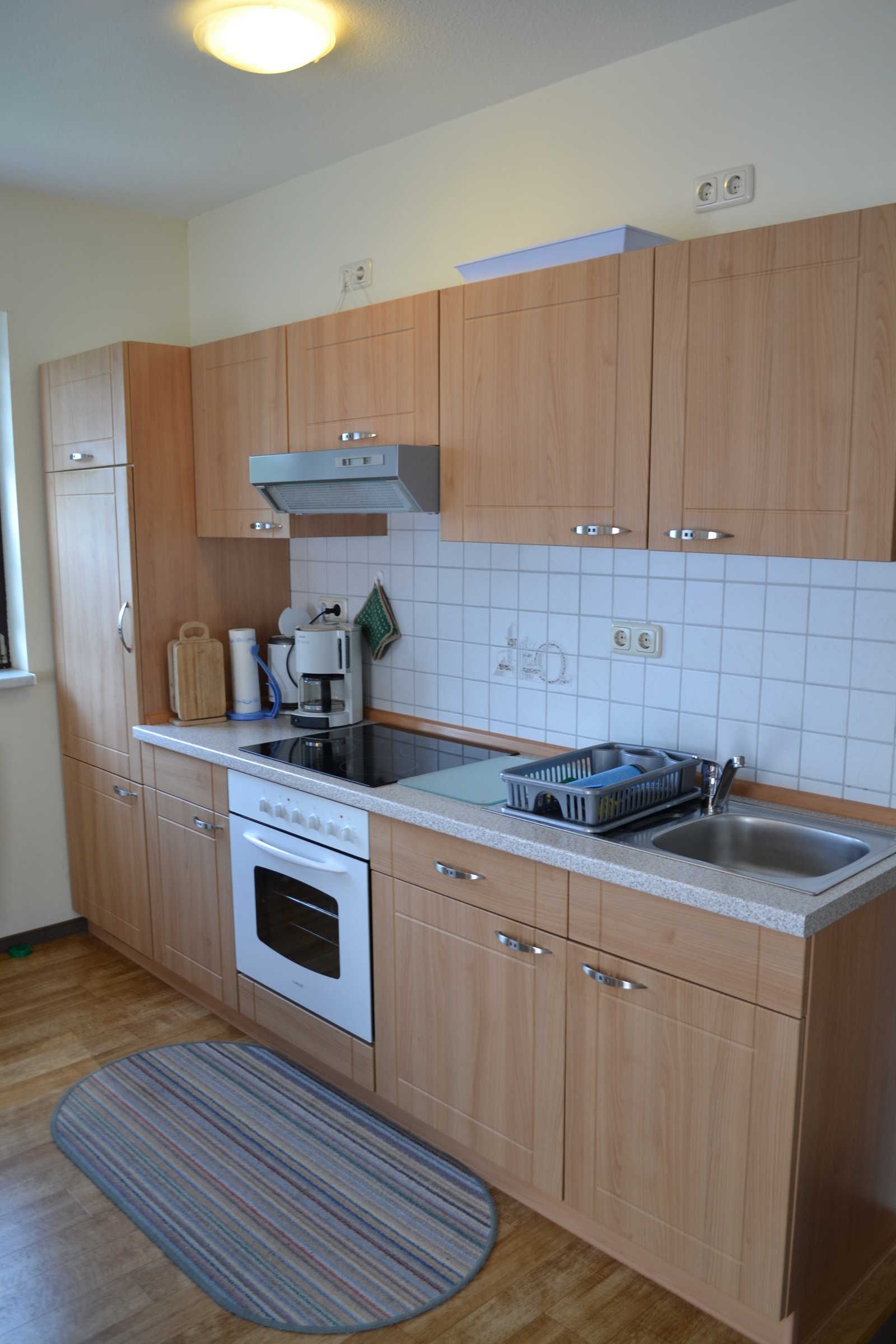 • Küchenbereich: 4-Plattenherd mit Backhofen, Kühlschrank & Kaffeemaschine