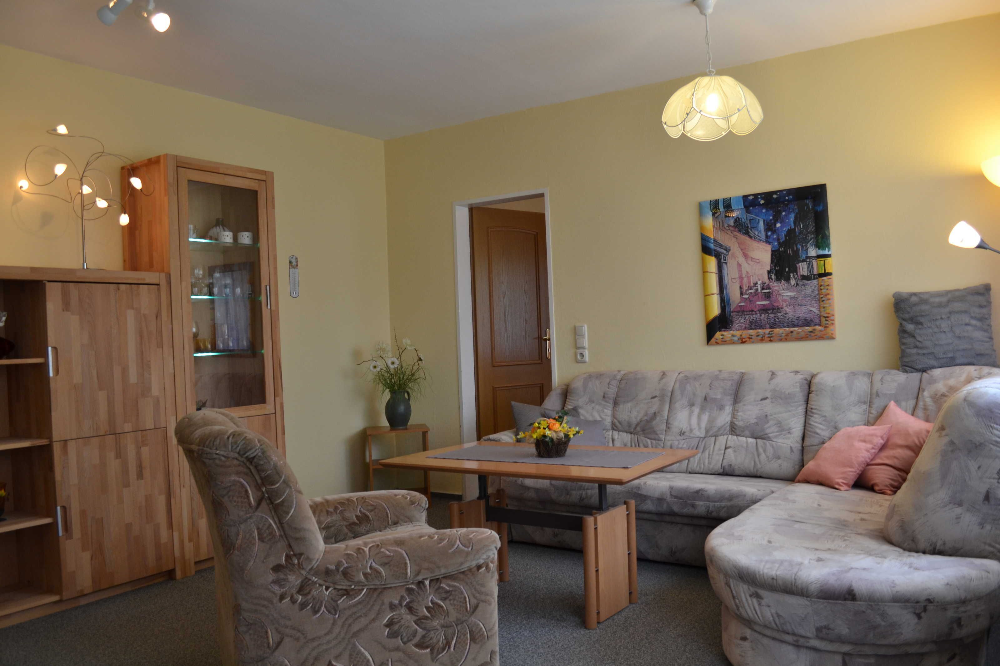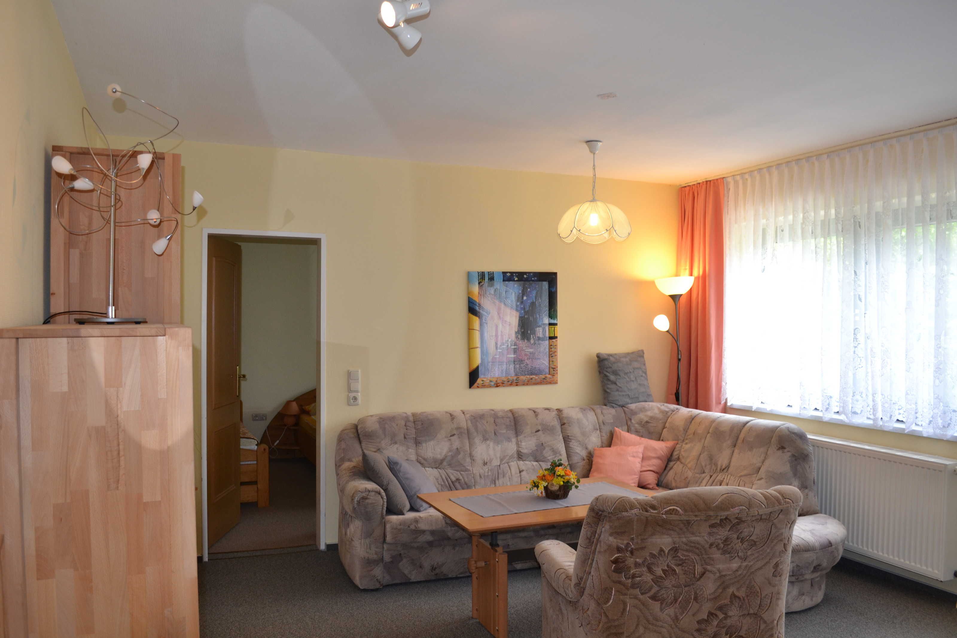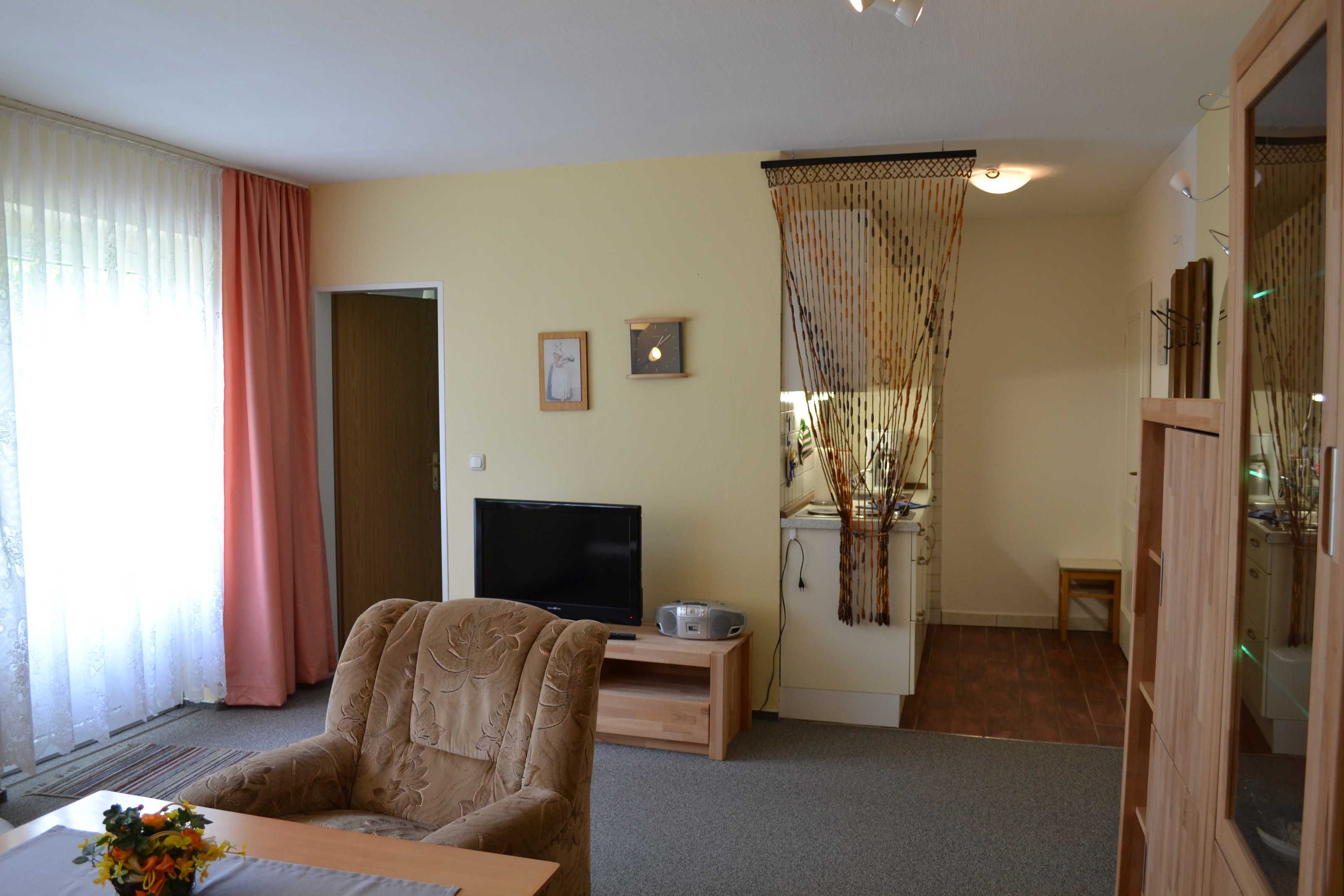 • Wohnbereich mit Sofa, 2 Sessel und TV