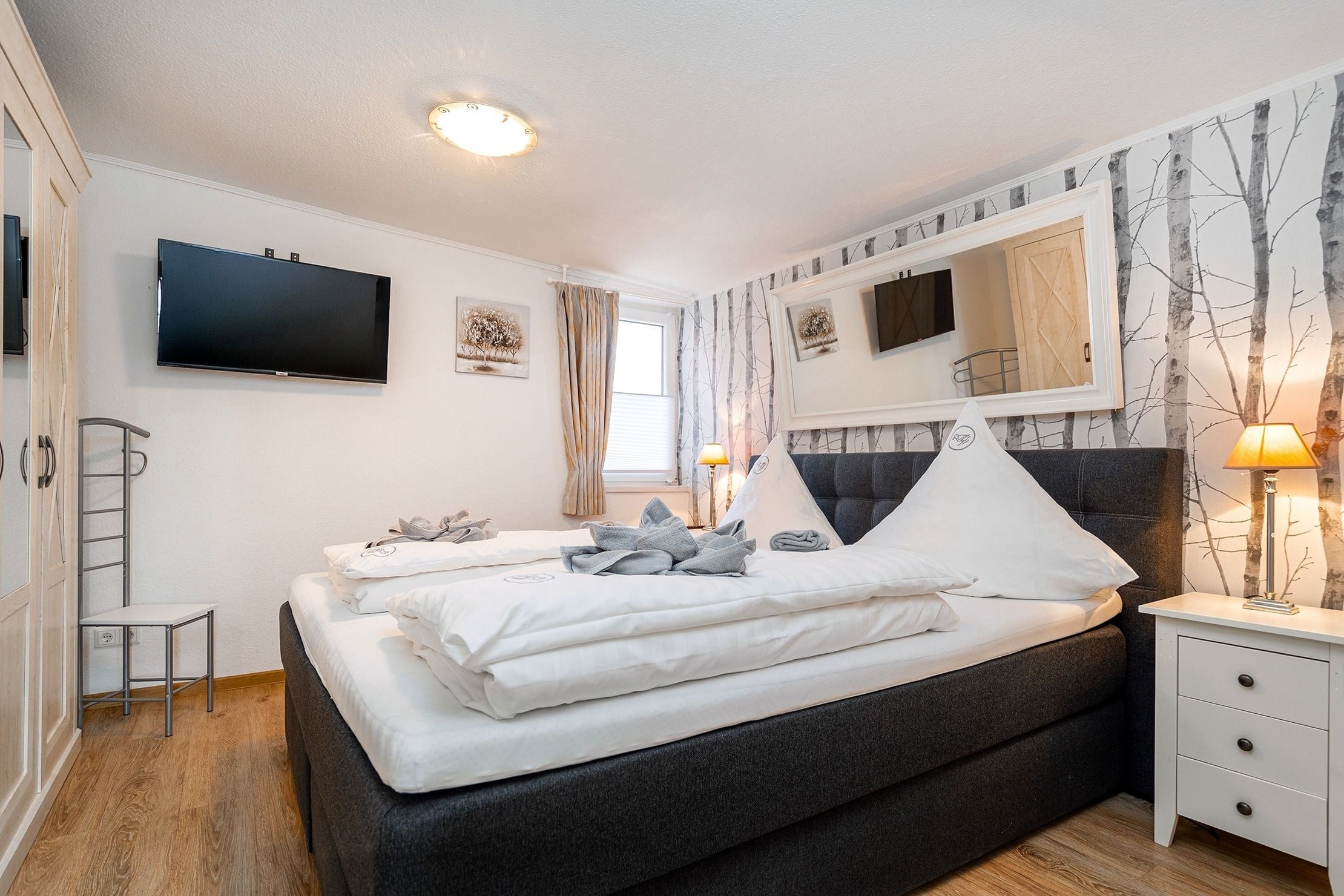 * Gerne bieten wir Ihnen unser Wäschepaket für Ihren Aufenthalt an, welches bezogene Betten, sowie Handtücher (Duschtuch, zwei Handtücher, Duschvorleger und ein Geschirrtuch) umfasst und € 19,50 p.P. kostet. Sie können dieses in der Buchungsstrecke unter dem Punkt Ihr Mietpreis hinzu buchen. *