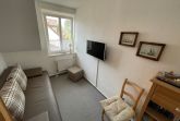 Der Wohnbereich ist mit Laminatboden ausgestattet und lädt mit Sofa, Esstisch, Garderobe sowie TV und Radio zum entspannten Verweilen ein. Insgesamt stehen 2 TV-Geräte mit digitalem Anschluss zur Verfügung. Für Unterhaltung und ruhige Stunden sind außerdem Bücher und Spiele vorhanden. Praktische Details wie Ganzkörperspiegel, Rauchmelder, Staubsauger sowie Erstausstattung runden den Aufenthalt ab.