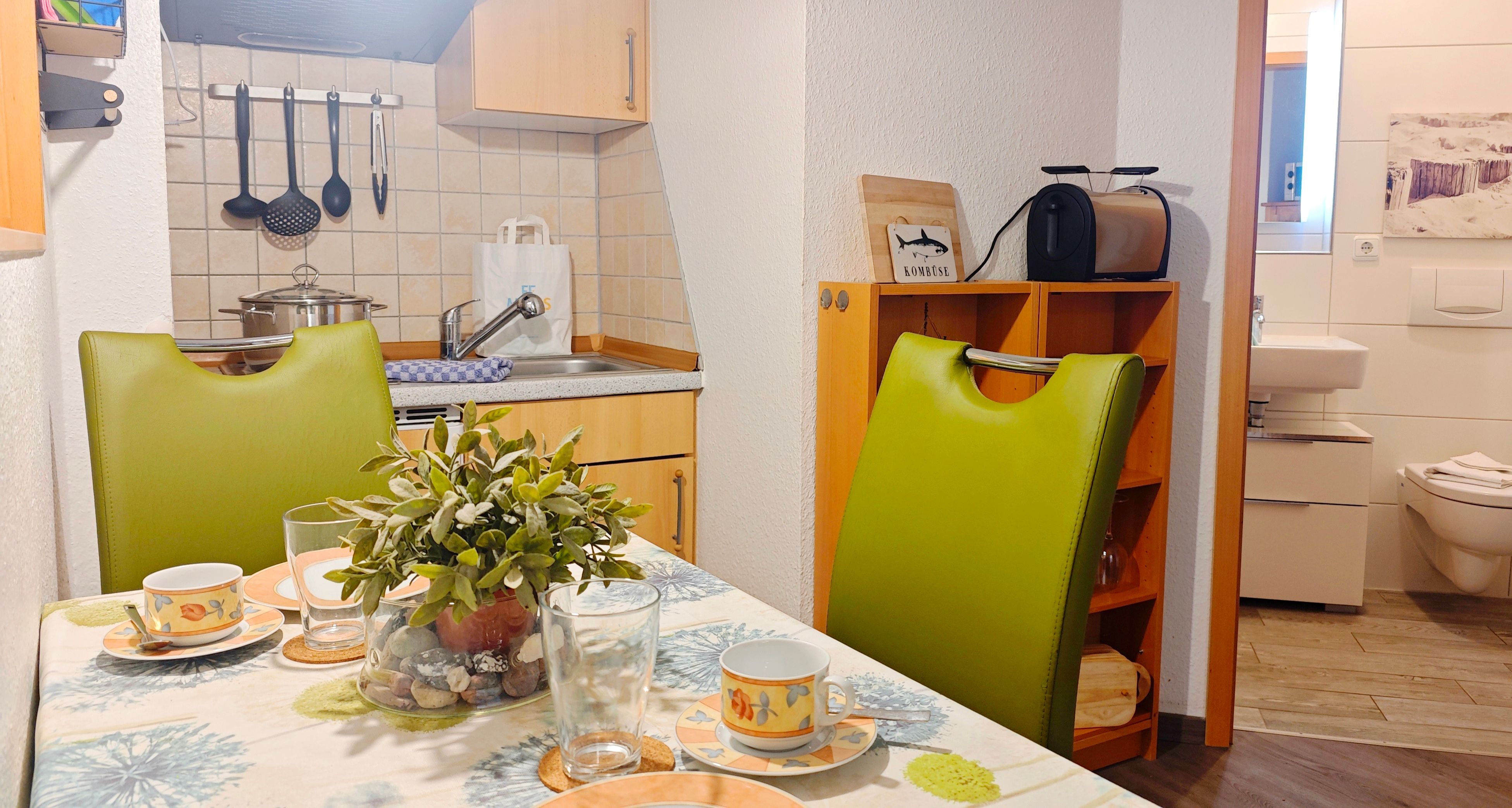 Die Wohnung empfängt Sie mit einer kleinen, aber sehr gut durchdachten Küchenzeile.