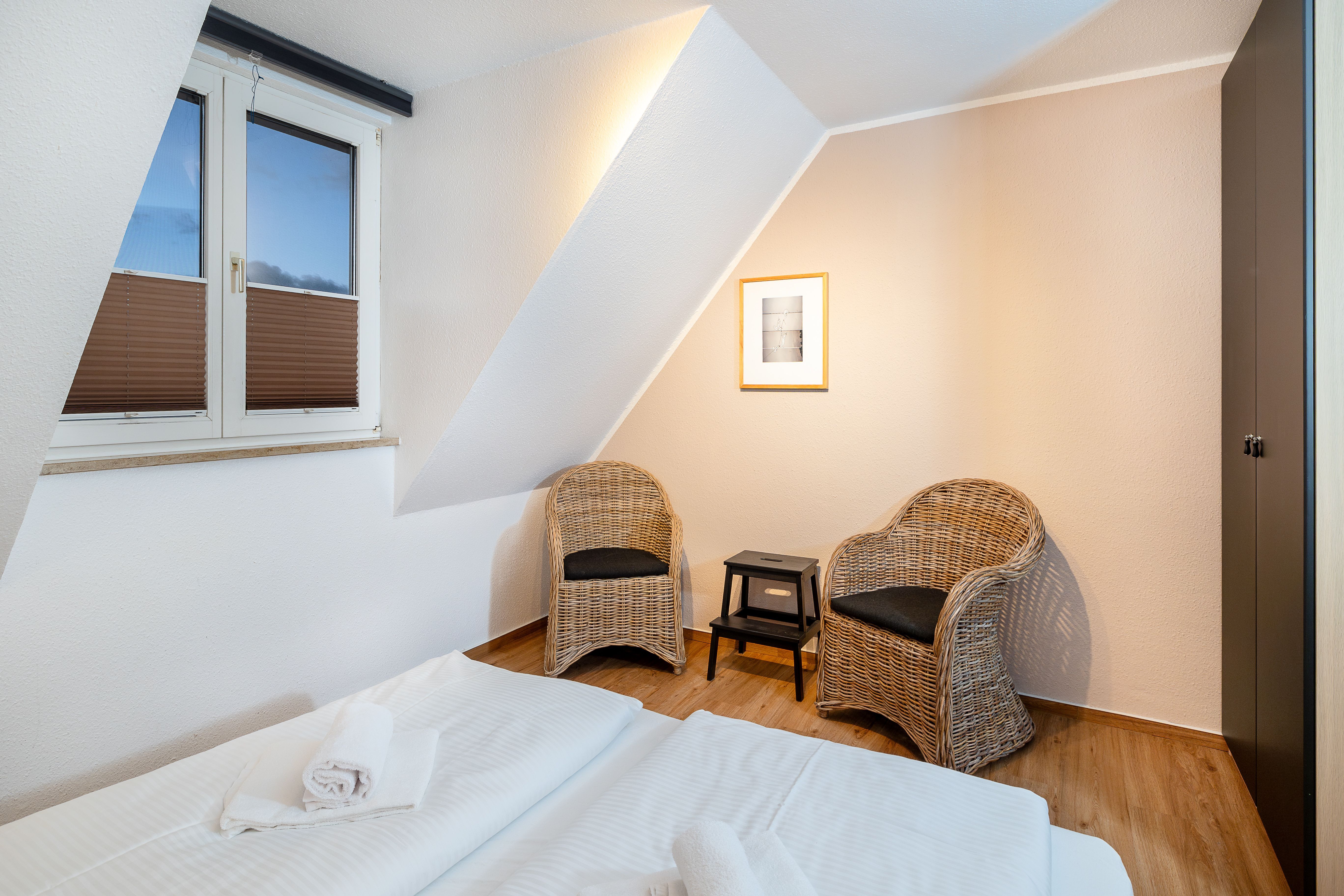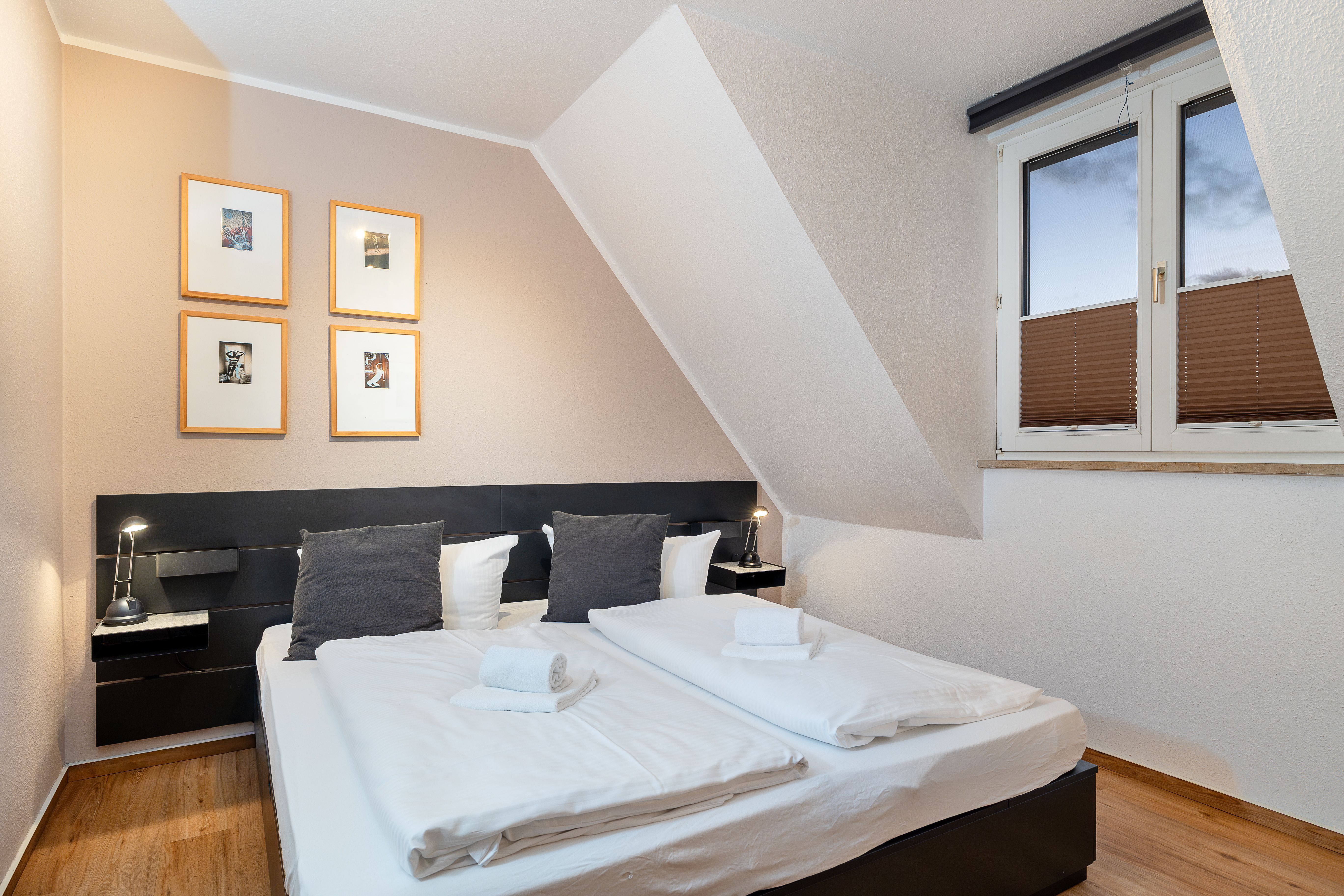 Zwei einladende Schlafzimmer eines mit Doppelbett, eines mit zwei Einzelbetten sorgen für erholsame Nächte und bieten ausreichend Platz für bis zu vier Personen.