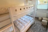 Das stylische Häuschen überzeugt durch ein durchdachtes Raumkonzept und bietet mit drei Schlafzimmern ausreichend Platz für bis zu fünf Personen. Ein Schlafzimmer ist mit einem komfortablen Doppelbett ausgestattet, ein weiteres verfügt über ein Etagenbett und eignet sich besonders gut für Kinder, während das dritte Schlafzimmer mit einem Einzelbett zusätzlichen Rückzugsraum bietet. Die Räume sind modern, freundlich und mit viel Liebe zum Detail eingerichtet. Wäschepakete (Bettwäsche und Handtücher) sind über Übernachtungspreis inkludiert.