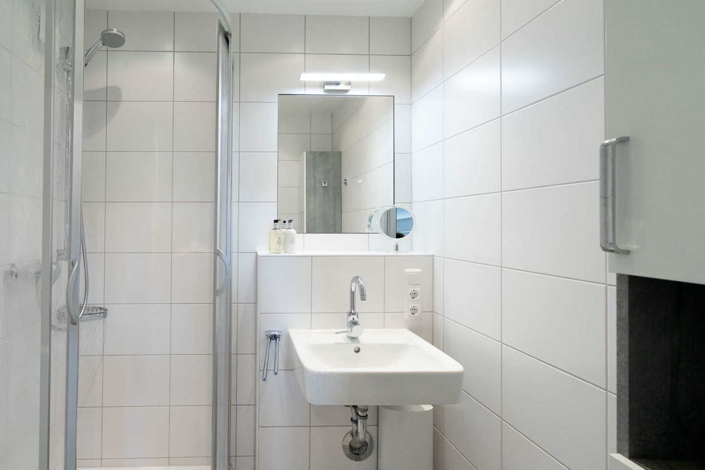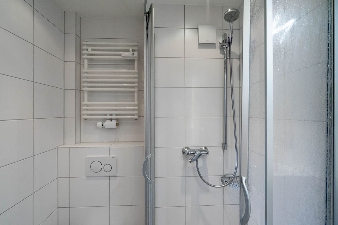 einem mittelgroßen Appartementhaus. Die Wohnung liegt im ersten Stock und ist vor Kurzem grundlegend und durchdacht renoviert worden, was sie nicht nur besonders gemütlich , sondern