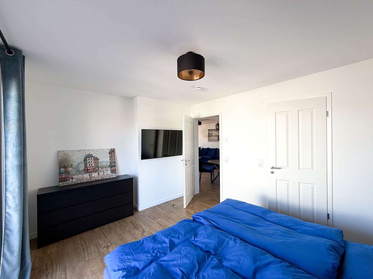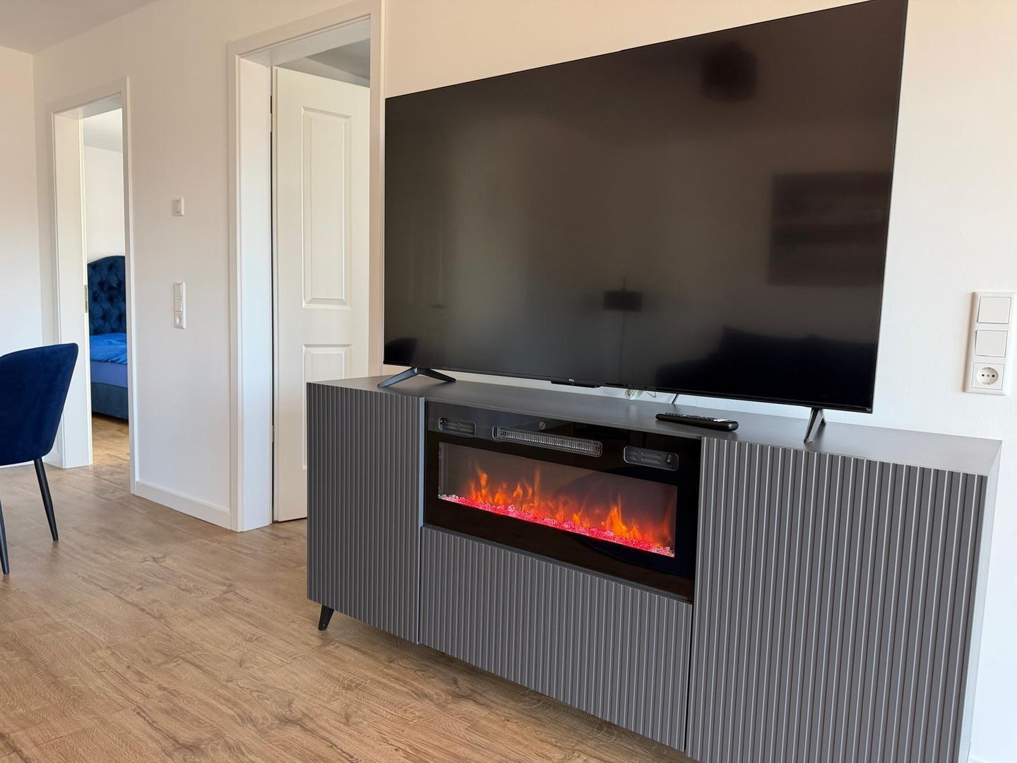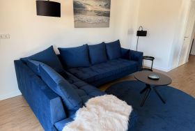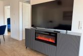 Das Herzstück der Wohnung ist der lichtdurchflutete Wohnbereich. Edle Möbel, eine gemütliche Sofalandschaft und ein elektrischer Kamin schaffen eine Atmosphäre von wohliger Wärme und Eleganz. Drei moderne TVs und kostenfreies WLAN sorgen für beste Unterhaltung, während hochwertige Sichtschutzelemente an allen Fenstern Ihre Privatsphäre garantieren.
