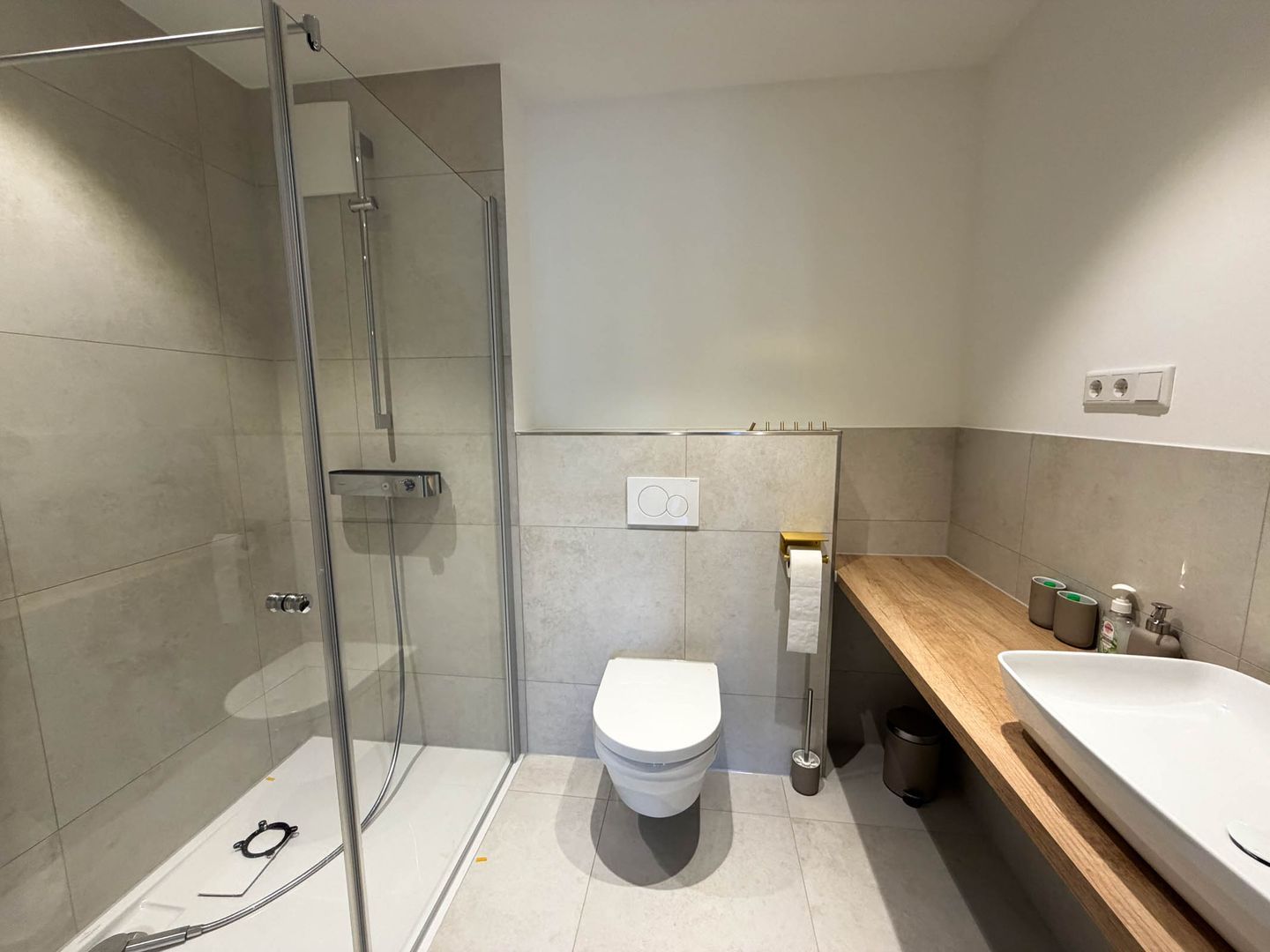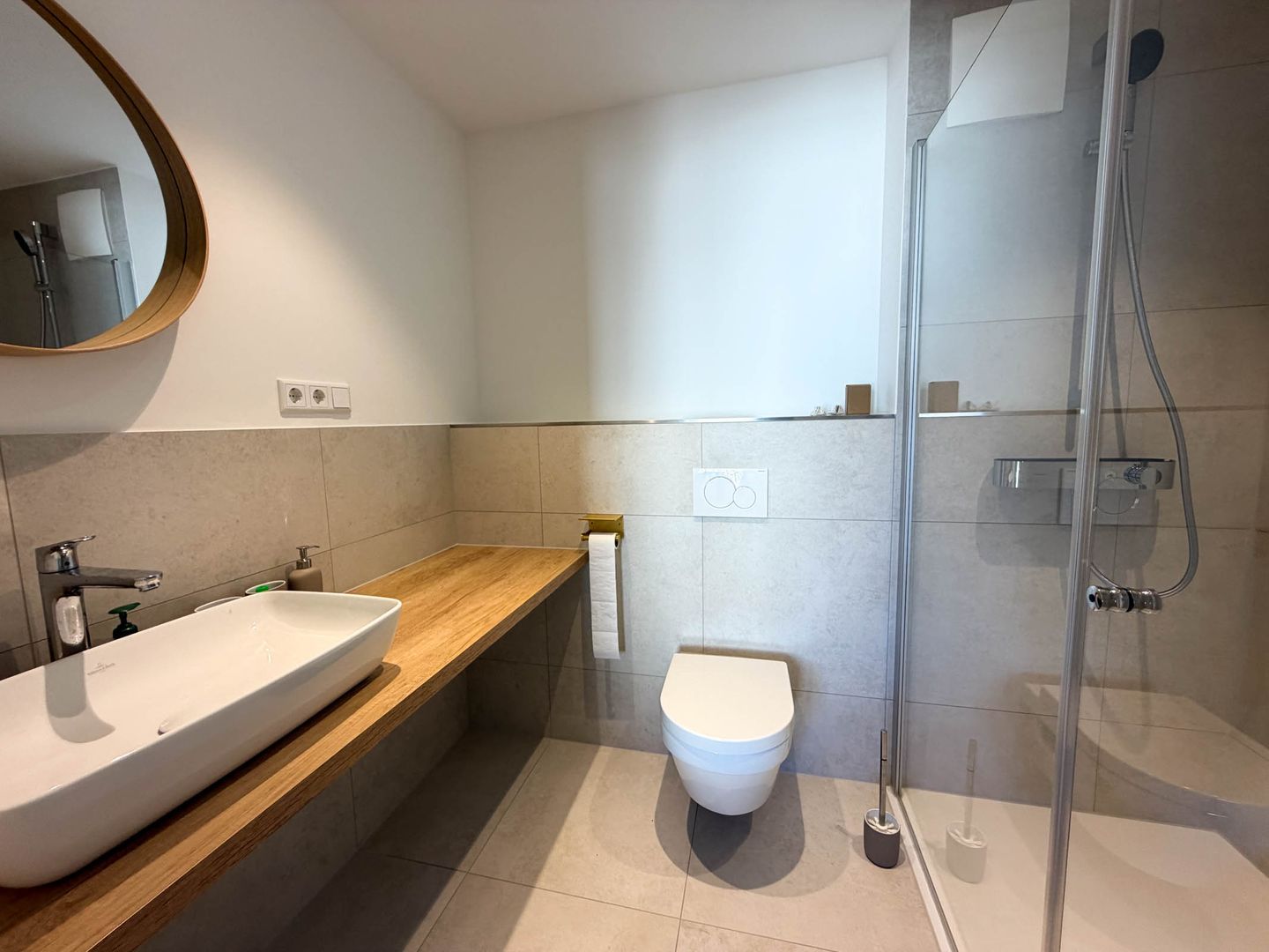 Zwei separat gelegene Schlafzimmer bieten Rückzug und Ruhe. Ein besonderes Highlight sind die zwei modernen Badezimmer, beide ausgestattet mit bodengleichen Duschen. Eines davon ist als exklusives Bad en Suite direkt an ein Schlafzimmer angeschlossen – für ein Maximum an Komfort und Privatsphäre.