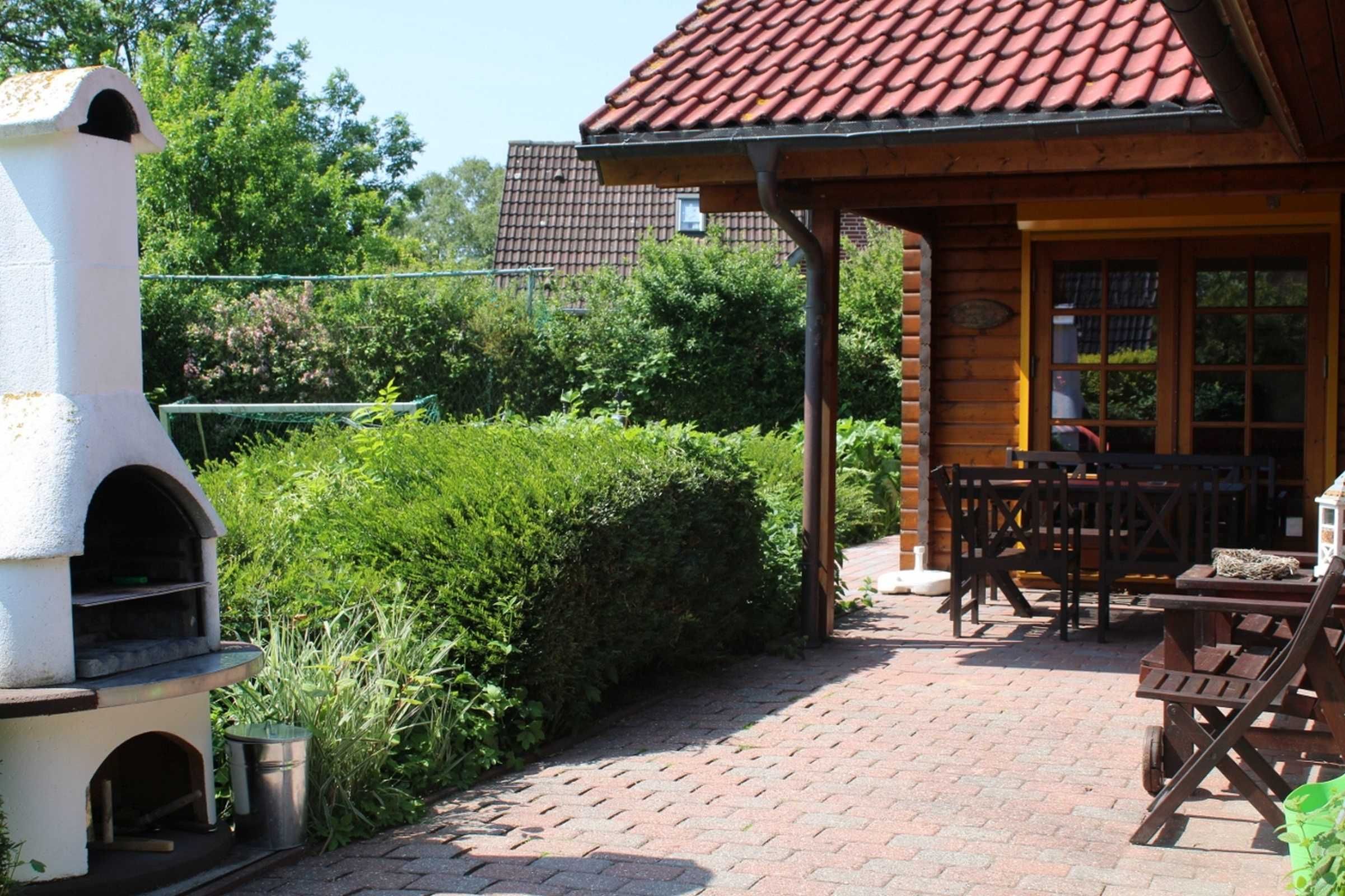 Zum Ferienhaus Birke gehört ein großer Garten mit Terrasse und Standgrill, Strandkorb und Gartenmöbeln, sowie einem Spielplatz und verschiedene Spielgeräte für Kinder. Ausgezeichnet mit Kinder Plus
