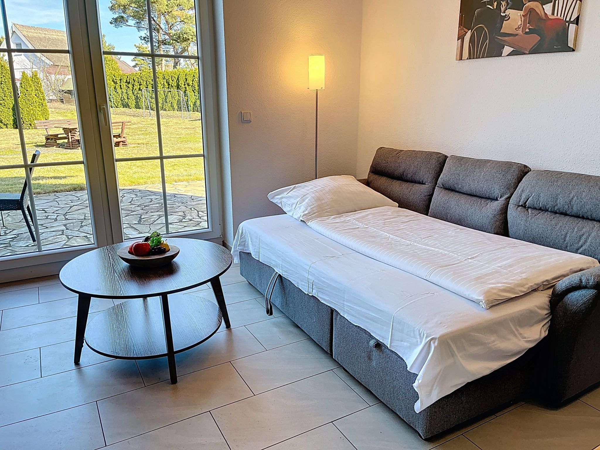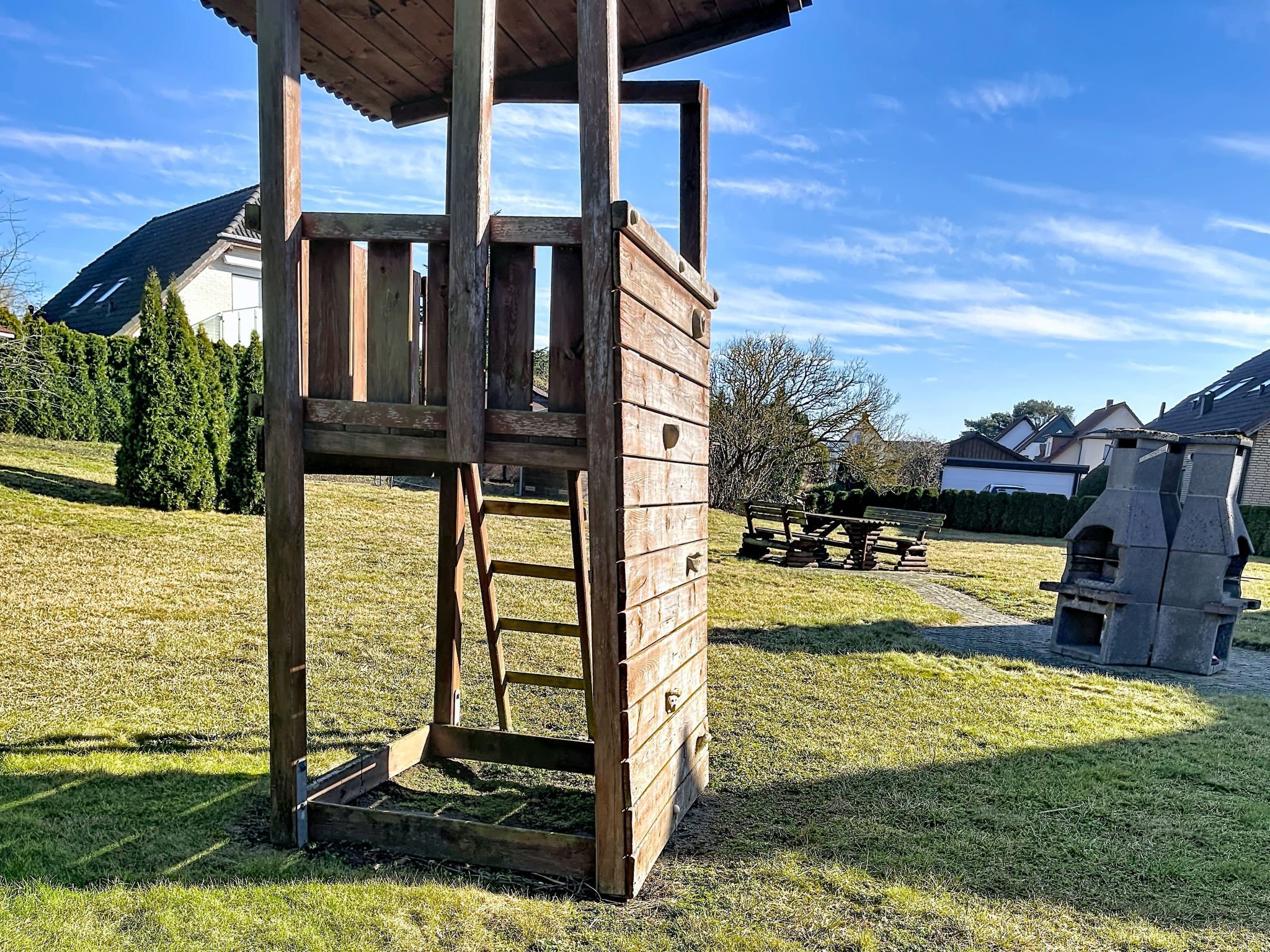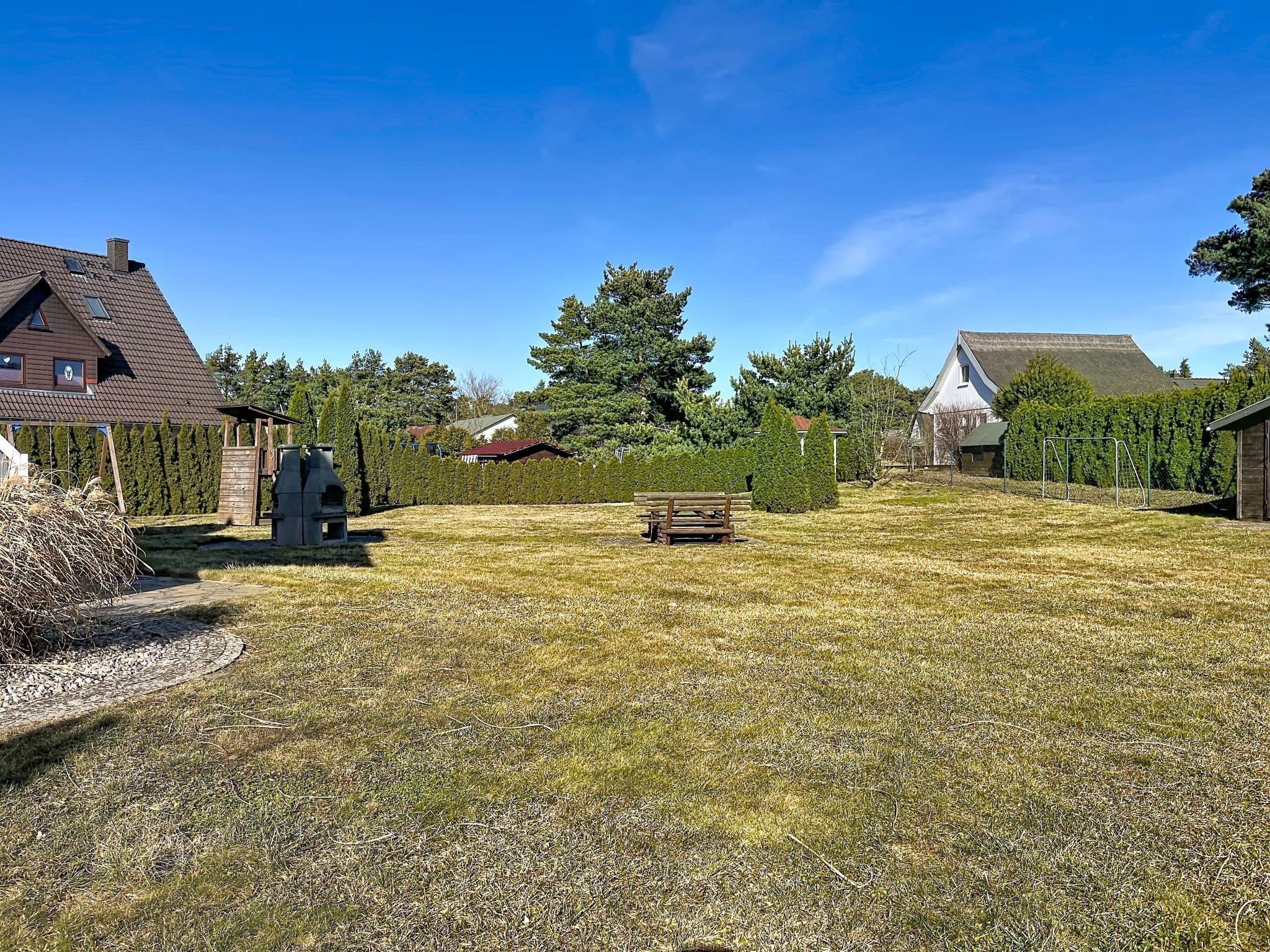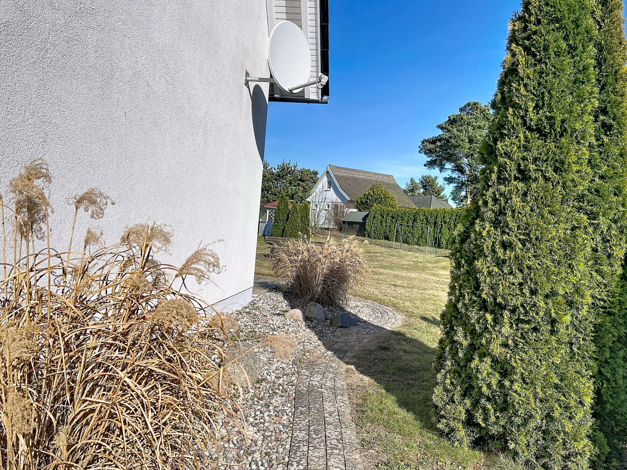 Kinderfreundliches Reihenhaus auf 2 Stockwerken. Im Ort, 350 m vom Zentrum von Trassenheide, 1.8 km vom Meer, 1.8 km vom Strand. Zur Mitbenutzung: Grundstück, Wiese. Sitzplatz, Gartenmöbel, Grill, Kinderspielplatz (Schaukel). Im Hause: Einstellraum für Fahrräder, Zentralheizung. Parkplatz auf dem Grundstück. Supermarkt 850 m, Restaurant 800 m, Bäckerei, Café 850 m, Fahrradverleih 10 m, Bushaltestelle, Bahnstation 450 m, Sandstrand 1.8 km, Thermalbad Bernsteintherme 3.9 km. Golfplatz (18 Loch) 29 km, Surfschule 3.9 km, Tennis 3.7 km, Minigolf 3.8 km. Der Besitzer akzeptiert keine Jugendgruppen.