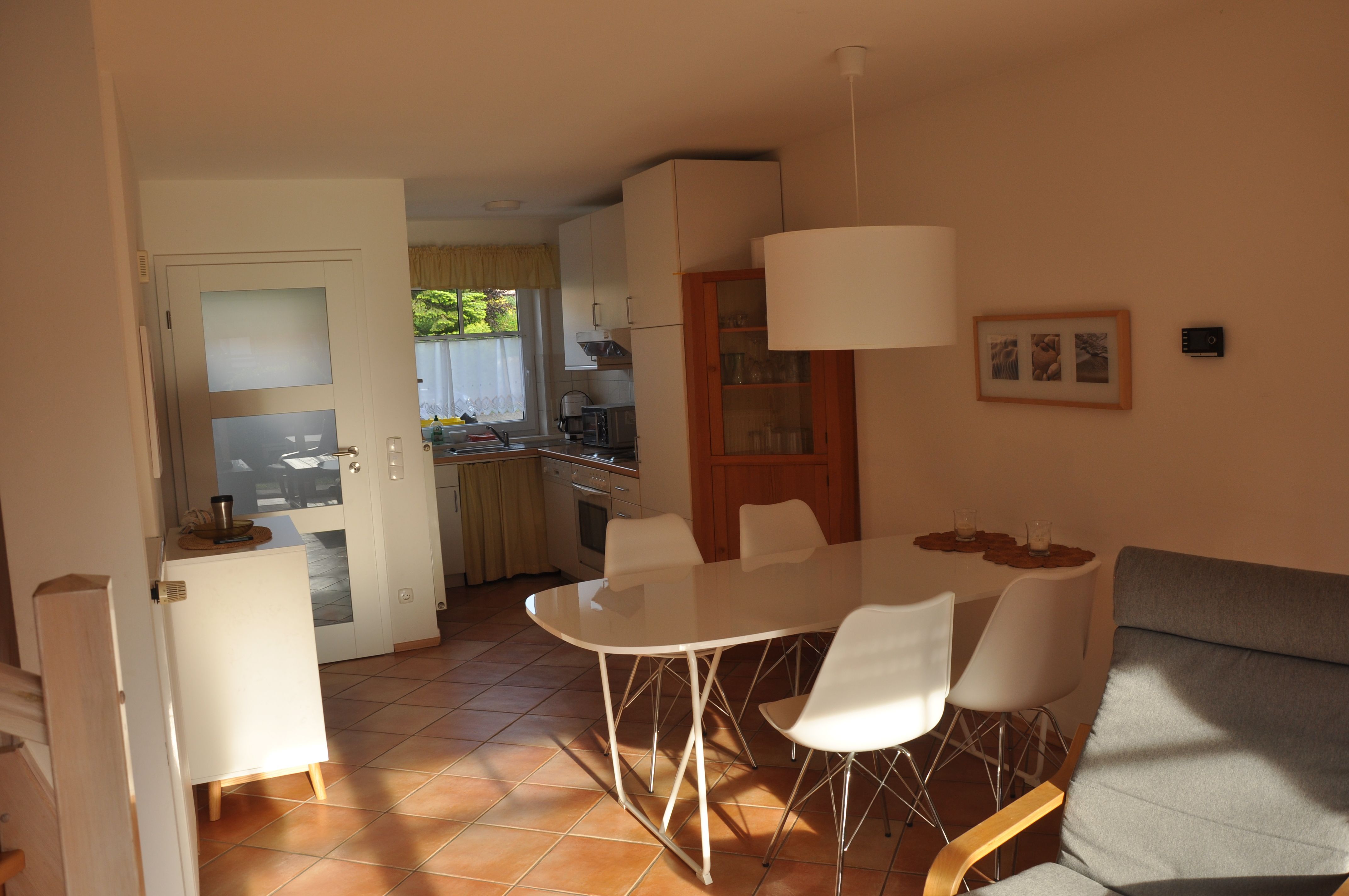 Unser hell und familienfreundlich eingerichtetes Mittelreihenhaus (Baujahr 1998) befindet sich im Sanddornweg und damit in unmittelbarer Strandnähe. Sie müssen auf die Annehmlichkeiten, die Sie von zu Hause gewohnt sind, nicht verzichten, da das Haus sehr gut ausgestattet ist (Waschmaschine, Spülmaschine, Herd/Backofen, Kühlschrank, Sat-TV, CD-,DVD-Player, Kinderbett). Im Erdgeschoss finden Sie neben Küche und Wohn-/Esszimmer ein Gäste-WC. Der Esstisch bietet Platz für 6 Personen; ein Kinderstuhl ist ebenfalls vorhanden. Im oberen Geschoss befinden sich zwei Schlafzimmer, beide jeweils mit einem Doppelbett (180 x 200 und 140 x 200) ausgestattet, sowie ein Badezimmer mit Dusche und WC. Ein Kinderbett steht ebenfalls zur Verfügung. Im Dachgeschoss ist ein drittes separates Schlafzimmer (2 Betten), das über ein Schlafzimmer im 1.OG zu erreichen ist.Wir bitten zu beachten, dass eine Belegung mit 6 Erwachsenen uns ungeeignet erscheint was die Schlafgelegenheiten angeht, so dass wir gern nur maximal 4 Erwachsene ansprechen möchten, unser Haus zu buchen. Fragen Sie gern nach. Vielen Dank. Die Terrasse bietet viel Platz zum Entspannen und das Gartenhäuschen können Sie z. B. als Unterstellmöglichkeit für Ihre mitgebrachten Fahrräder nutzen.