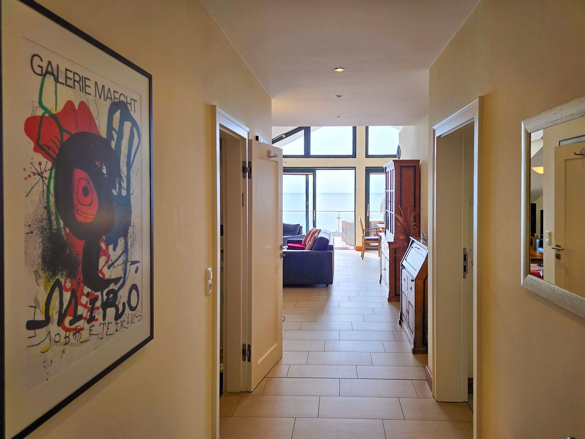 Jedes Zimmer hat seinen eigenen Stil und dadurch auch sein eigenes Flair. Fußbodenheizung, Fahrstuhl und eigener Parkplatz sind hier selbstverständlich. Moderne Bäder mit Badewanne und Wellnessdusche sowie eine komplett und hochwertig eingerichtete Küche warten auf Sie. Genießen Sie auf der Dachterrasse den grandiosen Ausblick auf die Ostsee.