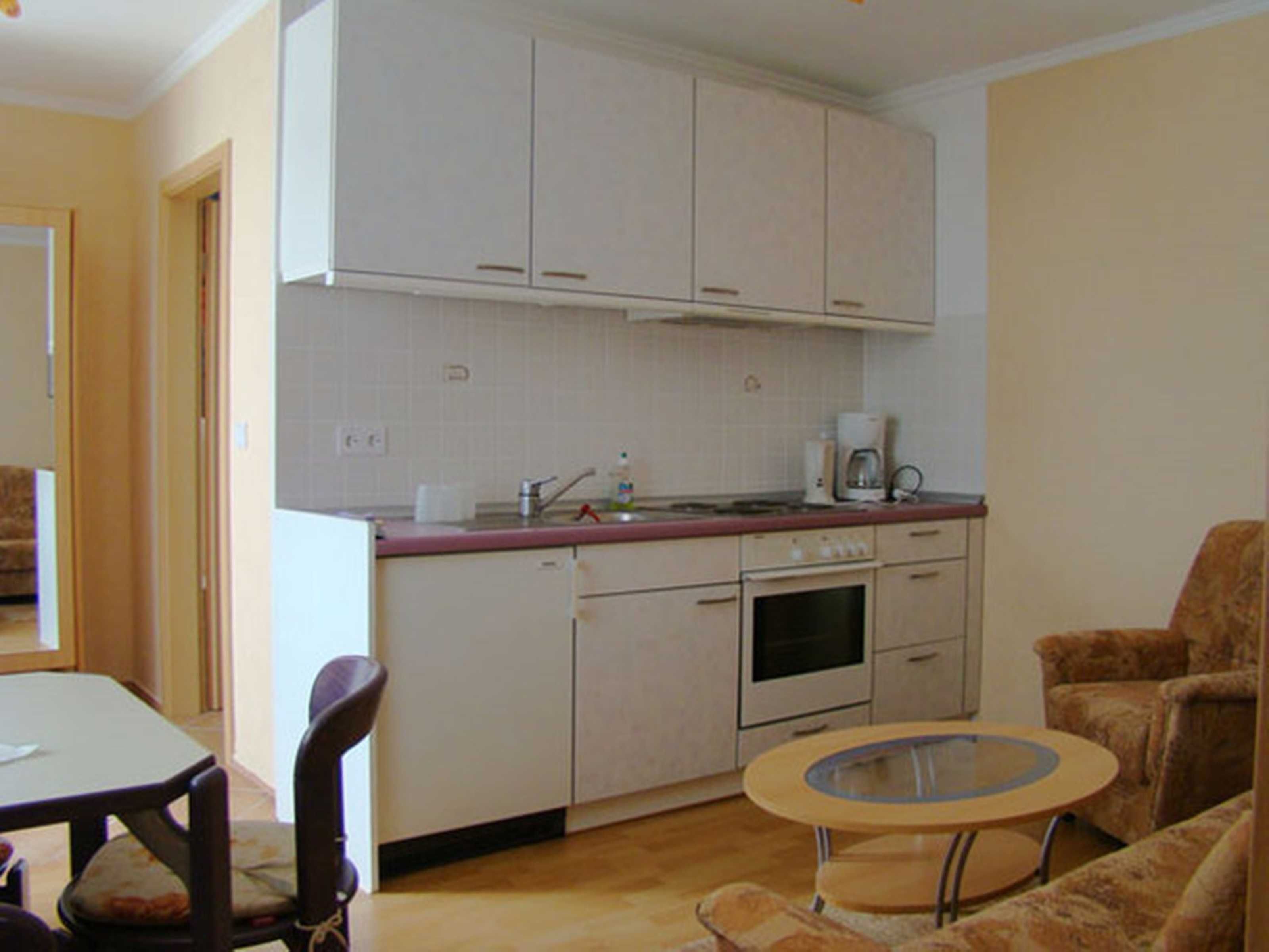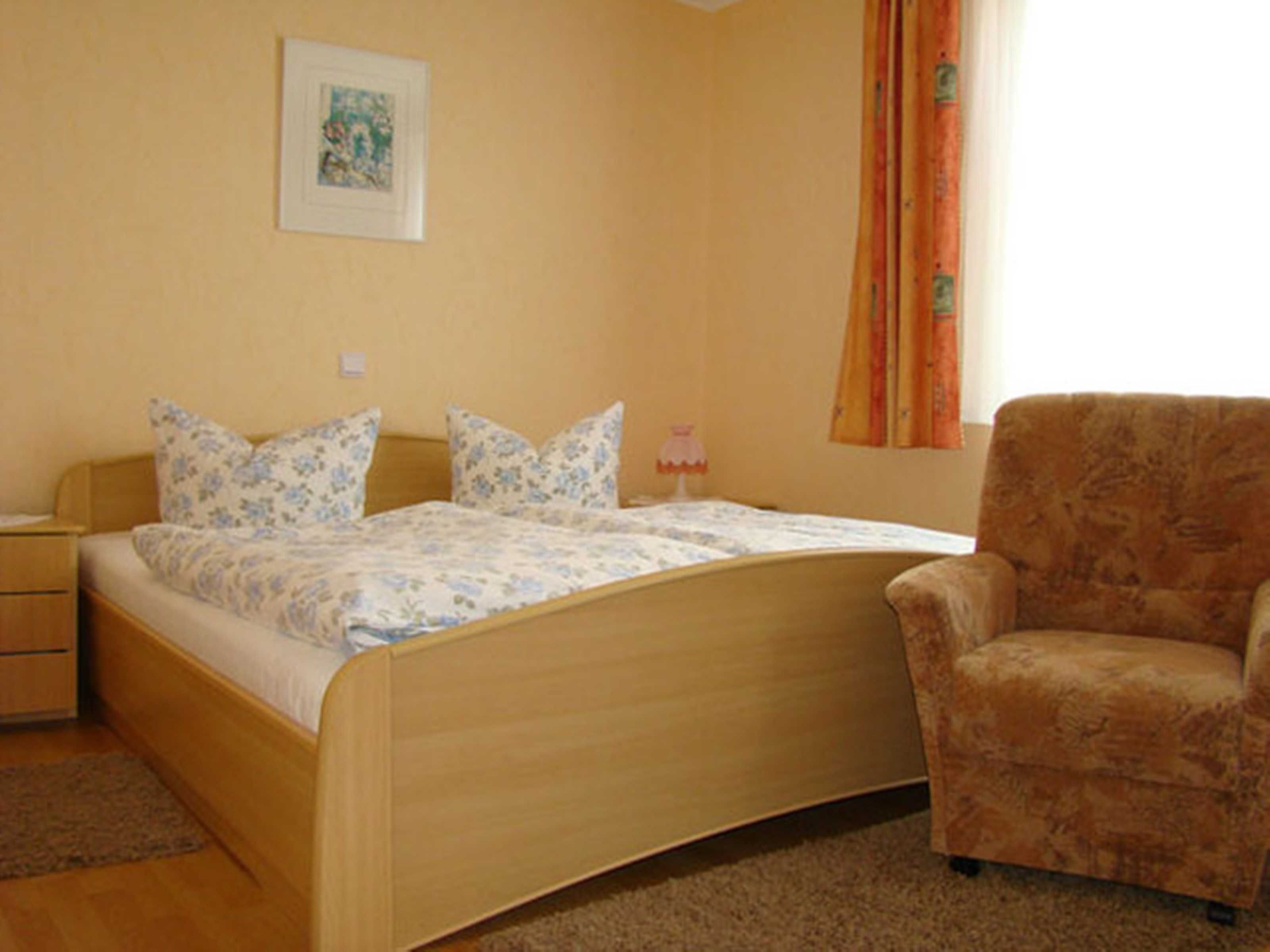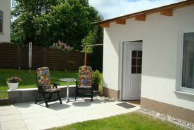 Die gemütliche mit Laminat ausgestattete 2-Raum-Ferienwohnung (32 qm²) befindet sich im Erdgeschoss und verfügt über eine in den Sommermonaten möblierte Terrasse. Die Wohnung ist mit einem Wohnraum mit Sessel, Couchtisch, Sat-TV, Radio, Esstisch mit Stühlen sowie eine integrierte Küchenzeile (mit 4 E-Herdpatten, Spüle, Kühlschrank, Kaffeemaschine, Wasserkocher etc.) ausgestattet. Der Schlafraum verfügt über ein Doppelbett und Kleiderschrank. Das Bad hat DU/WC. Ihren eigenen Pkw können Sie direkt auf dem Grundstück parken, Fahrradunterstellmöglichkeiten sind ebenso vorhanden (abschließbar). Die Erstausstattung Bettwäsche ist inklusive, Handtücher sind bitte mitzubringen.