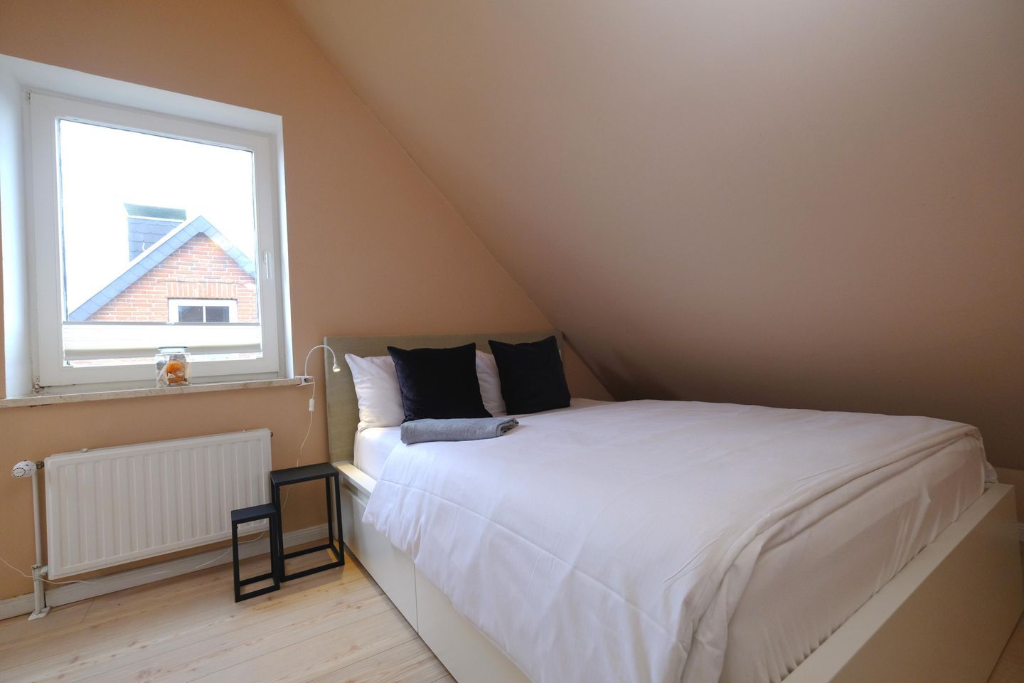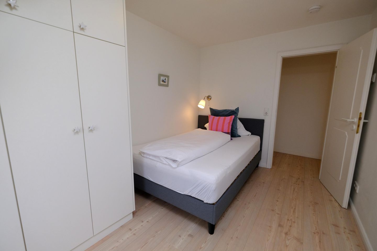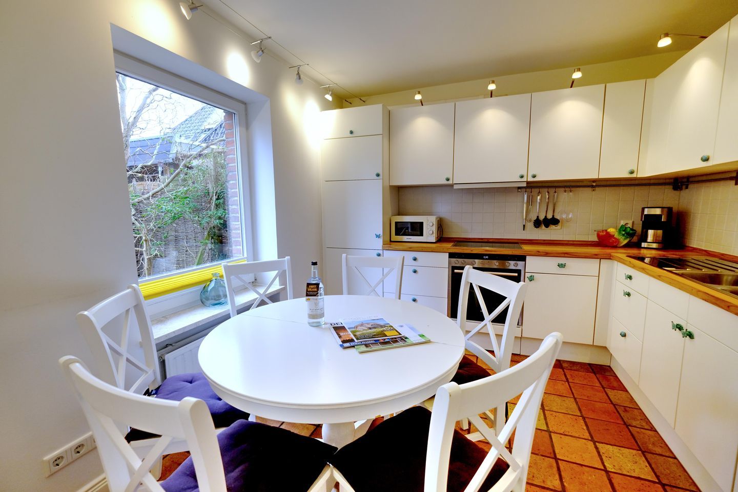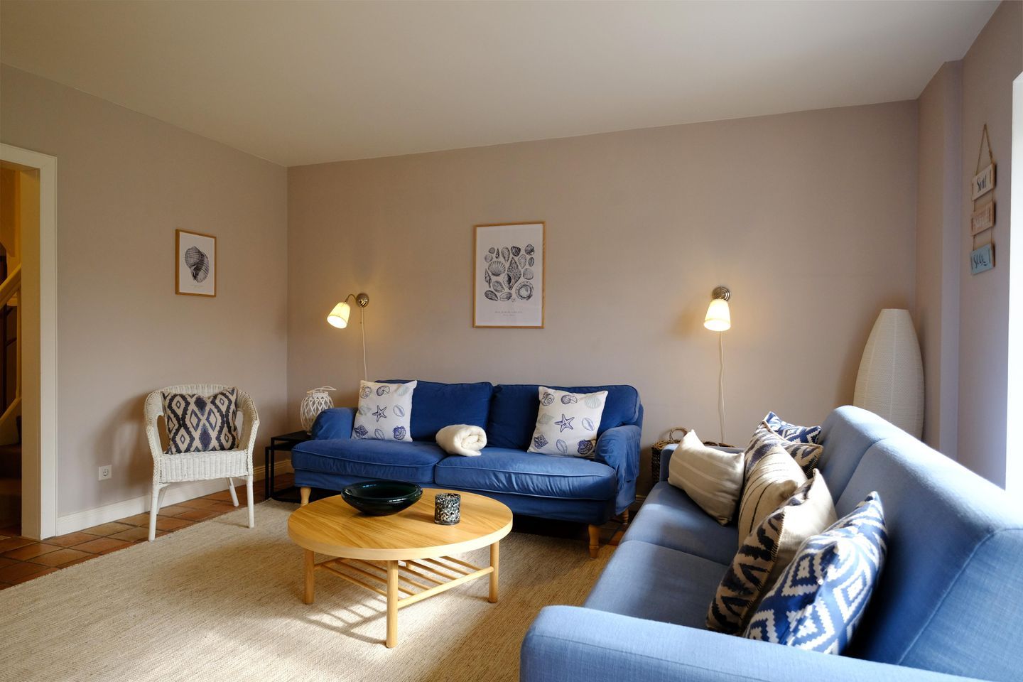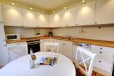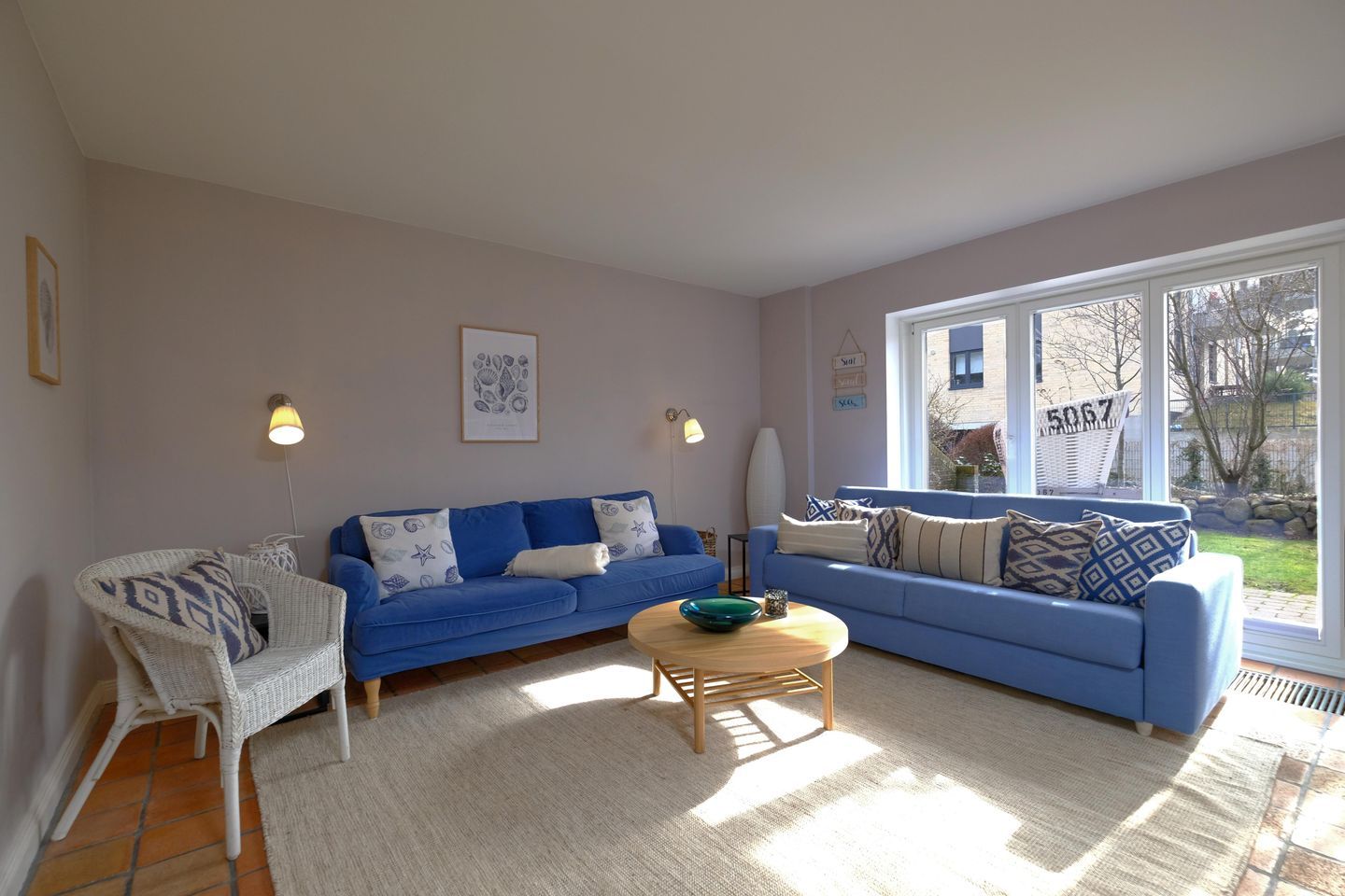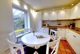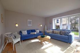 Das ruhig gelegene Mattis Hüs in Westerland bietet Ihnen auf 125 m² viel Platz für erholsame Urlaubstage. Im Erdgeschoss erwartet sie ein gemütlicher Wohnbereich, dieser ist ausgestattet mit zwei Sofas und TV und lädt zum entspannten Zusammensitzen ein. Von hier aus haben Sie auch Zutritt zur Terrasse. Die Terrasse ist sehr klein gehalten und bietet ausschließlich Platz für einen Strandkorb, der zum Entspannen im Freien einlädt. Weitere Gartenmöbel stehen auf der Terrasse nicht zur Verfügung. Die geschlossene Küche ist voll ausgestattet für die Selbstversorgung: Ceran-Herd, Backofen, Mikrowelle, Kühlschrank mit Gefrierfach, Spülmaschine sowie Kaffeemaschine, Wasserkocher und Toaster sind vorhanden. Der Esstisch in der Küche bietet ausreichend Raum für gemeinsame Mahlzeiten und lange Abende. Es steht Ihnen ein Gäste WC zur Verfügung. Über eine Treppe gelangen Sie in das erste Obergeschoss. Hier erwarten Sie 2 Badezimmer, eins davon mit Dusche, Waschbecken, Badewanne und WC. Das zweite Badezimmer verfügt über eine Dusche, Waschbecken und WC. Ebenfalls auf dieser Ebene befinden sich 3 Schlafzimmer (Bettenmaße: 160x200cm, 140x200cm, 140x200cm).Über eine weitere Treppe gelangen Sie in das Dachgeschoss der Doppel-Ferienhaushälfte. Hier finden Sie 2 weitere Schlafzimmer. (Bettenmaße 140x200cm, 90x 200cm). Auch für längere Aufenthalte ist das Mattis Hüs praktisch ausgestattet: Waschmaschine und Trockner stehen zur Eigennutzung bereit, ebenso Wäscheständer und Bügelbrett. Ein PKW Stellplatz steht Ihnen am Ferienhaus zur Verfügung.