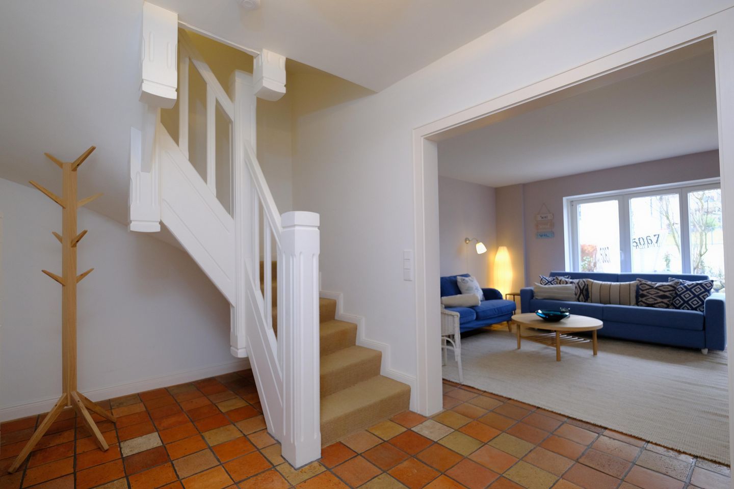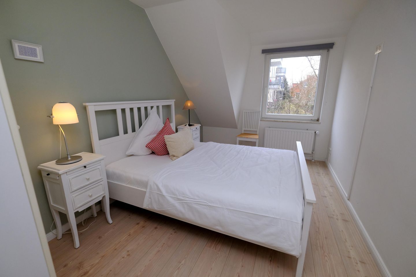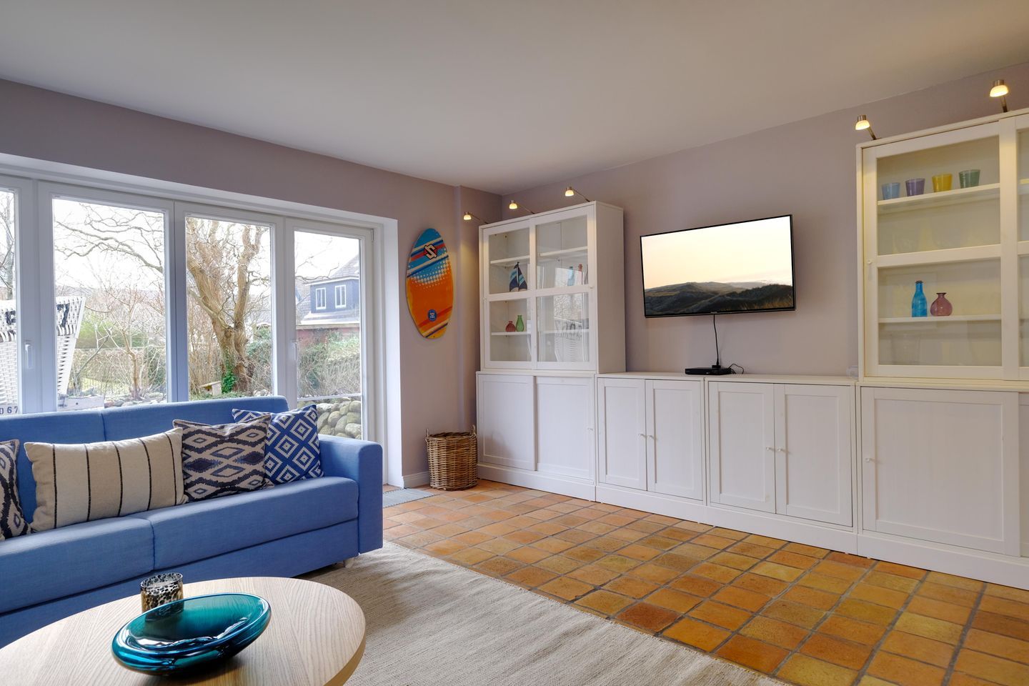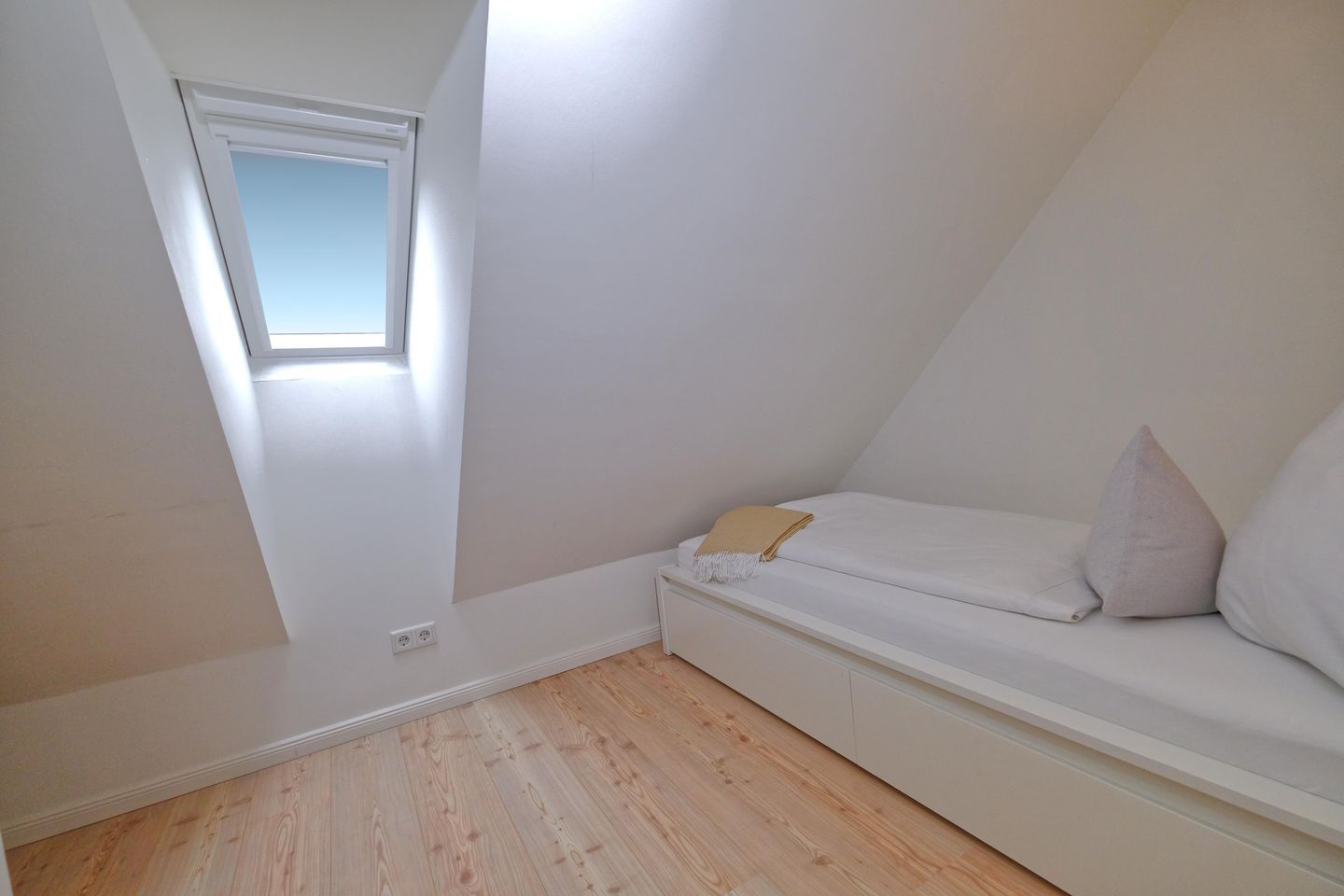 Das ruhig gelegene Mattis Hüs in Westerland bietet Ihnen auf 125 m² viel Platz für erholsame Urlaubstage. Im Erdgeschoss erwartet sie ein gemütlicher Wohnbereich, dieser ist ausgestattet mit zwei Sofas und TV und lädt zum entspannten Zusammensitzen ein. Von hier aus haben Sie auch Zutritt zur Terrasse. Die Terrasse ist sehr klein gehalten und bietet ausschließlich Platz für einen Strandkorb, der zum Entspannen im Freien einlädt. Weitere Gartenmöbel stehen auf der Terrasse nicht zur Verfügung. Die geschlossene Küche ist voll ausgestattet für die Selbstversorgung: Ceran-Herd, Backofen, Mikrowelle, Kühlschrank mit Gefrierfach, Spülmaschine sowie Kaffeemaschine, Wasserkocher und Toaster sind vorhanden. Der Esstisch in der Küche bietet ausreichend Raum für gemeinsame Mahlzeiten und lange Abende. Es steht Ihnen ein Gäste WC zur Verfügung. Über eine Treppe gelangen Sie in das erste Obergeschoss. Hier erwarten Sie 2 Badezimmer, eins davon mit Dusche, Waschbecken, Badewanne und WC. Das zweite Badezimmer verfügt über eine Dusche, Waschbecken und WC. Ebenfalls auf dieser Ebene befinden sich 3 Schlafzimmer (Bettenmaße: 160x200cm, 140x200cm, 140x200cm).Über eine weitere Treppe gelangen Sie in das Dachgeschoss der Doppel-Ferienhaushälfte. Hier finden Sie 2 weitere Schlafzimmer. (Bettenmaße 140x200cm, 90x 200cm). Auch für längere Aufenthalte ist das Mattis Hüs praktisch ausgestattet: Waschmaschine und Trockner stehen zur Eigennutzung bereit, ebenso Wäscheständer und Bügelbrett. Ein PKW Stellplatz steht Ihnen am Ferienhaus zur Verfügung.