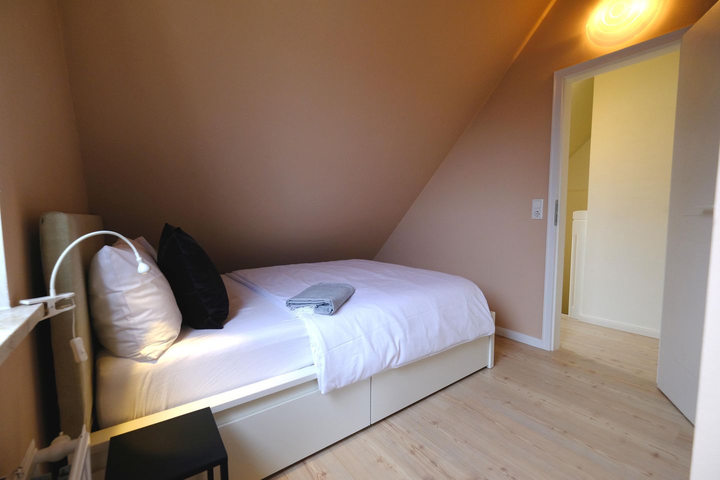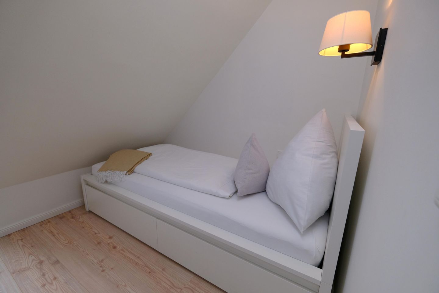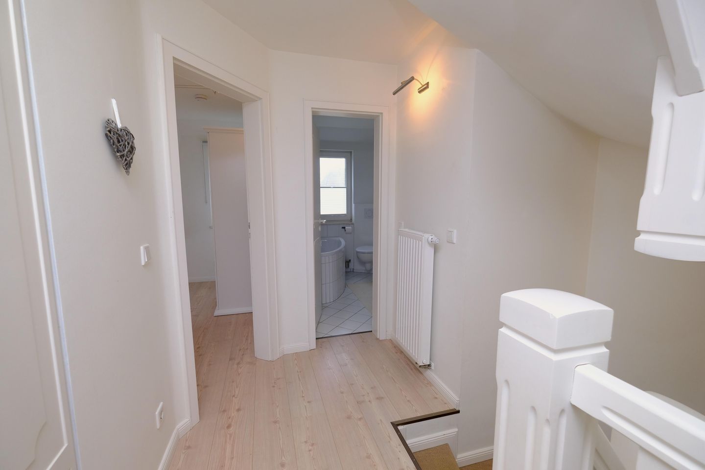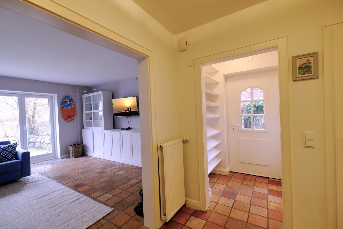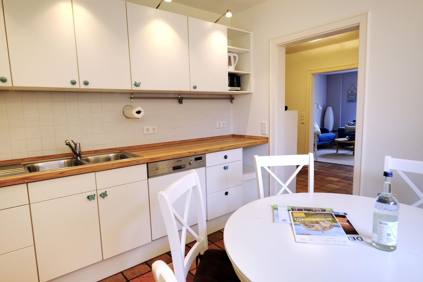 Das ruhig gelegene Mattis Hüs in Westerland bietet Ihnen auf 125 m² viel Platz für erholsame Urlaubstage. Im Erdgeschoss erwartet sie ein gemütlicher Wohnbereich, dieser ist ausgestattet mit zwei Sofas und TV und lädt zum entspannten Zusammensitzen ein. Von hier aus haben Sie auch Zutritt zur Terrasse. Die Terrasse ist sehr klein gehalten und bietet ausschließlich Platz für einen Strandkorb, der zum Entspannen im Freien einlädt. Weitere Gartenmöbel stehen auf der Terrasse nicht zur Verfügung. Die geschlossene Küche ist voll ausgestattet für die Selbstversorgung: Ceran-Herd, Backofen, Mikrowelle, Kühlschrank mit Gefrierfach, Spülmaschine sowie Kaffeemaschine, Wasserkocher und Toaster sind vorhanden. Der Esstisch in der Küche bietet ausreichend Raum für gemeinsame Mahlzeiten und lange Abende. Es steht Ihnen ein Gäste WC zur Verfügung. Über eine Treppe gelangen Sie in das erste Obergeschoss. Hier erwarten Sie 2 Badezimmer, eins davon mit Dusche, Waschbecken, Badewanne und WC. Das zweite Badezimmer verfügt über eine Dusche, Waschbecken und WC. Ebenfalls auf dieser Ebene befinden sich 3 Schlafzimmer (Bettenmaße: 160x200cm, 140x200cm, 140x200cm).Über eine weitere Treppe gelangen Sie in das Dachgeschoss der Doppel-Ferienhaushälfte. Hier finden Sie 2 weitere Schlafzimmer. (Bettenmaße 140x200cm, 90x 200cm). Auch für längere Aufenthalte ist das Mattis Hüs praktisch ausgestattet: Waschmaschine und Trockner stehen zur Eigennutzung bereit, ebenso Wäscheständer und Bügelbrett. Ein PKW Stellplatz steht Ihnen am Ferienhaus zur Verfügung.