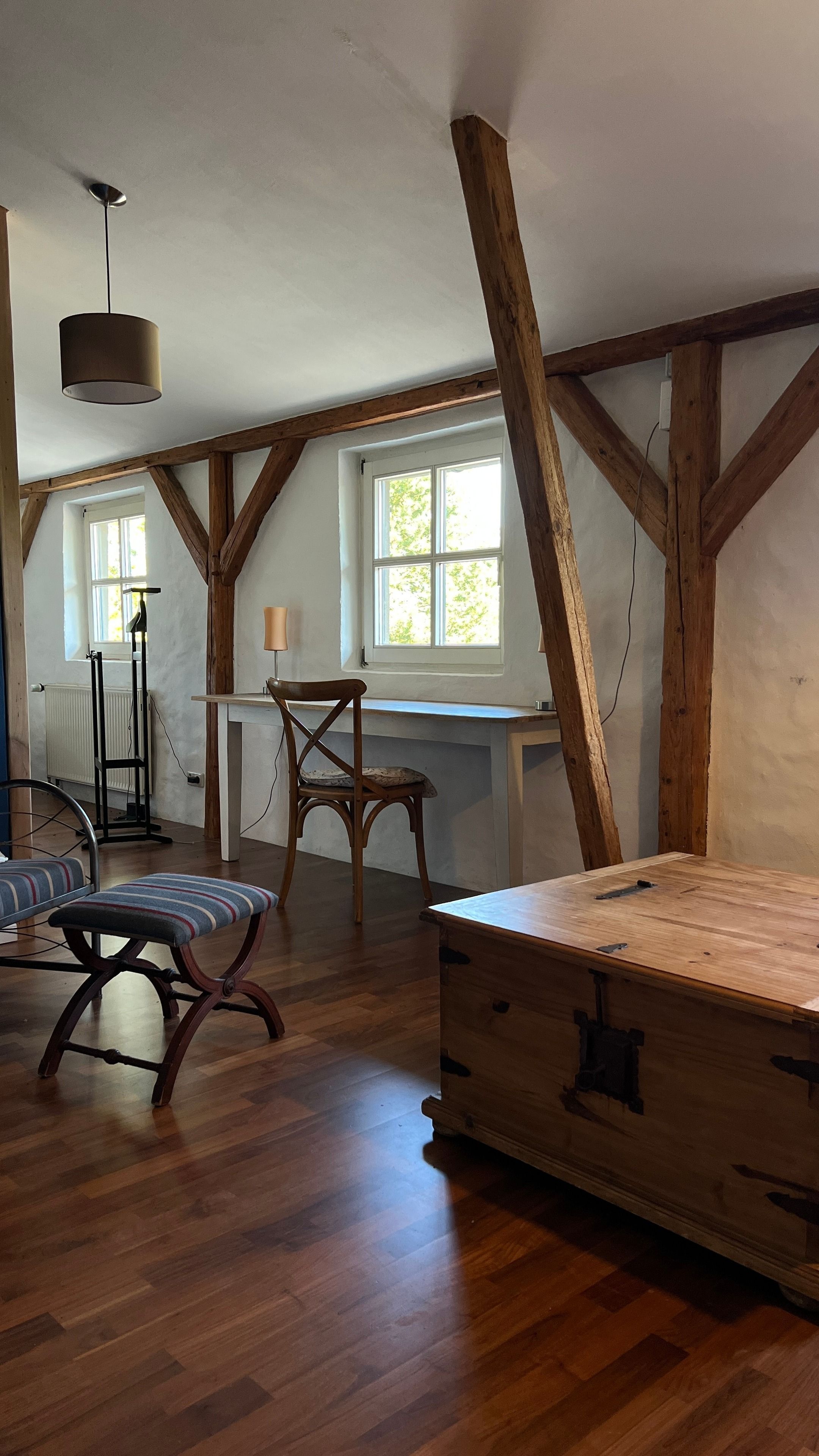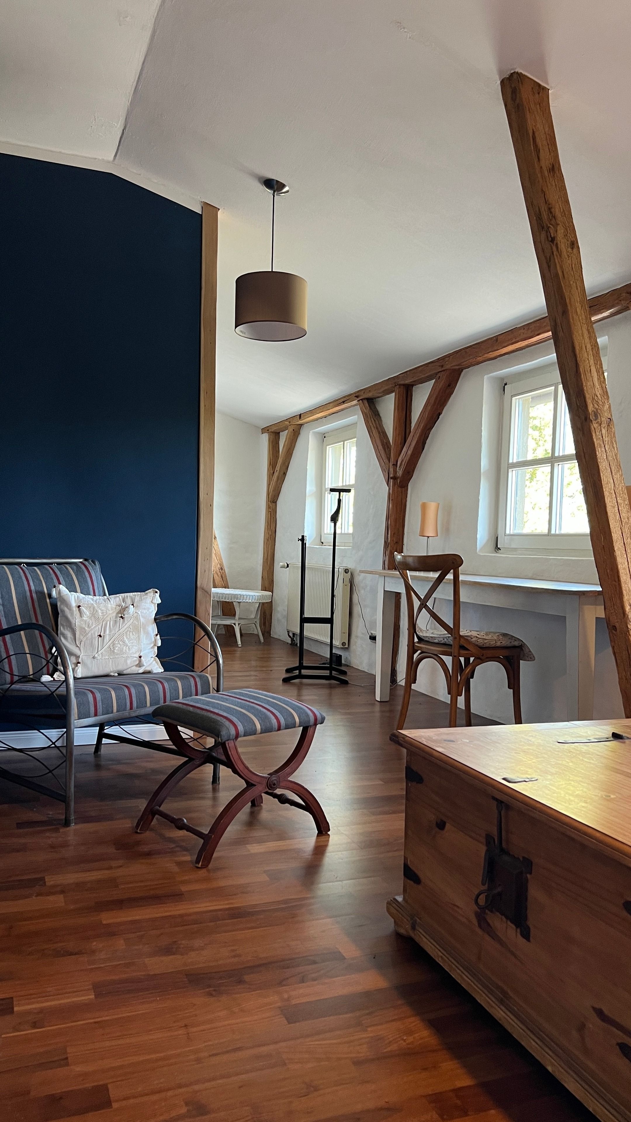 Eine Büdnerei ist eine Kleinbauernstelle, die dem Nebenerwerb diente. Das Besondere an den Häusern ist, dass sich Wohnbereich, Stallbereich und Scheune unter einem Dach befanden. Dadurch sind die einfachen Häuser verhältnismäßig groß. Individuell bauten die Besitzer Futterküche und Stallbereiche an, sodass sich die Büdnereien ein wenig unterscheiden. Unsere Büdnerei wurde 1905 erbaut, als die Pfarre Brunshaupten Land in Erbpacht vergab.
