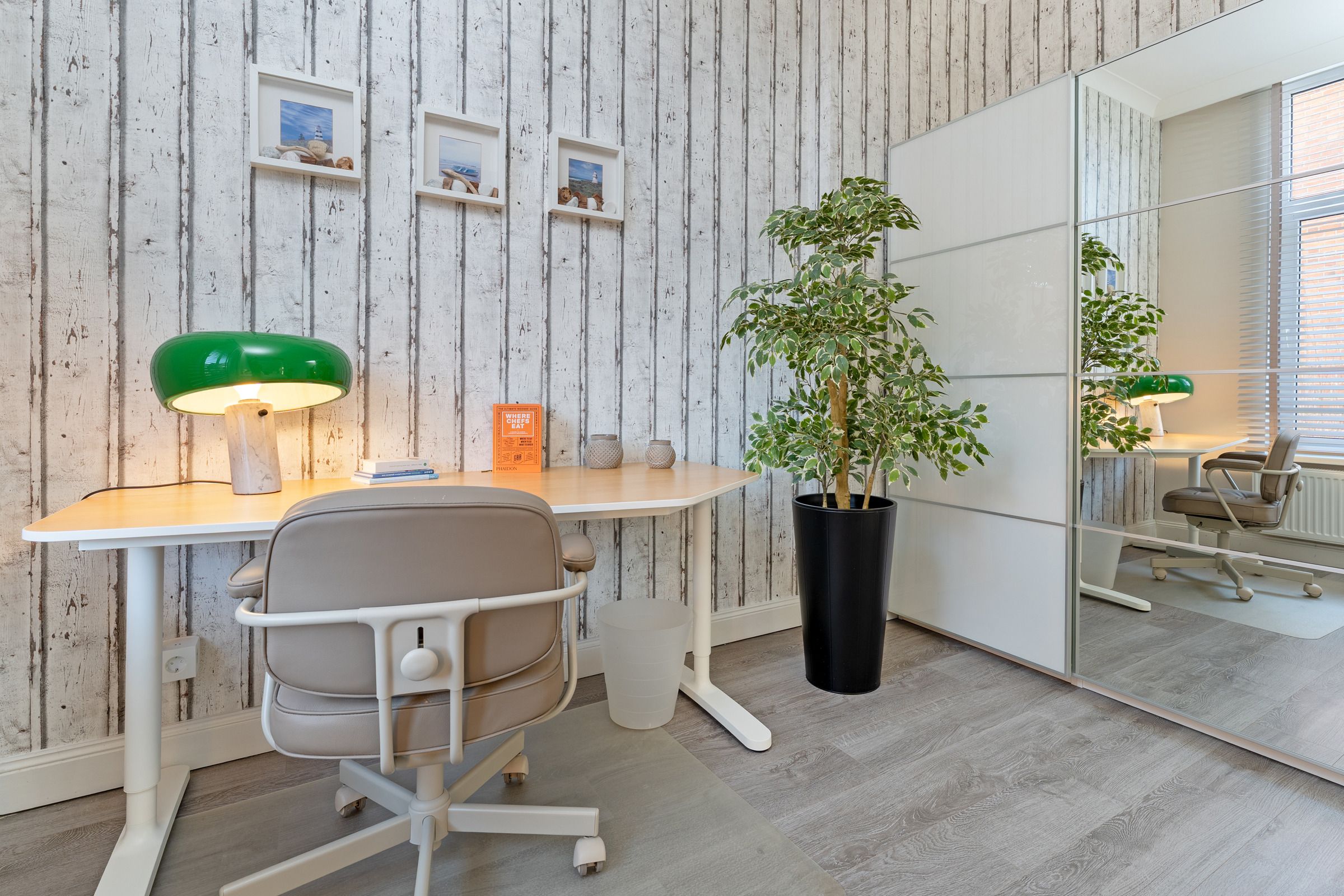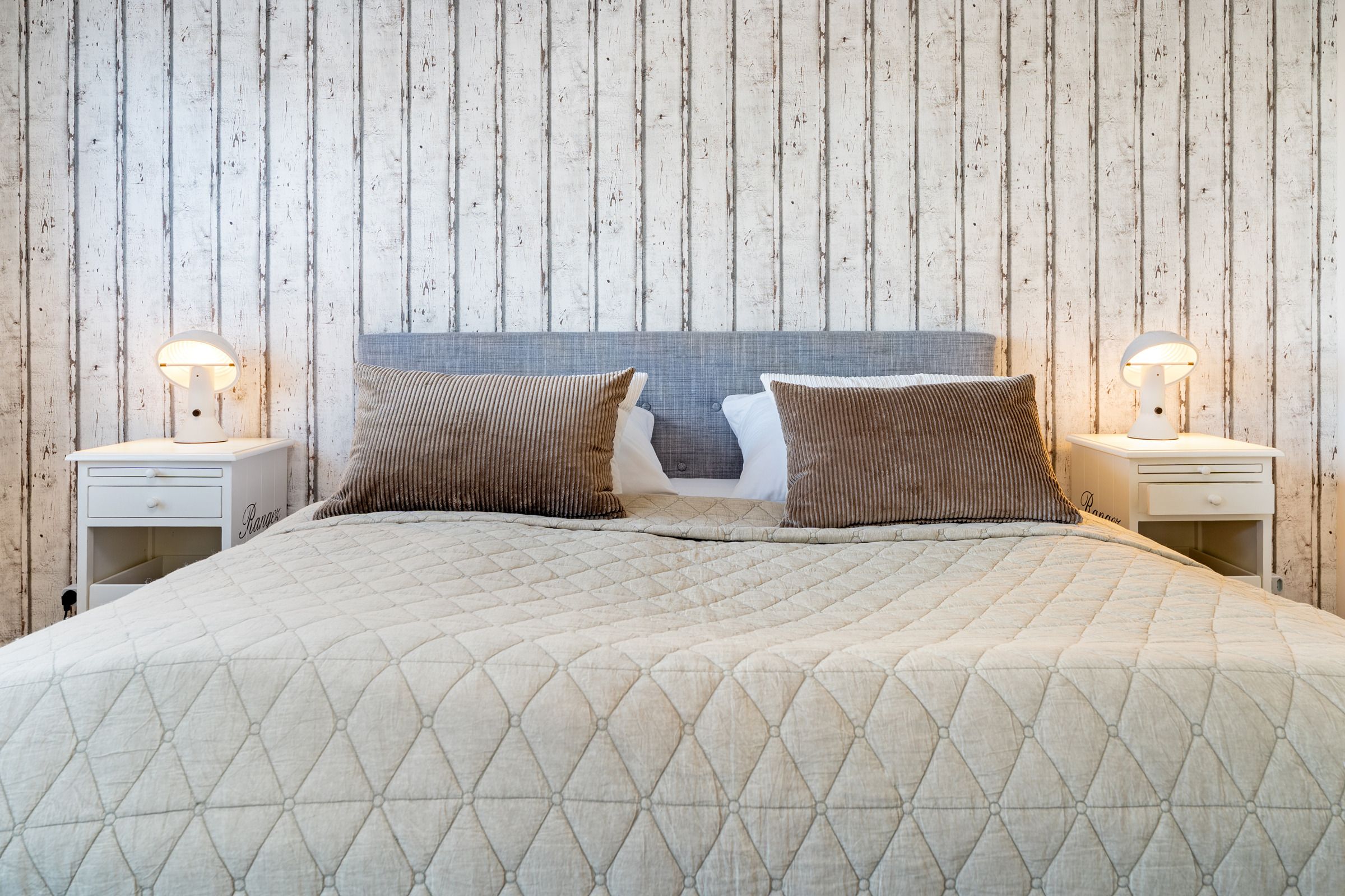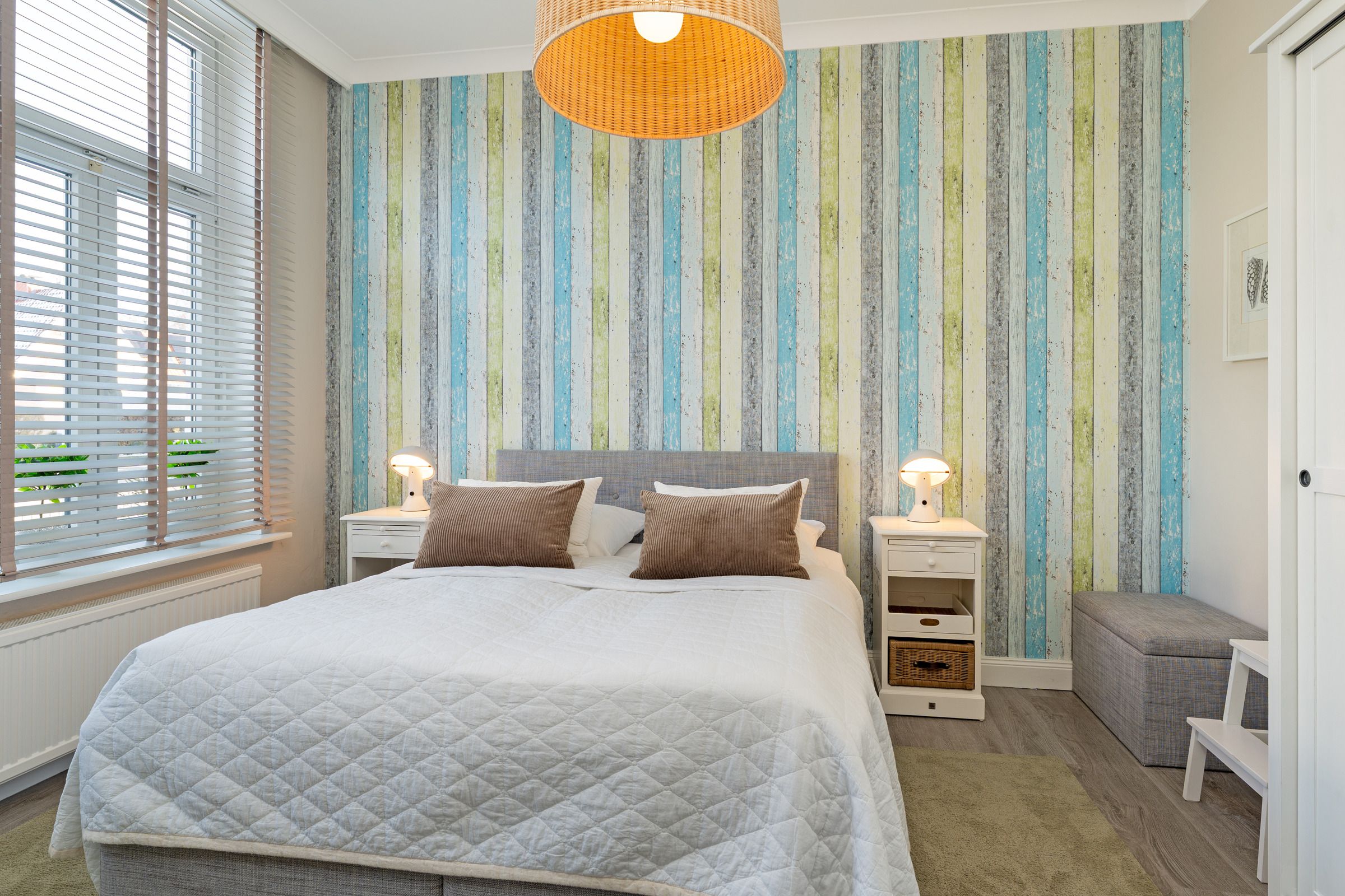 Schlafzimmer 3: 1 Boxspring-Doppelbett (160 x 200 cm) mit durchgehendem Topper, Kleiderschrank, TV, Verdunkelung: Jalousien, kein Platz für ein Babybett vorhanden