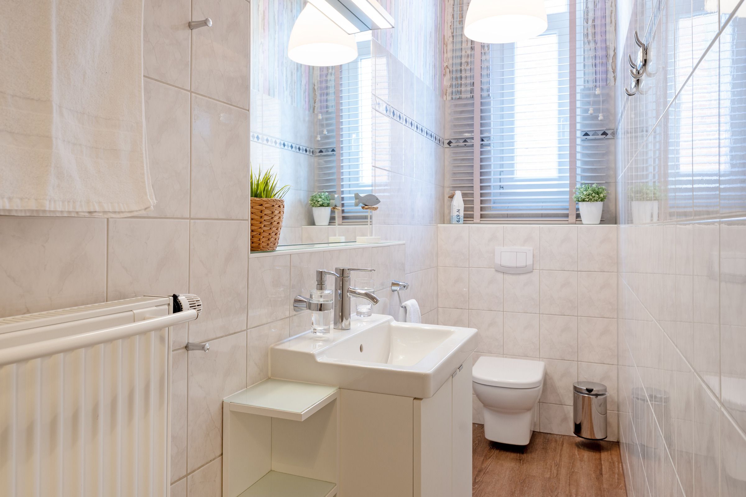 Das Badezimmer ist mit Dusche, WC und Haartrockner ausgestattet, zusätzlich steht ein separates Gäste-WC zur Verfügung. Für Familien ist ein Kinderreisebett inklusive.