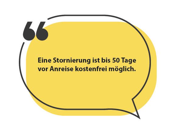 Eine kostenfreie Stornierung ist bis 50 Tage vor Anreise möglich.