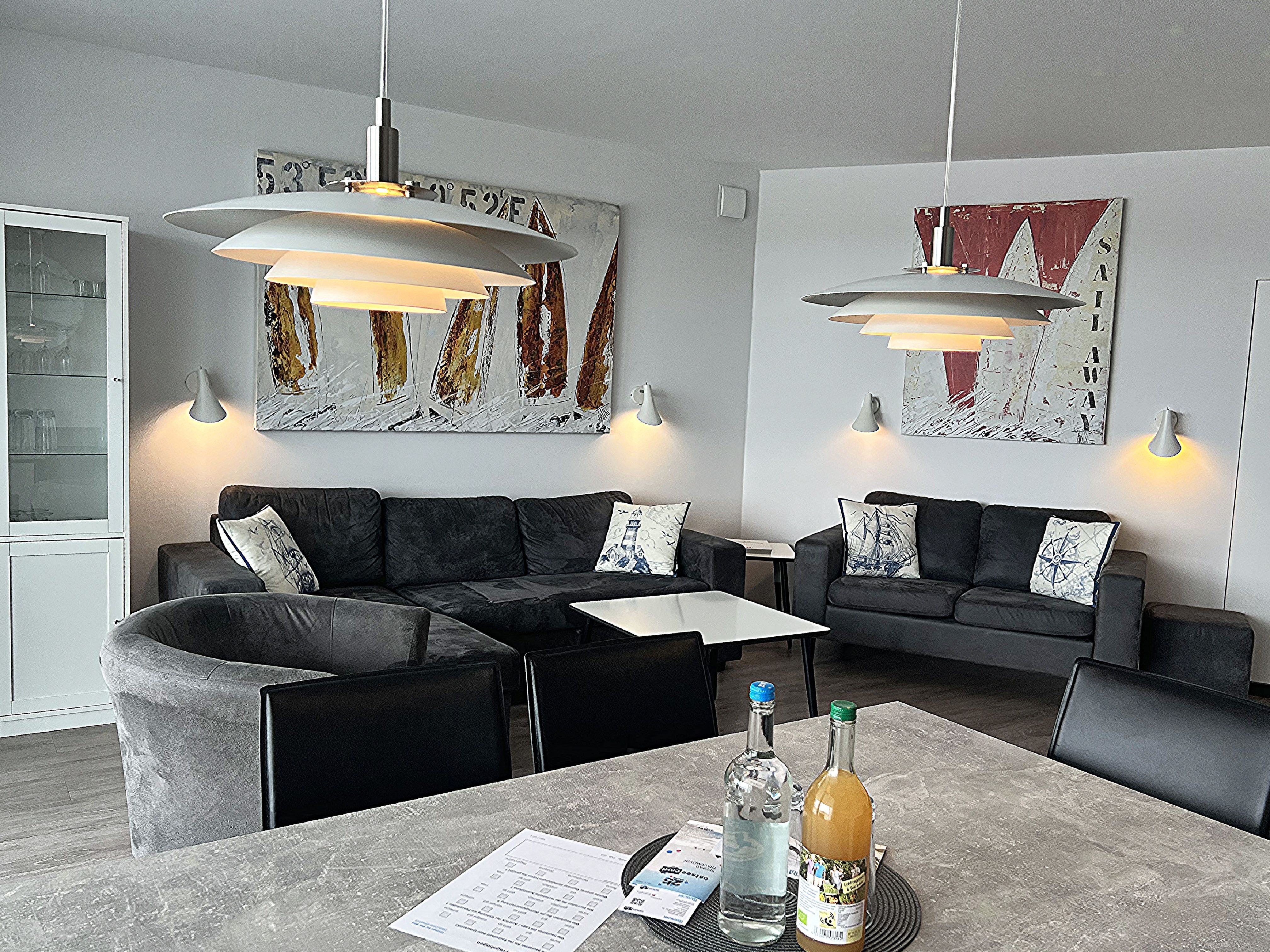 Erleben Sie erholsame Urlaubstage in dieser exklusiven, stilvoll und modern eingerichteten 3-Zimmer-Ferienwohnung. Der großzügige Wohnbereich mit integriertem Esszimmer lädt zum gemeinsamen Verweilen ein und bietet den perfekten Rahmen für entspannte Abende.