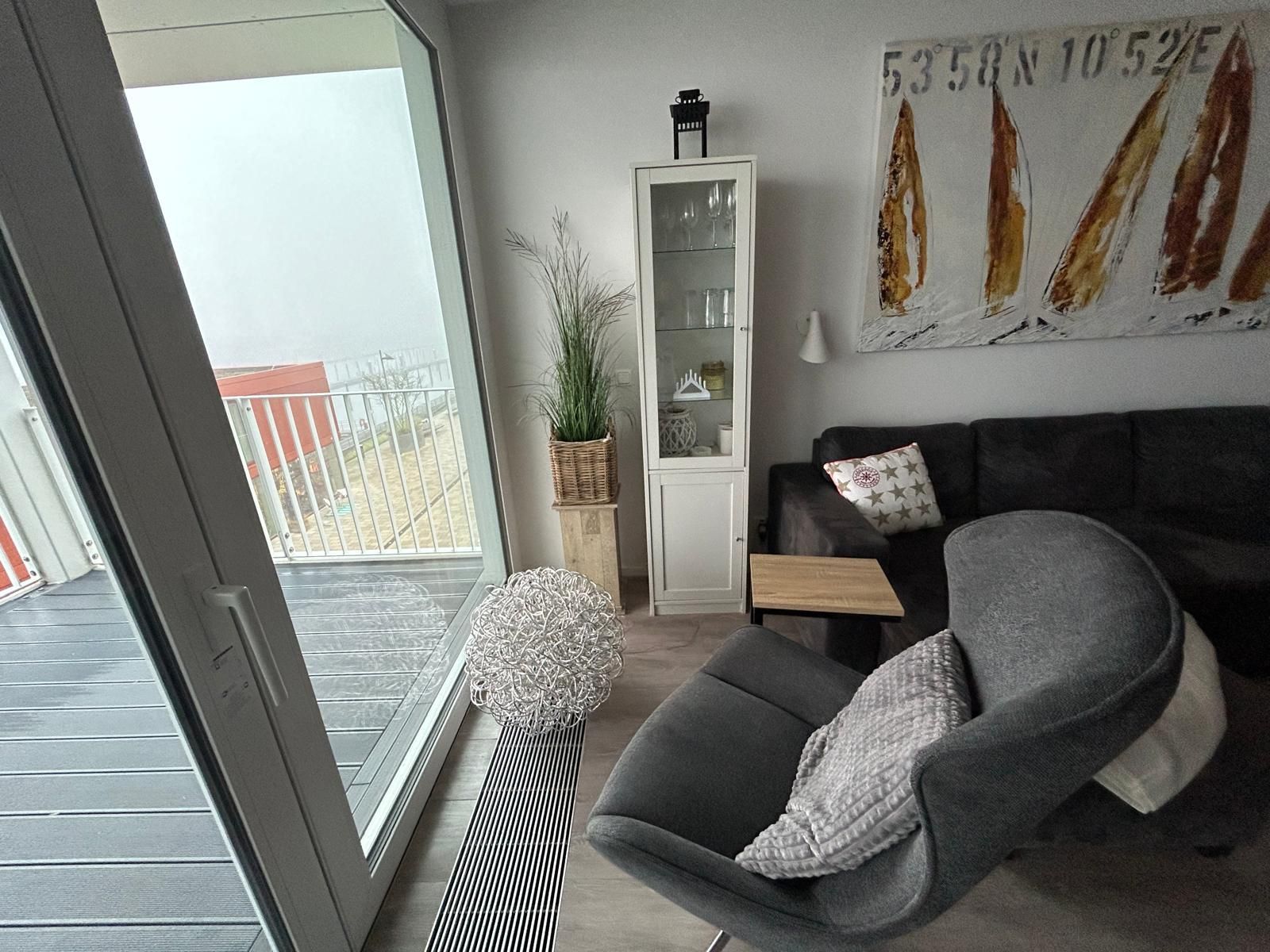 Regendusche. Im Wohnbereich sorgen am Abend die Flammen des Bioethanolkamins für eine gemütliche Atmosphäre, ebenso wie die vorbeifahrenden großen Schiffe mit ihrer eindrucksvollen nächtlichen Beleuchtung.