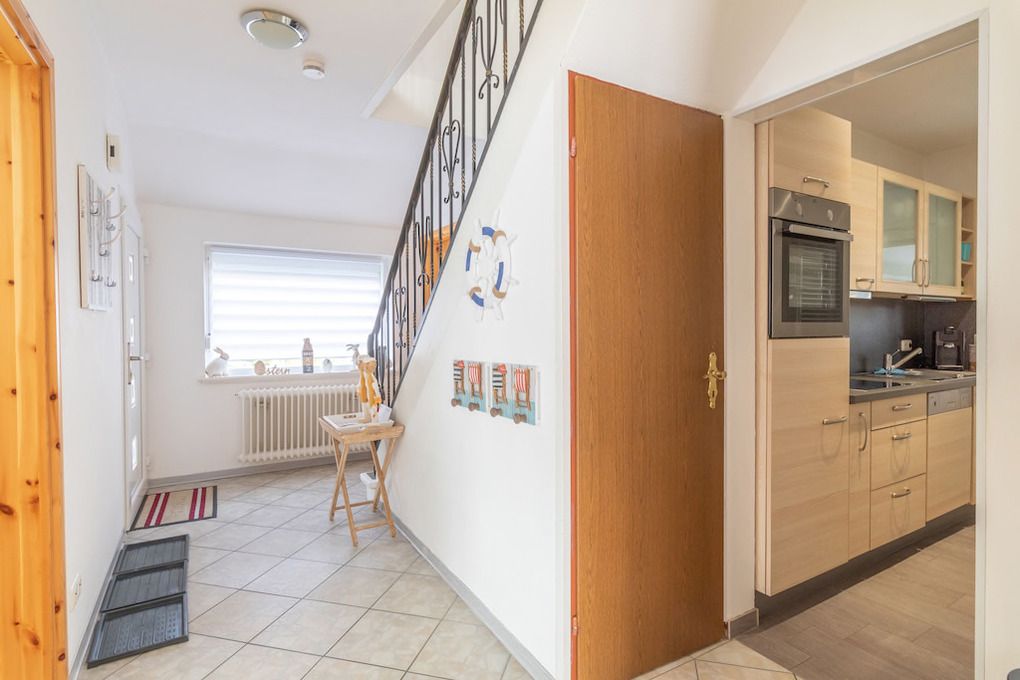 Das Haus befindet sich in einer ruhigen Seitenstraße (Achtung! Einbahnstraße) des historischen Küstenortes Dornum. Einkaufsmöglichkeiten, Ärzte, Apotheke, Bäcker usw. sind trotzdem ein einem Radius von ca. 700m Fuß läufig zu erreichen. Ebenso ist man in nur wenigen Minuten (200m) in der Natur, was für Hundefreunde nicht unwichtig sein dürfte. Die Umgebung bietet ein gut ausgebautes Fahrradwegenetz und die Küste ist nur ca. 8 km entfernt.