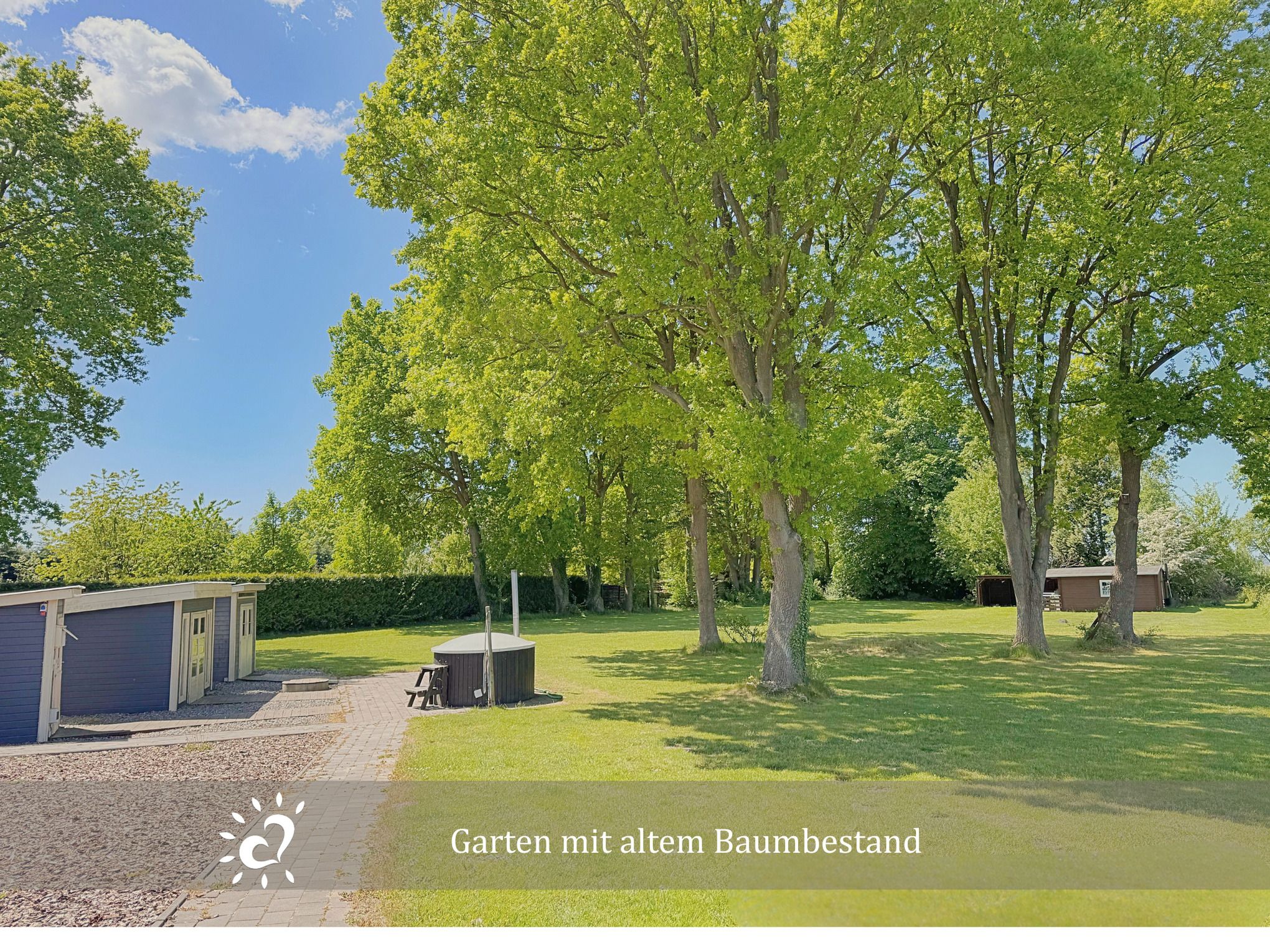 Ein besonderes Highlight ist der großzügige Garten mit holzbefeuertem Outdoor-Whirlpool und Sauna. Der liebevoll gestaltete Wellnessbereich wird von insgesamt drei Ferienwohnungen geteilt und lädt dazu ein, entspannte Stunden unter freiem Himmel zu verbringen.