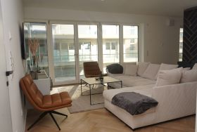 Die 3-Zimmer-Wohnung für bis zu 4 Personen bietet viel Platz zum Entspannen und Wohlfühlen. Der offene Wohn- und Essbereich mit gemütlichem Sofa und Smart-TV lädt zu gemeinsamen Stunden ein. Von hier aus gelangen Sie direkt auf den möblierten Balkon, auf dem Sie die frische Nordseeluft und den Blick auf das Meer genießen können.