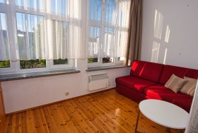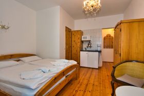 Das Appartment Anna 5 ist gut und modern eingerichtet, das Doppelbett ist 1,80 m breit und die Kopf- und Fussteile sind separat verstellbar. Heizung, Kaffeemaschine und ein Flachbild -TV sind vorhanden. Das Appartement besitzt ein eigenes Bad mit Dusche, der Fussboden ist gefliest. Das Appartment ist für Allergiker bestens geeignet. Der kombinierte Wohn-/Schlafraum ist gedielt und Hochglanz mit Speziallack versiegelt. Dieses Appartement kann wahlweise sektionsweise stromlos geschaltet werden. Bitte bringen Sie für sich Hausschuhe mit.
