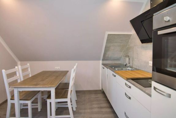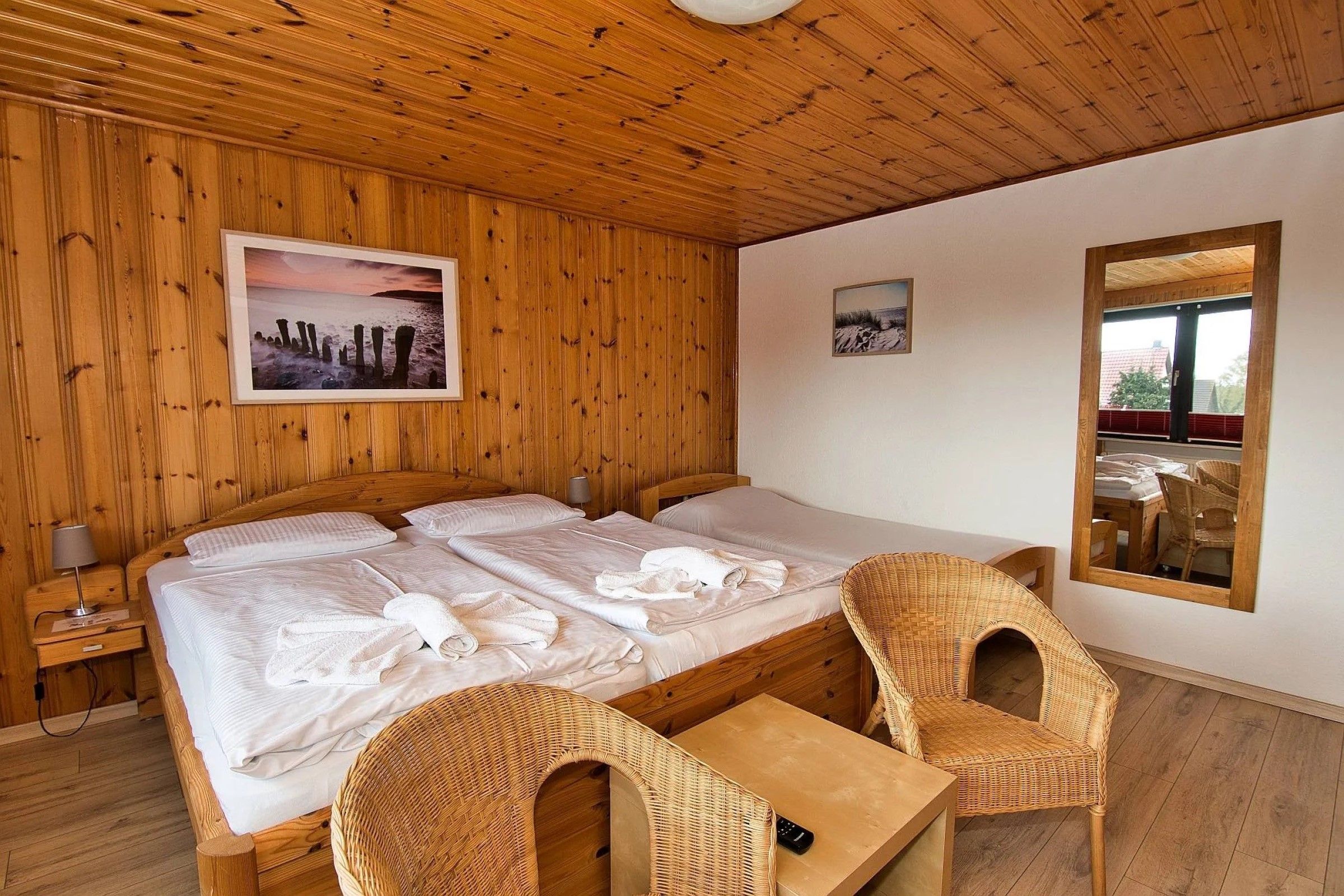 hr Appartement Olaf umfasst die ganze obere Etage des Einfamilienhauses und besitzt einen eigenen separaten Eingangsbereich. Sie gelangen über eine Außentreppe in Ihre Ferienwohnung und auf die dazugehörige Terrasse. Ihre eigene Terrasse mit den dazugehörigen Terrassenmöbeln inkl. Strandkorb, lädt Sie förmlich ein, ein traumhaftes Frühstück beim morgendlichen Sonnenschein einzunehmen. Ihr Appartement besteht aus einem Wohnzimmer, einem Schlafzimmer und einer Küche. Ihr schönes Bad ist mit einer Badewanne ausgestattet, so kann Ihr Urlaubstag entspannt beginnen und auch enden. Das Wohnzimmer ist mit Sitzgarnitur, kleiner Anbauwand mit großem LED Flachbildschirm-TV eingerichtet, mit welchem Sie sehr viele regionale, nationale und internationale Fernsehprogramme empfangen können. Wir stellen unseren Gästen WLAN zur Verfügung. Ihre separate Küche ist komplett ausgestattet, unter anderem mit einem Herd, Geschirrspüler, Mikrowelle und Kaffeemaschine. Das Schlafzimmer besitzt ein großes Doppelbett und ein Einzelbett zum Schlummern, Träumen und Relaxen! Im Schlafzimmer befindet sich ein 4K-Fernseher. Ebenso sind Nachttische und Kleiderschrank vorhanden. Wenn Sie möchten, können Sie auch Zwischenreinigungen zu je 90,-€ zubuchen. Im Garten stehen eine Sitzgruppe und ein Strandkorb zum entspannen sowie für die Trocknung der Strand- und Badesachen eine Wäschespinne bereit. Bei Bedarf, können Sie unseren Waschsalon mit Waschmaschine, Trockner und Bügelbrett in der Hotel & Ferienpension Elisabeth im Jugendweg 18 nutzen.