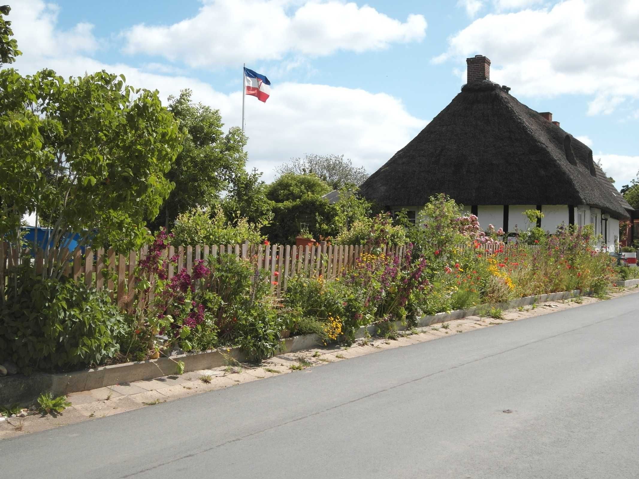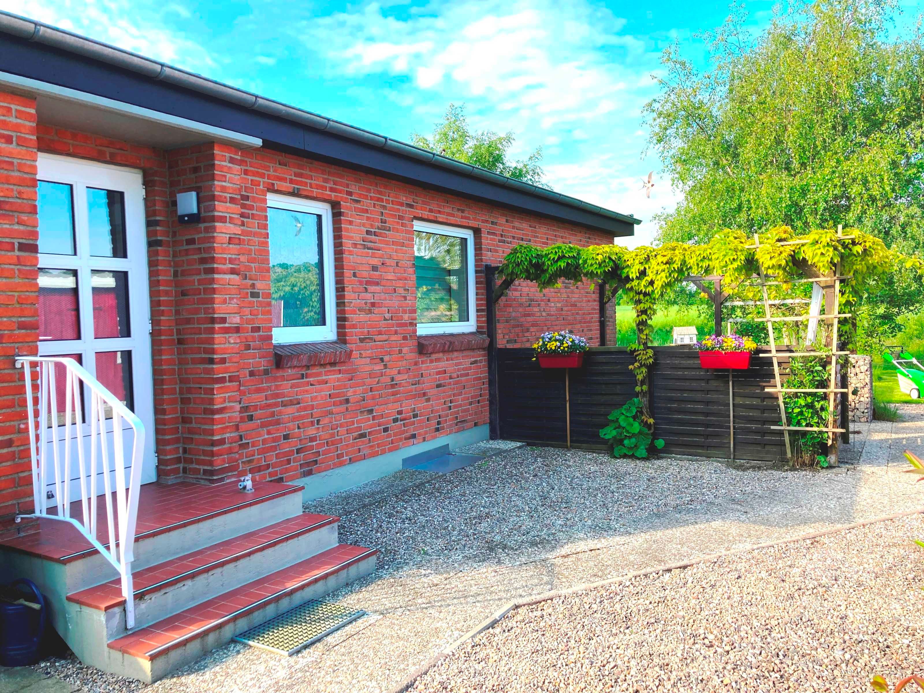 Die Ferienwohnung liegt inmitten eines großzügigen Gartens, umgeben von Feldern und Wiesen eines Gutshofes. An der süd-westlich gelegenen Rückseite unseres Bungalows liegt die drei-Zimmer-Wohnung mit separatem Eingang. Sie liegt in einer ruhigen Sackgasse (nur wenige Anlieger), die ins benachbarte Naturschutzgebiet führt. Von der Wohnung aus können Sie den Blick über Felder und Wiesen in die Ferne schweifen lassen.