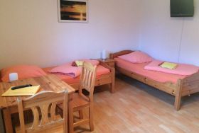 Die Unterkunft ist im Bungalowstil erbaut und verfügt über 8 Zimmer. Ausgestattet sind die Zimmer jeweils mit Einzelbetten, Kleiderschrank, Tisch mit Stühlen, Kühlschrank und einer Waschgelegenheit im Zimmer sowie einen Sat-TV. Es gibt eine große Gemeinschaftsküche mit Backofen, Kühlschrank, Gefrierschrank, Spülmaschine und Microwelle, Waschmaschine (Münzzähler 30 min=1Euro), einer Gemeinschaftsdusche und einen Damen WC sowie Herren WC.