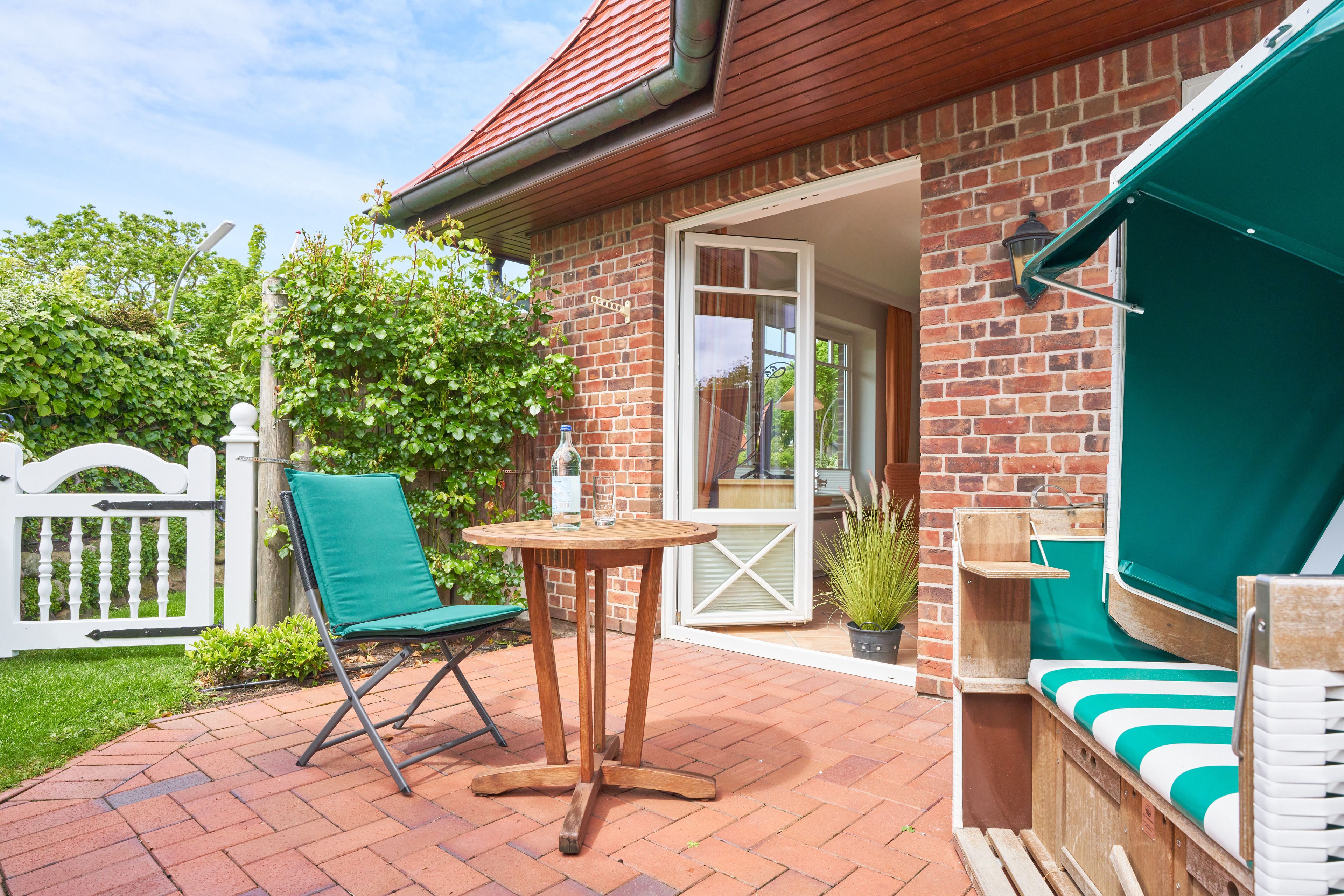 In dieser Ferienwohnung handelt es sich um eine behindertenfreundliche, ebenerdige Ferienwohnung für 2 Personen im Erdgeschoss. Auf ca. 40 m² verteilen sich Wohnzimmer mit geräumiger, integrierter Küche und Essplatz mit Schlafcouch und der Zugang zu der Terrasse mit Strandkorb und Gartenmöbeln. Das Badezimmer präsentiert sich modern und in hellen Farben mit Dusche, Toilette und Waschbecken. Ebenfalls hier zu finden ist das gemütliche Schlafzimmer mit Einzelbett.