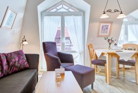 Diese ca. 40 qm große 2-Zimmer-Ferienwohnung bietet Platz für bis zu 2 Personen und befindet sich im Herzen von Westerland.
