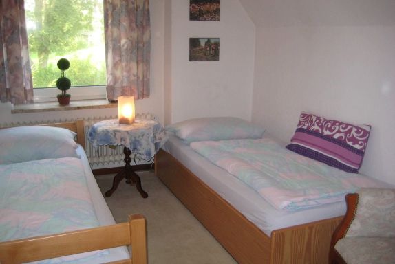 Die Nichtraucherzimmer werden nur an gemeinsam reisende Gäste abgegeben. Ein Zimmer mit Doppelbett und ein Zimmer mit 2 Einzelbetten (90x200 cm), Babybett bei Bedarf. Großzügiges Duschbad zur Alleinnutzung. Reisen nur 2 Personen, kann das 2. Schlafzimmer zum getrennten Schlafen hinzugebucht werden. Unser reichhaltiges Frühstück servieren wir Ihnen im Wintergarten. Dort befindet sich auch ein Kühlschrank mit Gefrierfach, ein Mikrowellengerät und eine Kaffeemaschine nebst ausreichendem Geschirr. So können Sie sich kleine Mahlzeiten selbst bereiten. SAT-TV und Radio sind vorhanden.