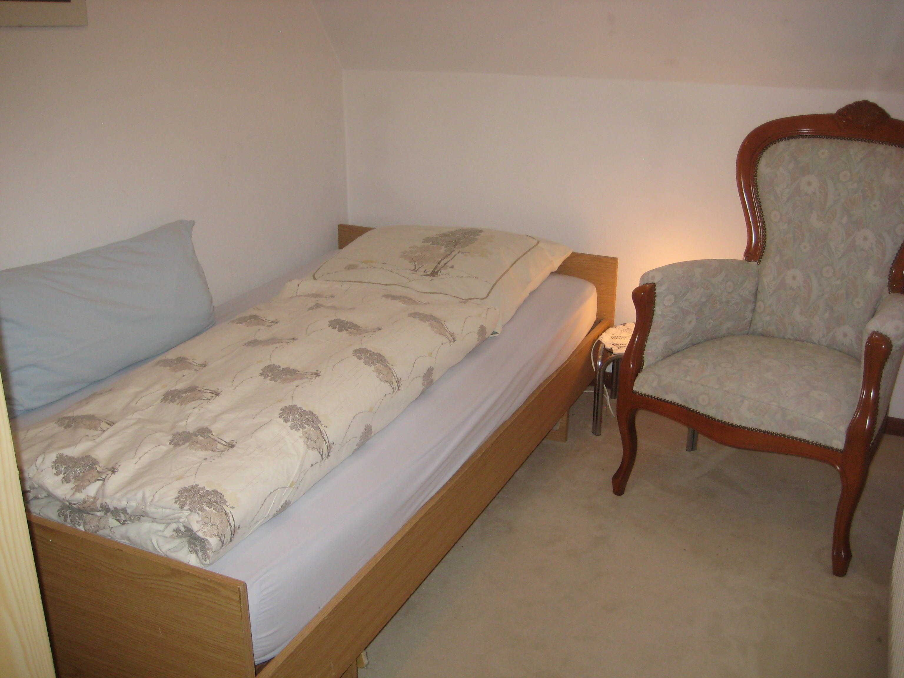 In unserem Haus haben wir für Sie ein Doppelzimmer mit Einzelbetten und ein Einzelzimmer. Ein großes Duschbad mit WC gehört dazu. Gefrühstückt wird im Wintergarten, der den Gästen auch als Aufenthaltsraum zur alleinigen Nutzung zur Verfügung steht. Im Garten stehen Tisch, Stühle und Sonnenschirm. Ein Fahrradabstellraum, der wegen seiner Größe den Kindern auch zum Spielen bei trübem Wetter zur Verfügung steht, sind vorhanden. Auf unserem Grundstück haben die Kinder viel Platz und die Eltern entsparannen auf den bereitstehenden Liegen.