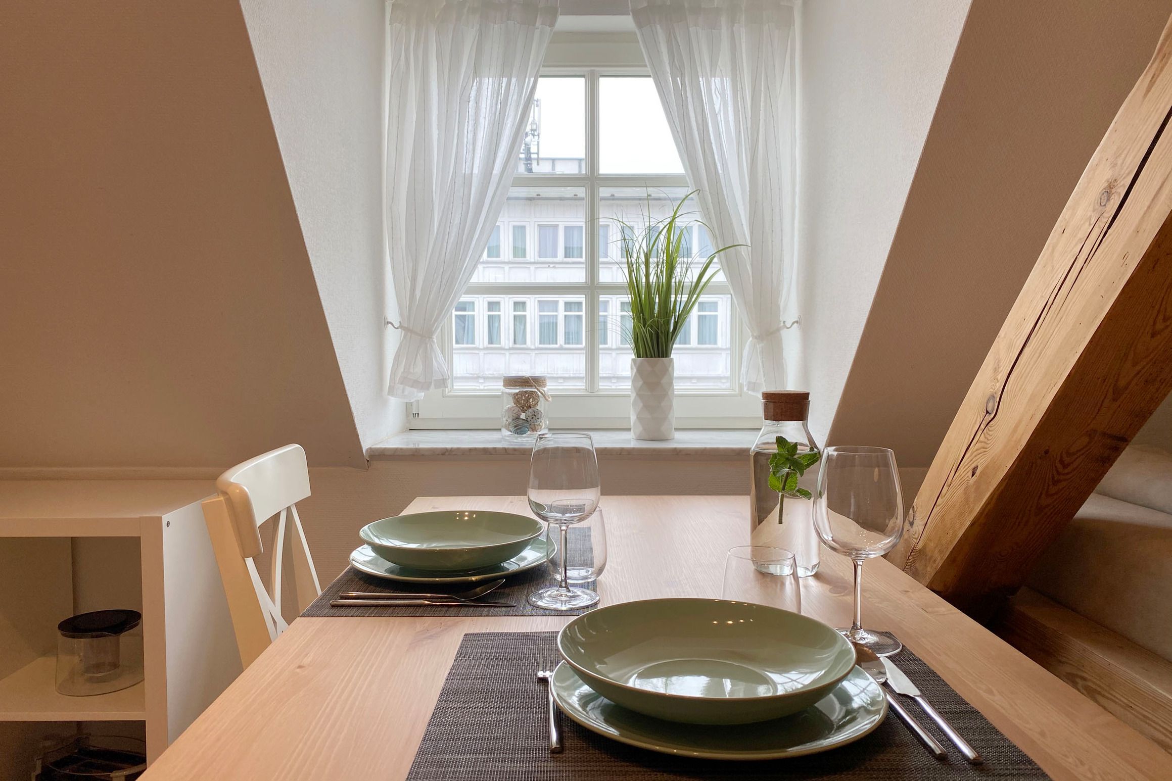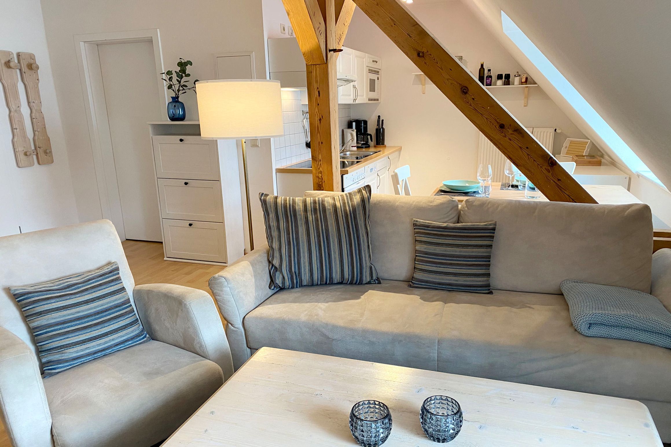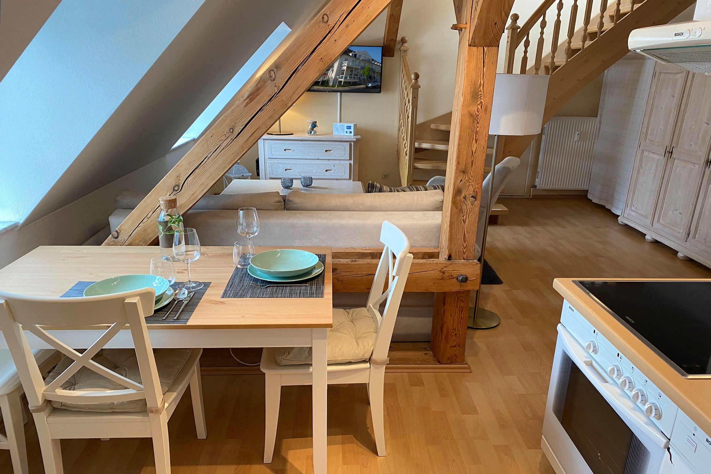 Ihre 2-Raum-Nichtraucher-Wohnung 26RB14 hat eine Größe von ca. 45 qm und ist für 3 Personen komplett eingerichtet. Sie befindet sich im 2. und 3. Obergeschoss des Hauses.