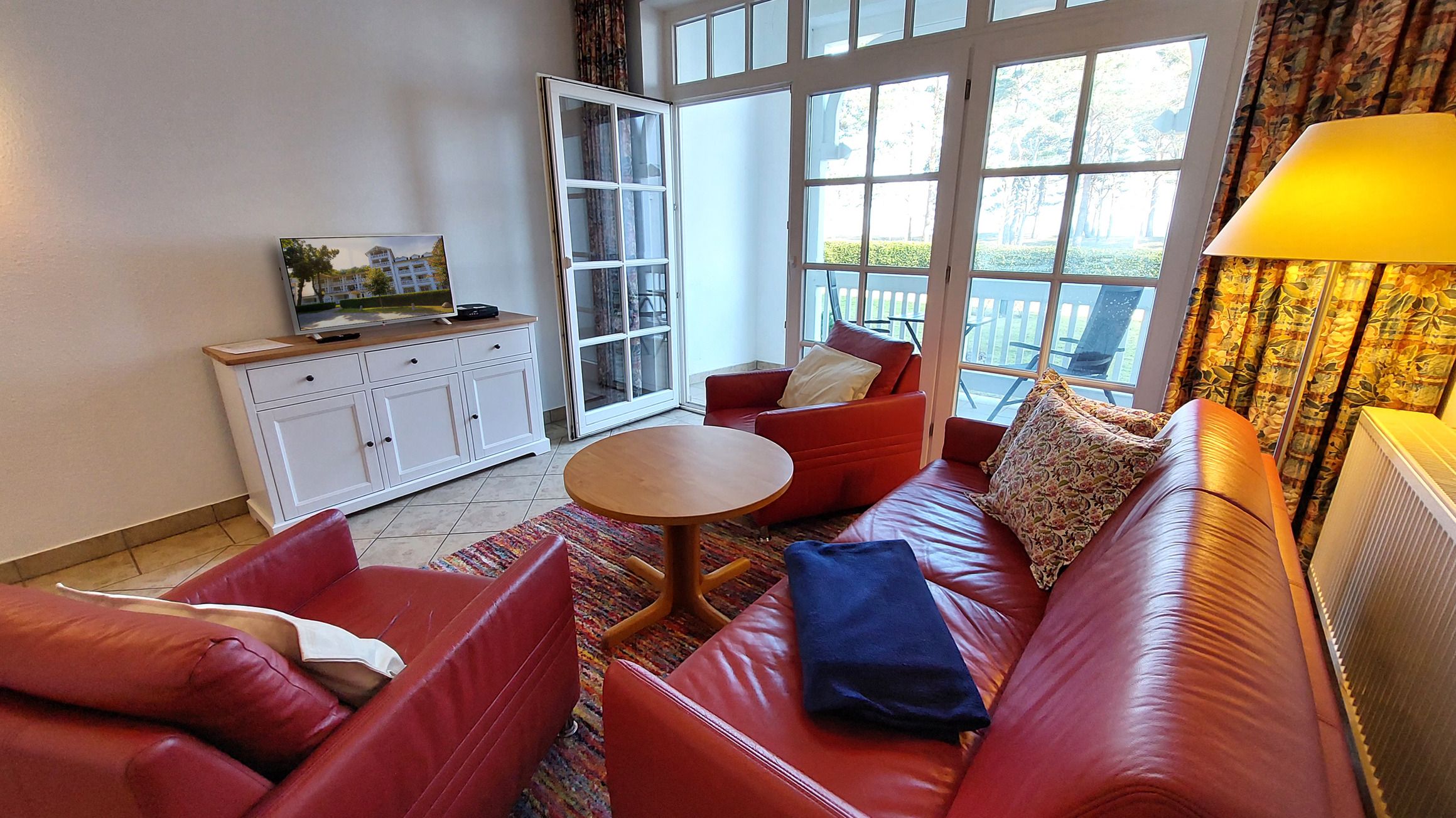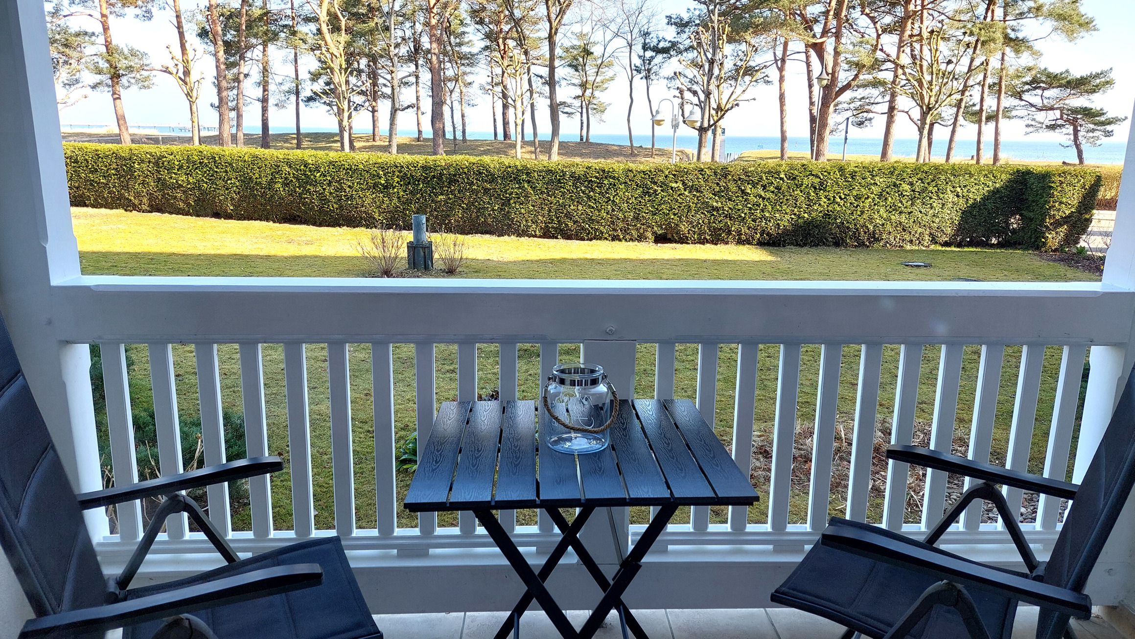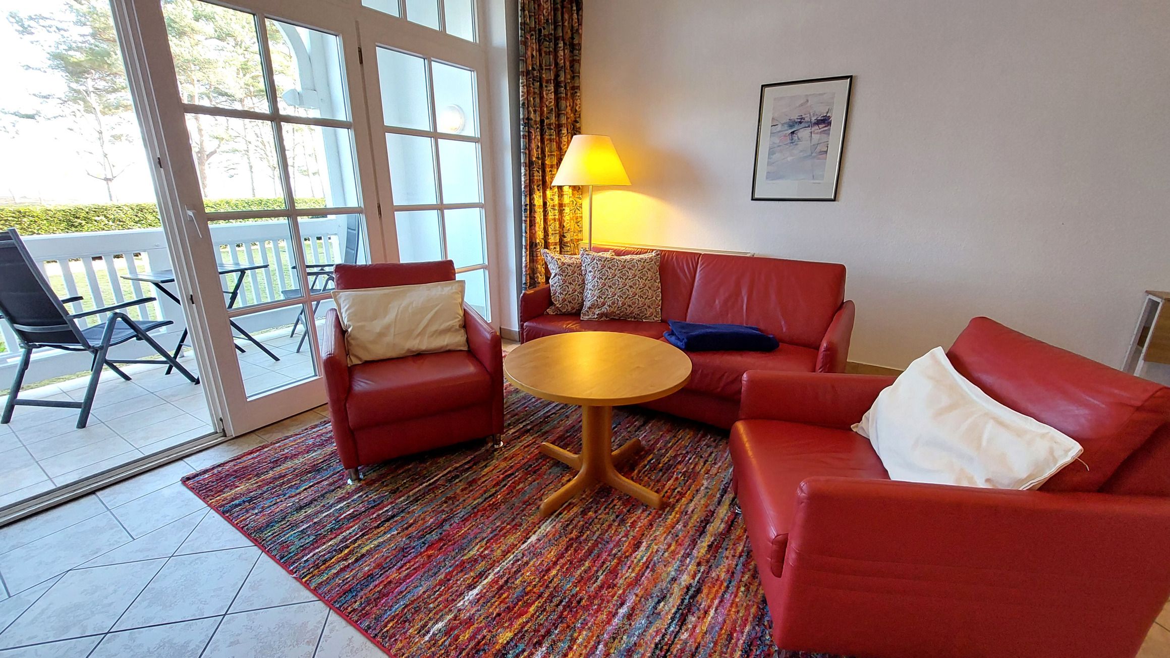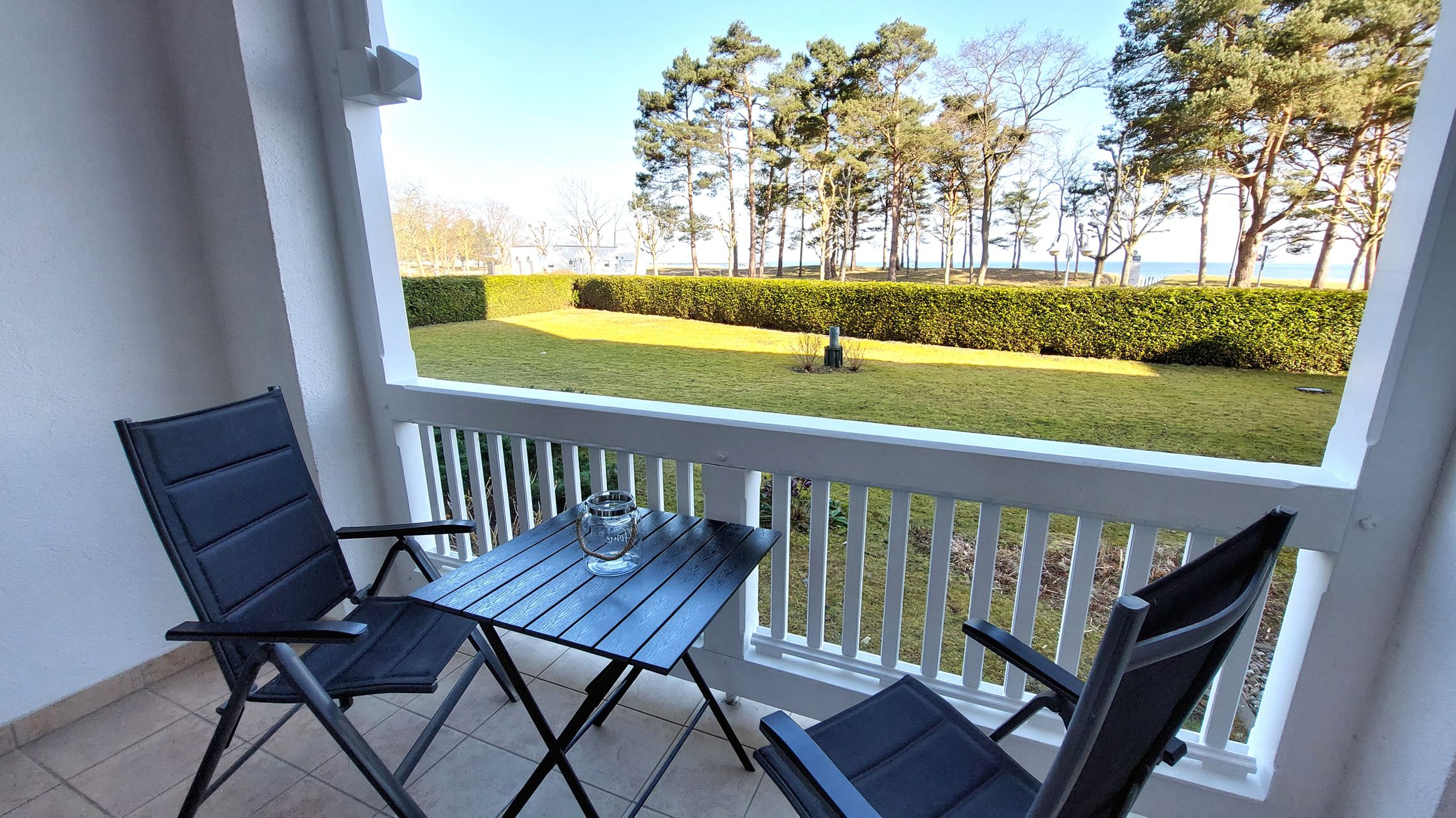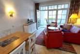 Mit der 213RB4 erwartet Sie eine 2-Raum-Nichtraucher-Wohnung im Erdgeschoss/Hochparterre des Aparthotels. Diese verfügt über eine überdachte und umfriedete Terrasse mit direktem Meerblick.