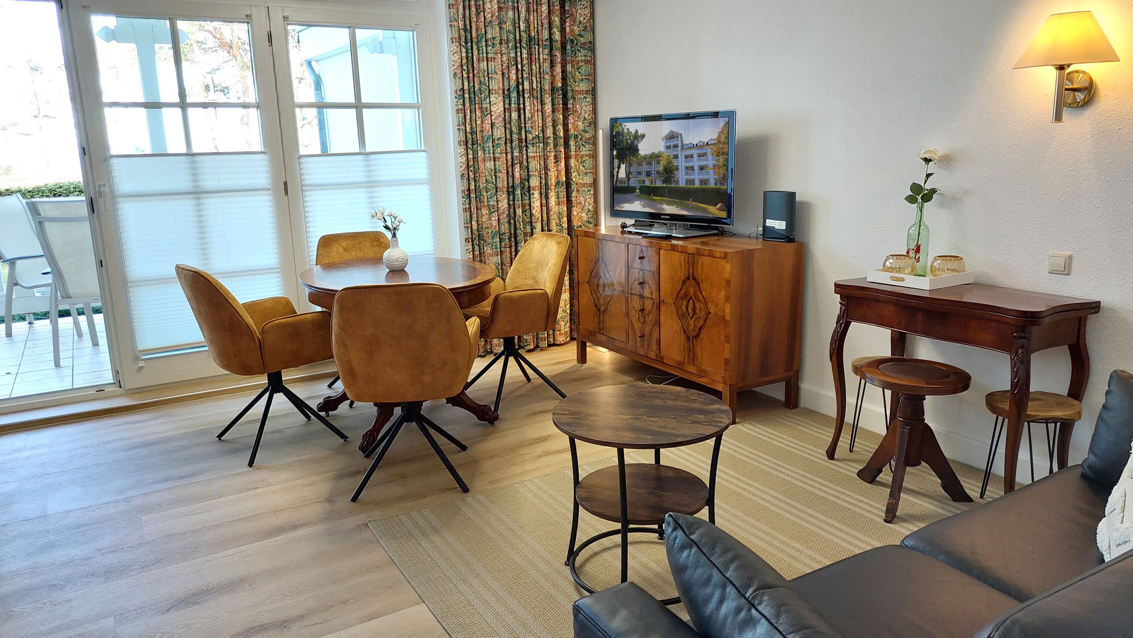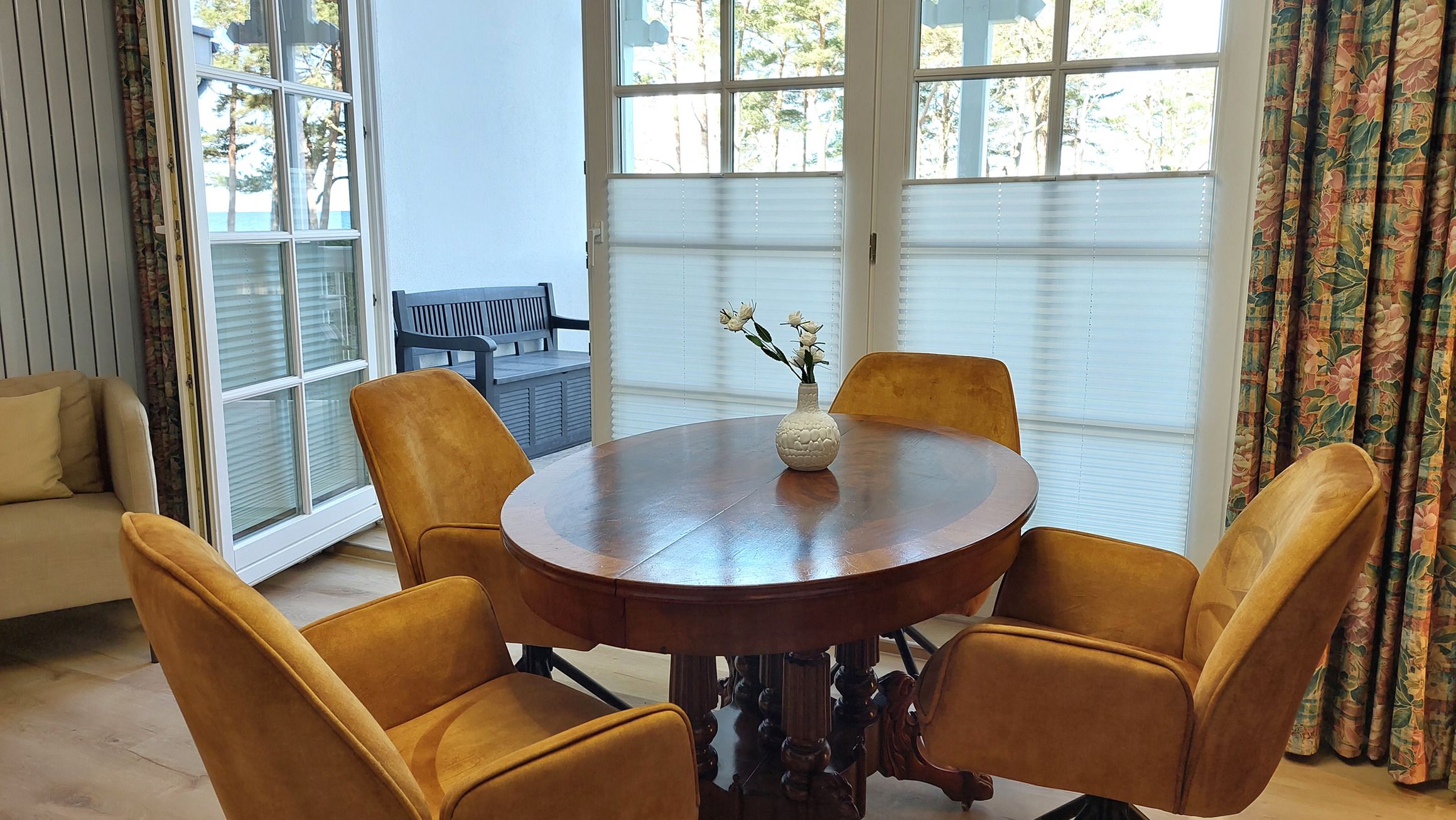 Highlight ist sicherlich der große Wohnbereich mit Zugang zur möblierten Terrasse. Dieser lädt, mit Panoramablick auf die Ostsee, zum Verweilen ein.