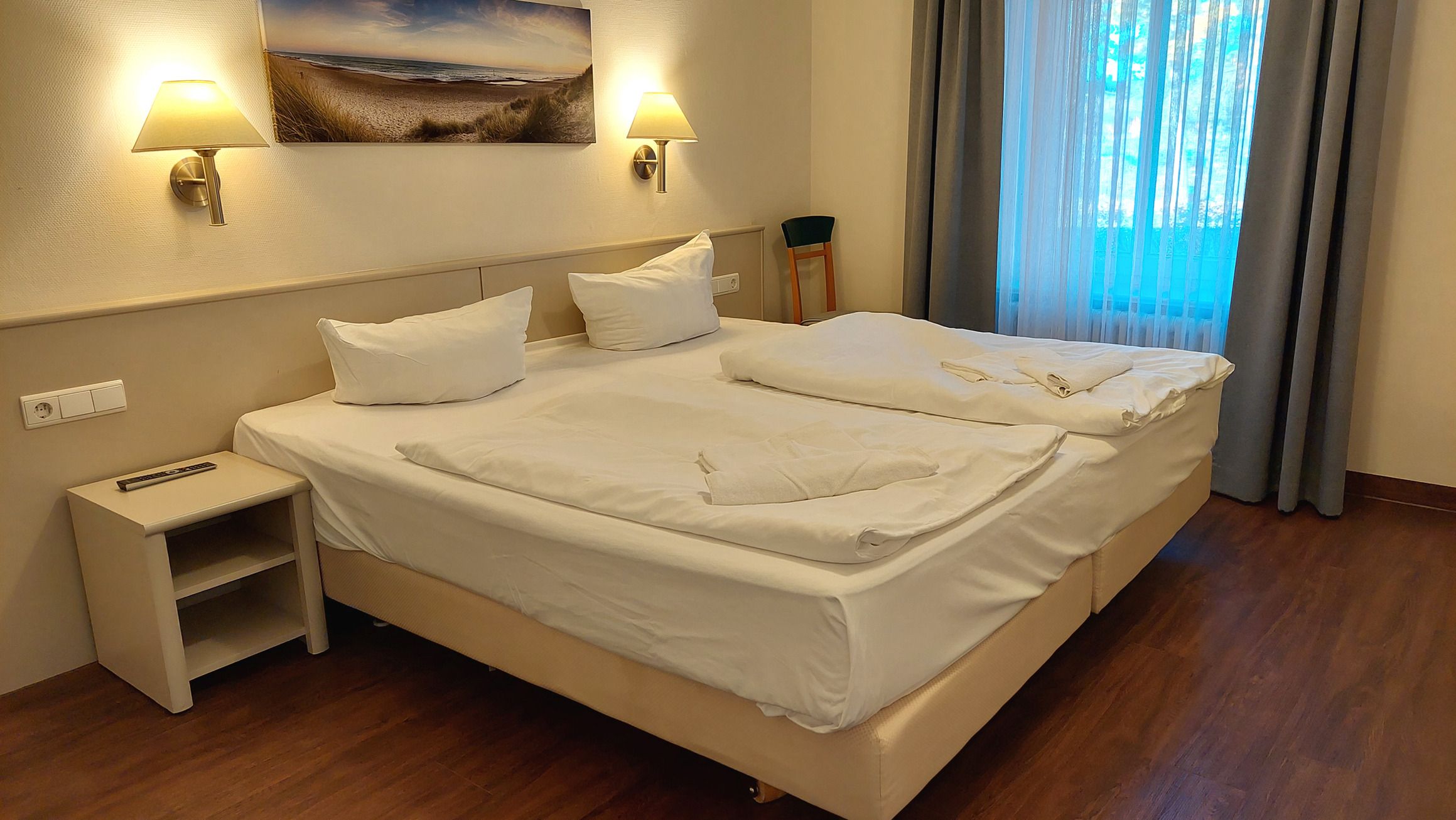 Die 2-Raum-Nichtraucherwohnung 16RB15 befindet sich im Erdgeschoß des Gebäudes Düne 3. Mit einer Größe von 61 qm bietet sie Platz für bis zu 4 Personen.