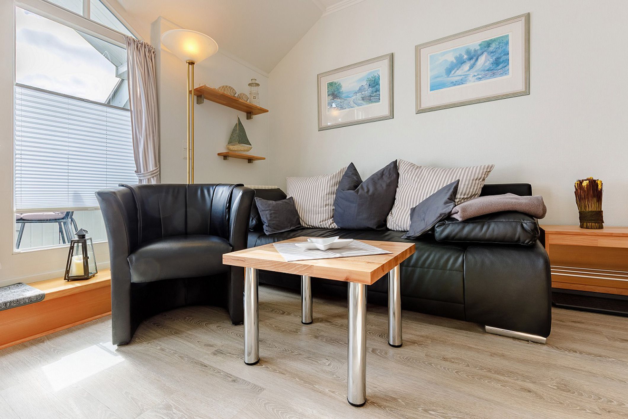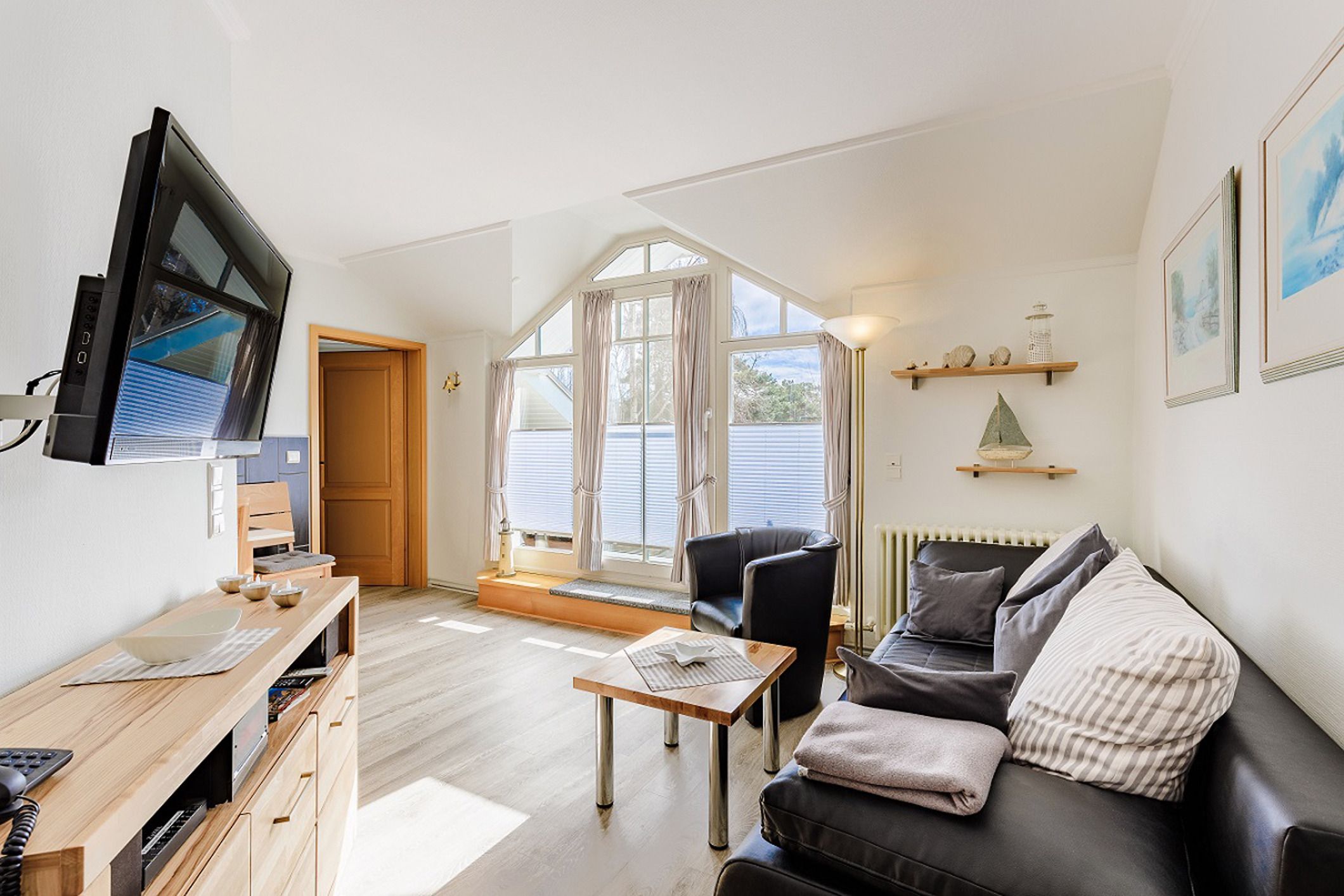 Ihre mit Liebe zum Detail ausgestattete 2-Raum Ferienwohnung 16RB196 (Nichtraucher) hat eine Größe von ca. 54 qm und ist für max. 3 Personen eingerichtet. Sie befindet sich im 2. Obergeschoss (Endetage) und verfügt über einen Südbalkon, der zum Verweilen einlädt. Im hellen Wohnbereich mit offener, moderner Küchenzeile und separatem Essbereich finden Sie eine gemütliches Ecksofa (mit Schlaffunktion für eine dritte Person), Smart-TV, Radio und kostenfreiem WLAN. Vom Wohnraum gelangen Sie auf den Südbalkon, der auch für 3 Personen reichlich Platz zum Sitzen oder Sonnen bietet. Das separate Schlafzimmer ist mit einem Doppelbett und einem großen Kleiderschrank ausgestattet. Das mit Granit geflieste Badezimmer umfasst eine Dusche, Waschtisch, WC, Kosmetikspiegel und Fön. Die Küche ist mit Backofen, Kühl-/Gefrierkombination, Geschirrspüler, Kaffeemaschine, Toaster, Wasserkocher und anderen diversen Küchenhelfern komplett ausgestattet. Ein wohnungseigener PKW-Stellplatz steht Ihnen in der Tiefgarage kostenfrei zur Verfügung.