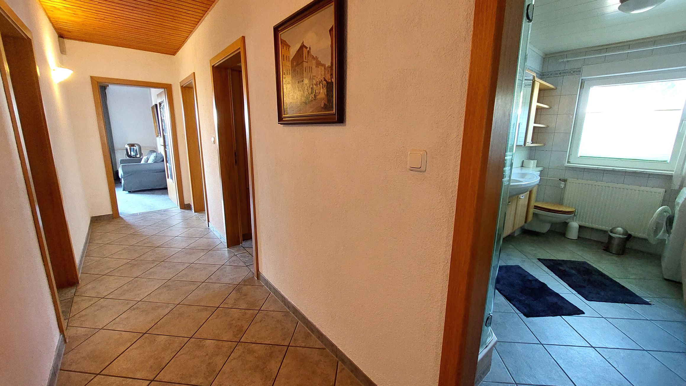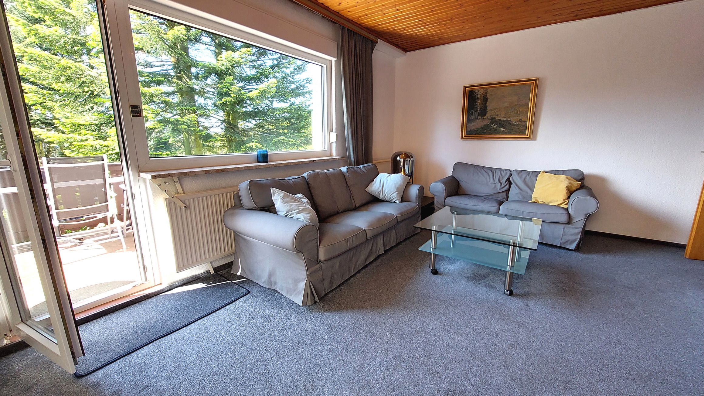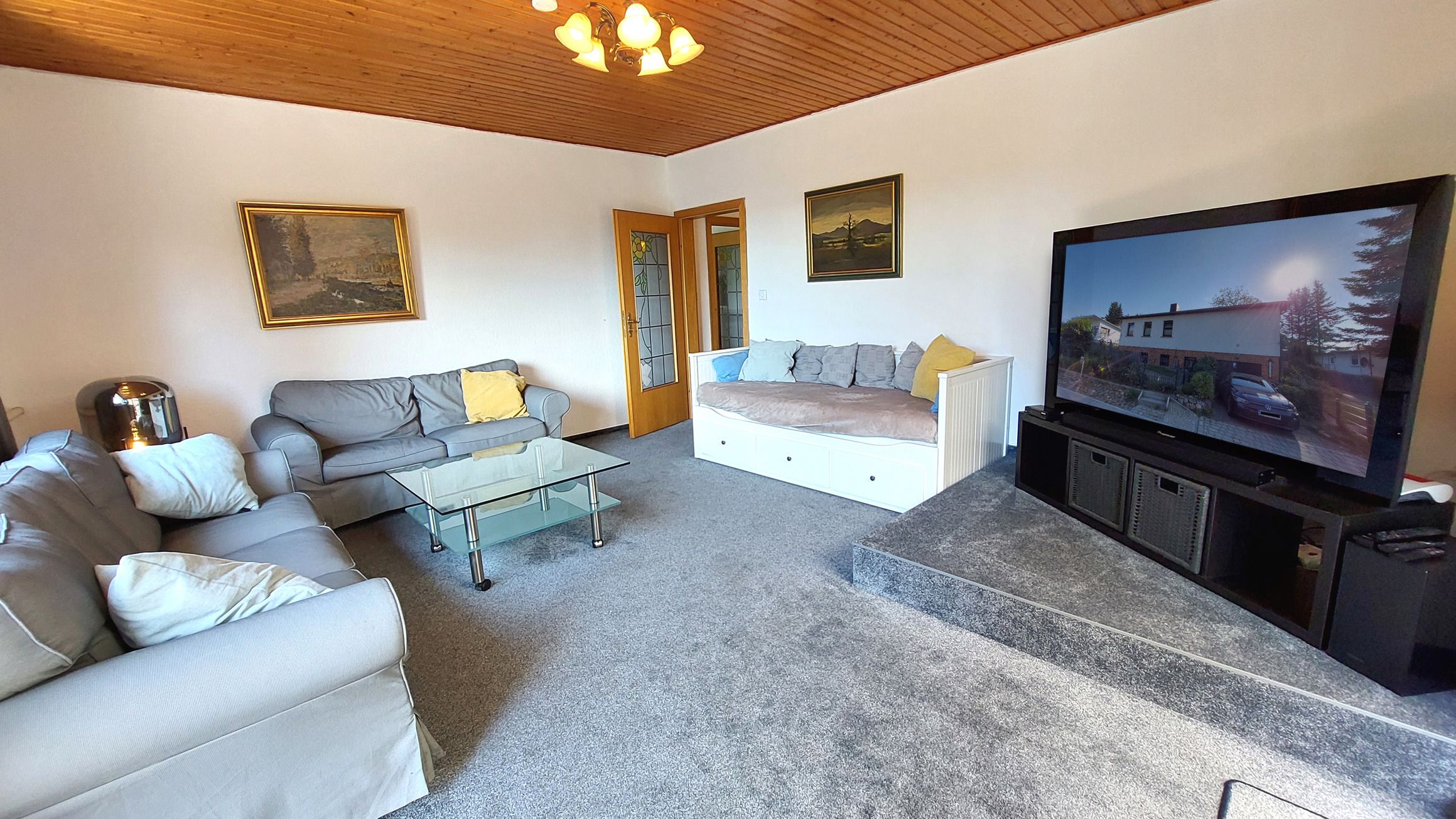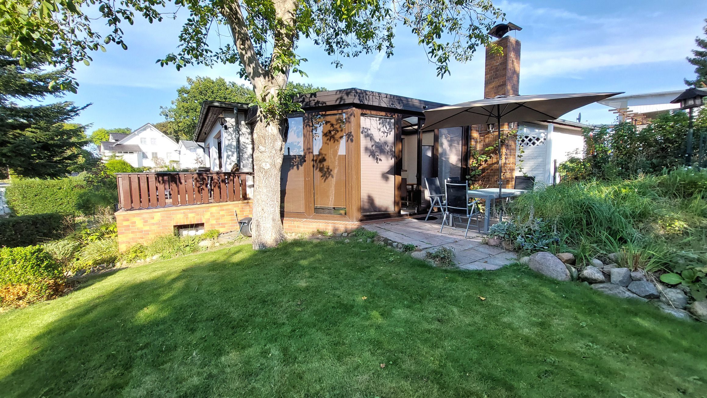 Diese gemütliche und großzügige 3-Raumwohnung 90808 David erwartet Sie mit ca. 125 qm und bietet viel Platz für bis zu 6 Personen. Es erwartet Sie nicht nur ein Wintergarten mit Kamin für behagliche Stunden, sondern auch eine hauseigene Sauna sowie ein eingezäuntes Grundstück für eine private Atmosphäre während des Aufenthaltes. Die Wohnung liegt im Erdgeschoß und teilt sich auf in einen Flur mit Garderobe, von dem Sie alle Räume gut erreichen, ein Wohnzimmer mit angrenzendem Wintergarten, Balkon sowie Terrasse, eine separate Küche, Tageslichtbad sowie zwei Schlafzimmer. Im behaglichen Wohnraum erwartet Sie eine Sitzecke, ein Kojenbett als Schlafmöglichkeit für eine 5. und 6. Person sowie großem Flachbild-TV und WLAN. Die separate Küche verfügt über ein Cerankochfeld mit Backofen, Geschirrspüler, einen Kühlschrank, ein Gefrierfach, Kaffeemaschine, Mikrowelle und Wasserkocher. Im Badezimmer finden Sie eine Dusche, Doppelwaschtisch, eine Waschmaschine sowie WC. Beide Schlafzimmer sind mit einem Doppelbett, Kleiderschrank und zusätzlichem TV ausgestattet und verfügen zudem über Jalousien für eine angenehme Nachtruhe. Im, an zweite Schlafzimmer angrenzenden, Wintergarten können Sie nicht nur gemeinsam speisen, auch gemütliche Stunden durch den Kamin erleben. Ein PKW-Stellplatz steht Ihnen direkt am Haus zur Verfügung.