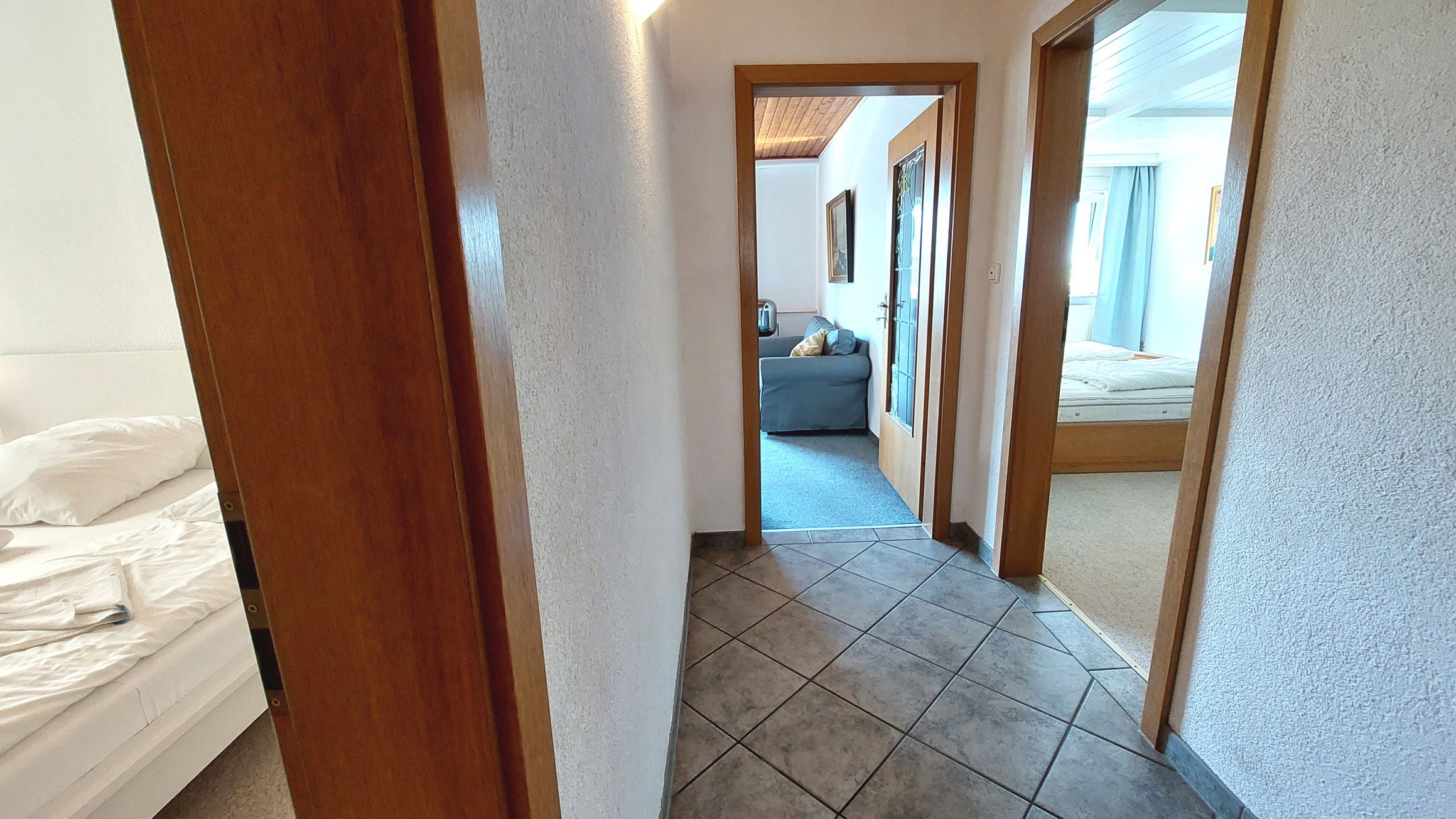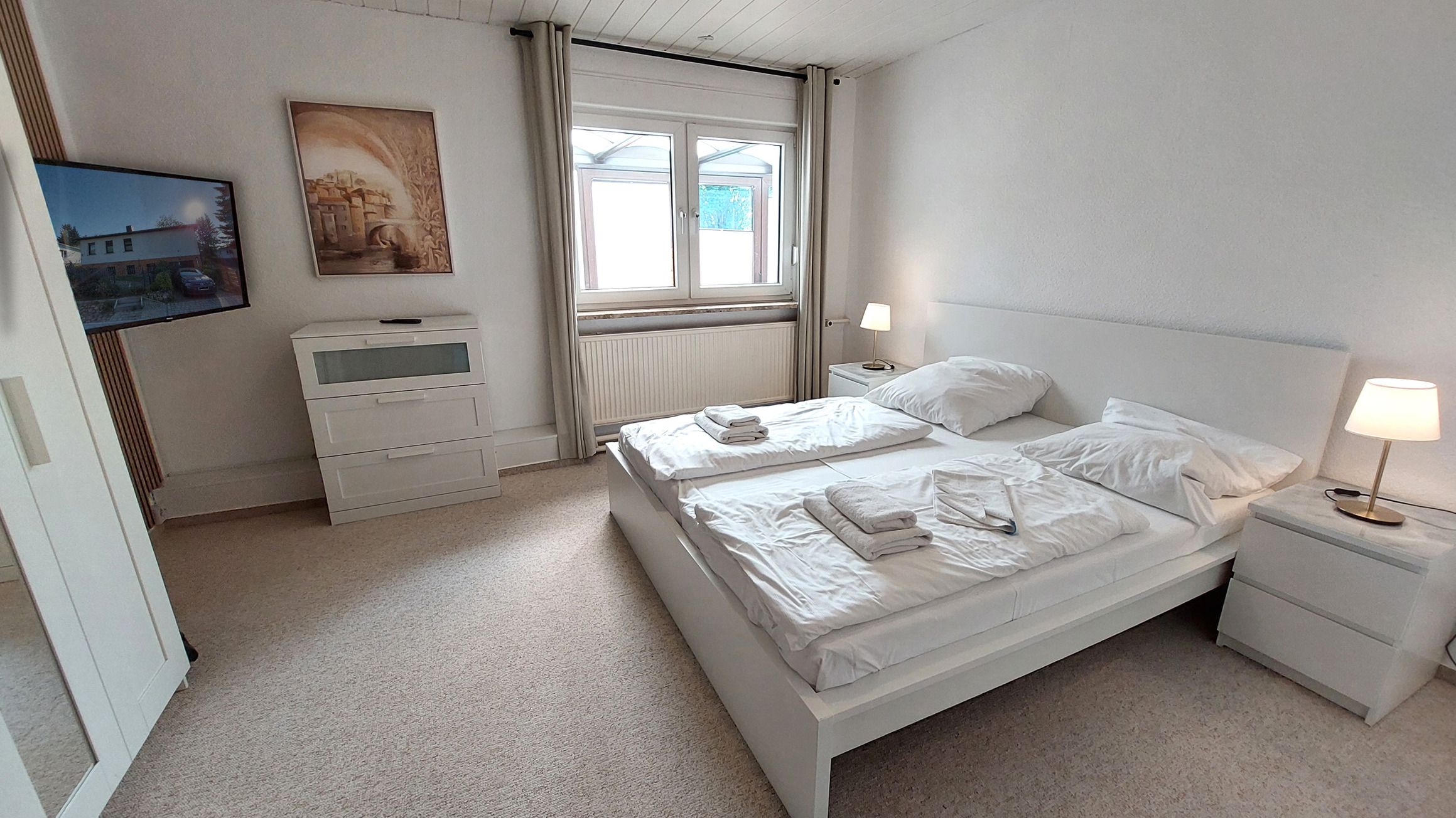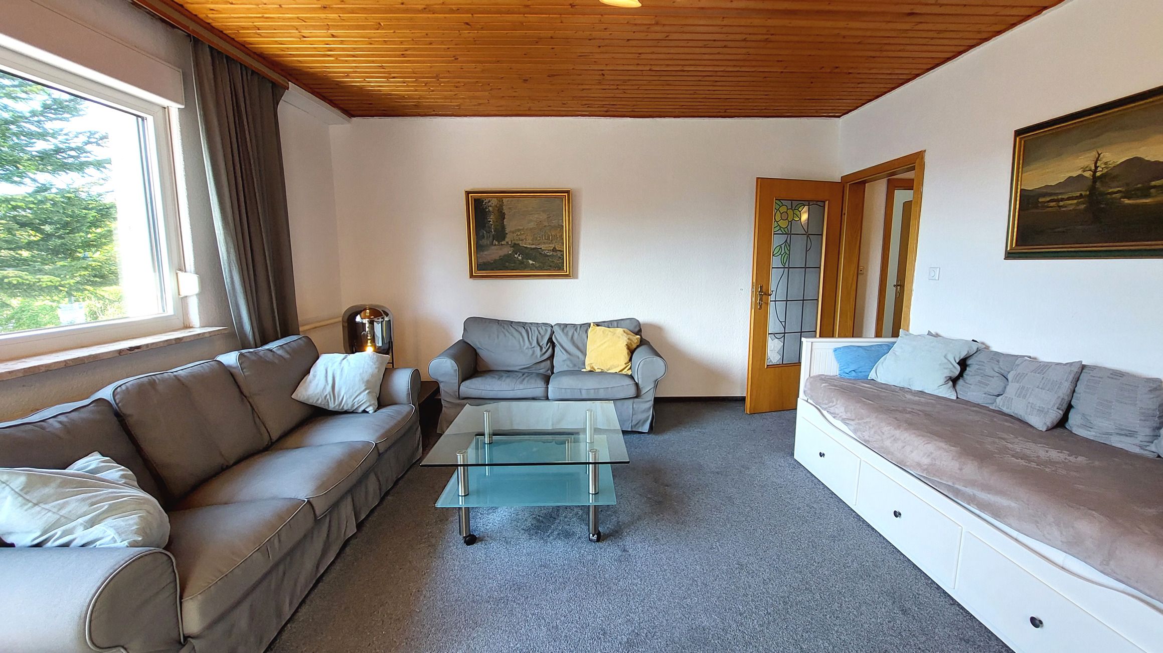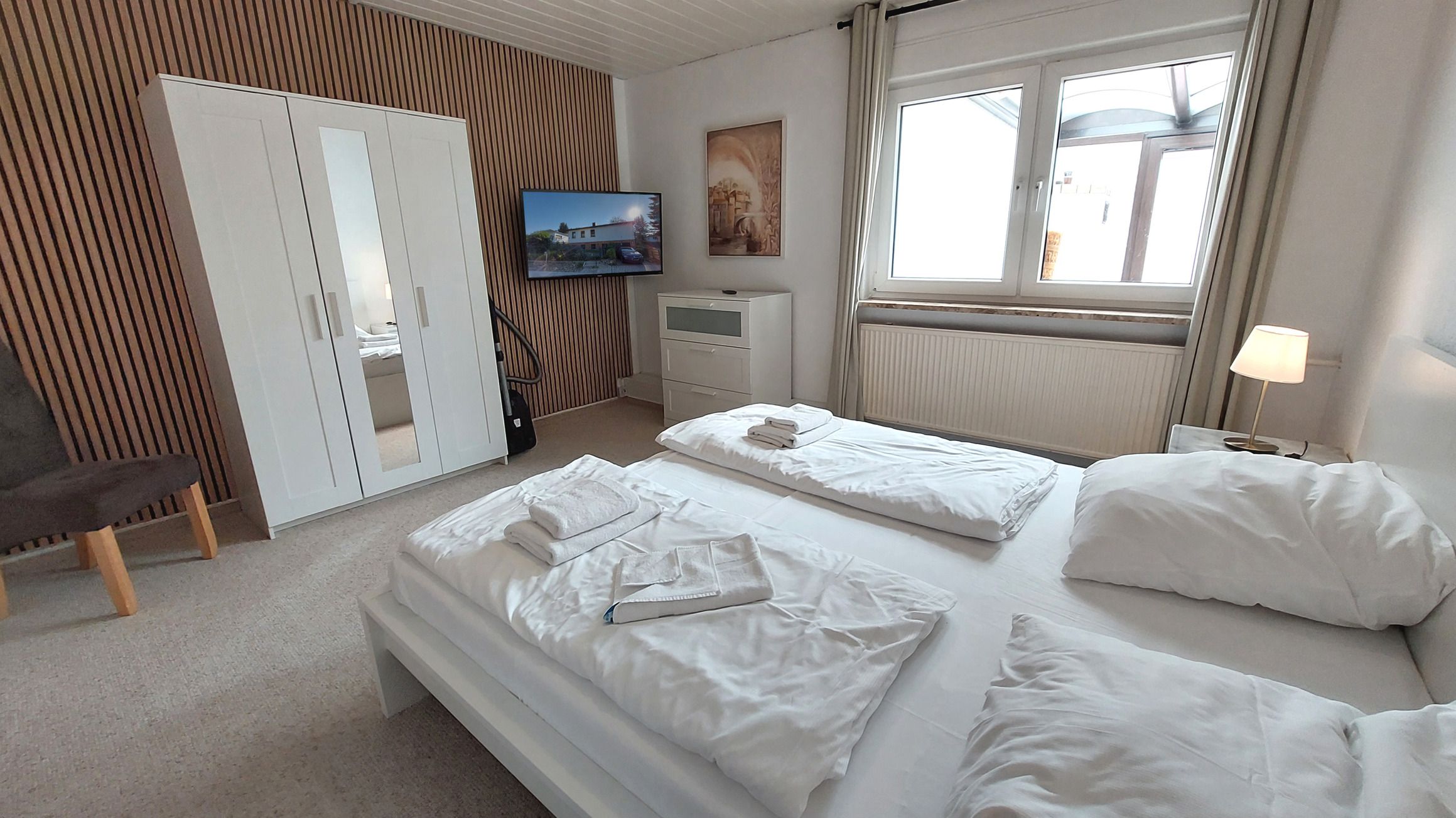 Diese gemütliche und großzügige 3-Raumwohnung 90808 David erwartet Sie mit ca. 125 qm und bietet viel Platz für bis zu 6 Personen. Es erwartet Sie nicht nur ein Wintergarten mit Kamin für behagliche Stunden, sondern auch eine hauseigene Sauna sowie ein eingezäuntes Grundstück für eine private Atmosphäre während des Aufenthaltes. Die Wohnung liegt im Erdgeschoß und teilt sich auf in einen Flur mit Garderobe, von dem Sie alle Räume gut erreichen, ein Wohnzimmer mit angrenzendem Wintergarten, Balkon sowie Terrasse, eine separate Küche, Tageslichtbad sowie zwei Schlafzimmer. Im behaglichen Wohnraum erwartet Sie eine Sitzecke, ein Kojenbett als Schlafmöglichkeit für eine 5. und 6. Person sowie großem Flachbild-TV und WLAN. Die separate Küche verfügt über ein Cerankochfeld mit Backofen, Geschirrspüler, einen Kühlschrank, ein Gefrierfach, Kaffeemaschine, Mikrowelle und Wasserkocher. Im Badezimmer finden Sie eine Dusche, Doppelwaschtisch, eine Waschmaschine sowie WC. Beide Schlafzimmer sind mit einem Doppelbett, Kleiderschrank und zusätzlichem TV ausgestattet und verfügen zudem über Jalousien für eine angenehme Nachtruhe. Im, an zweite Schlafzimmer angrenzenden, Wintergarten können Sie nicht nur gemeinsam speisen, auch gemütliche Stunden durch den Kamin erleben. Ein PKW-Stellplatz steht Ihnen direkt am Haus zur Verfügung.